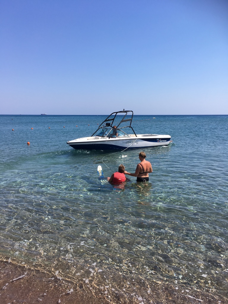 Vesihiihtoa, äiti ja pojat kokeili👍 Pitää sanoa, että tuo siskoni on siinä lajissa edelleen ihan pro😀