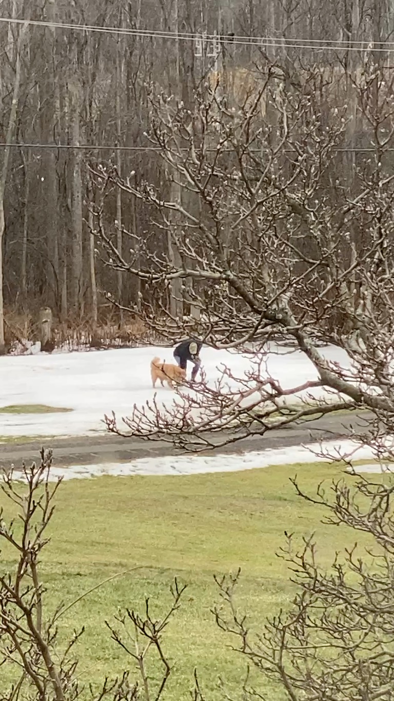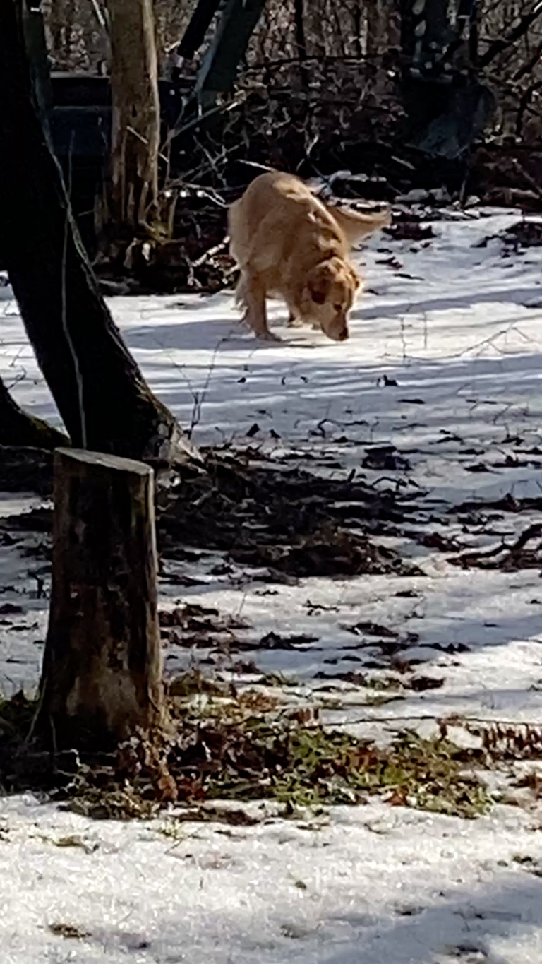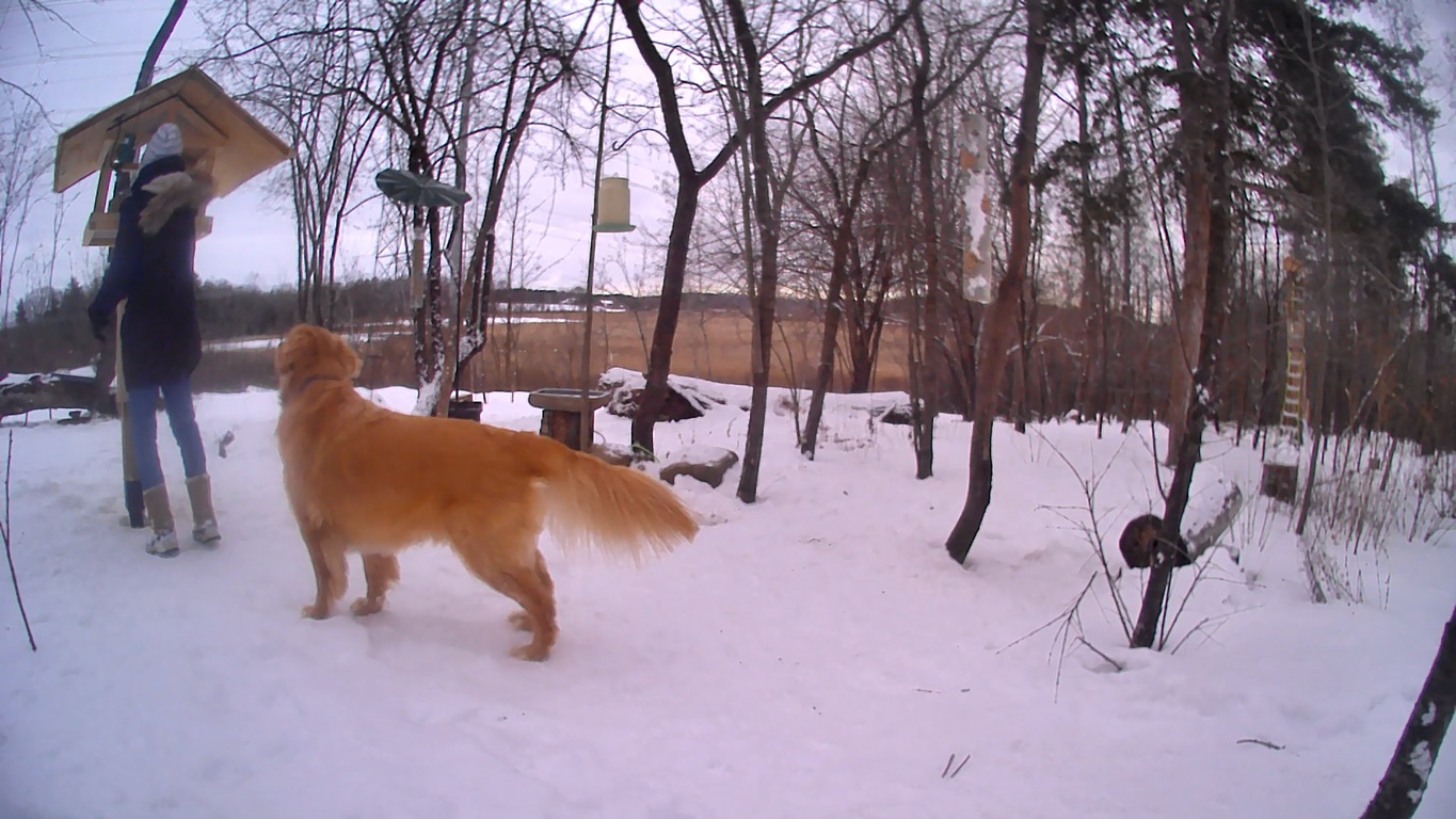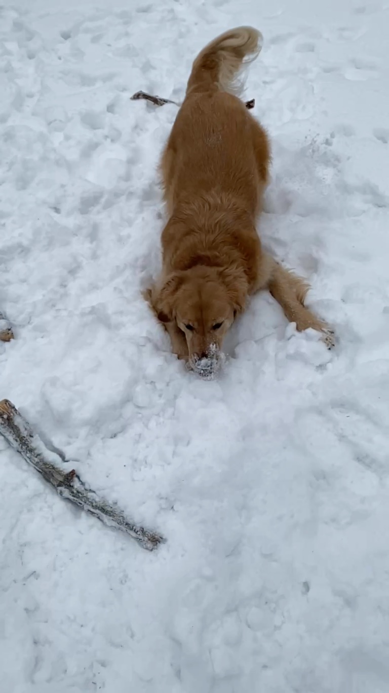 Just finished feeding the birds. Got a little stick to play with, but it’s only 12 degrees out, so we’re going back in the house.