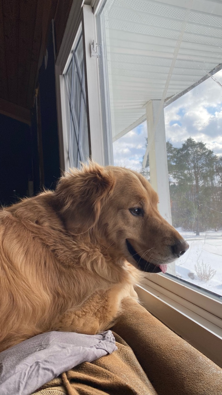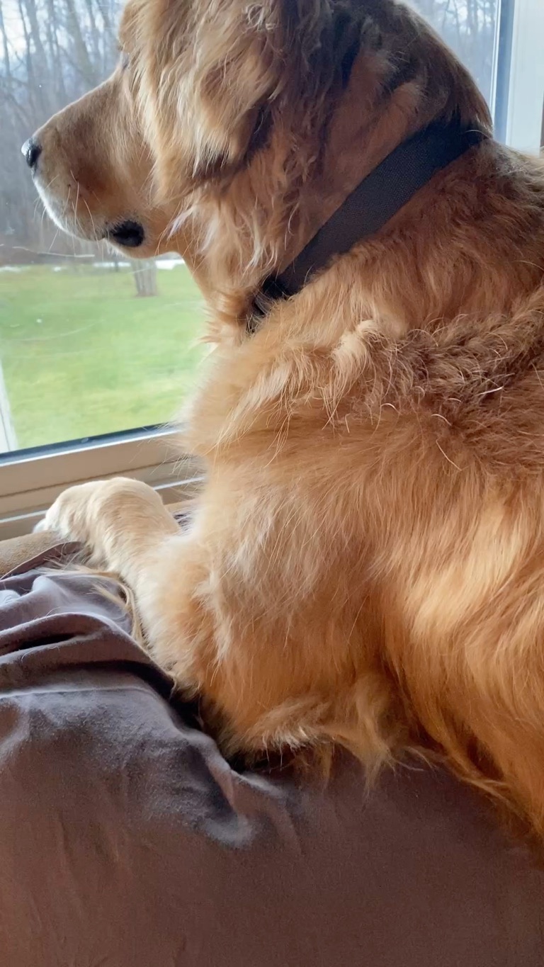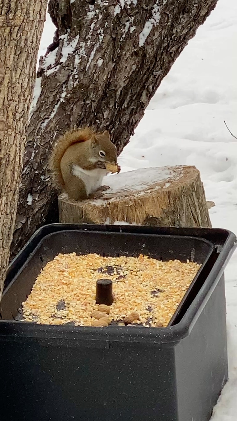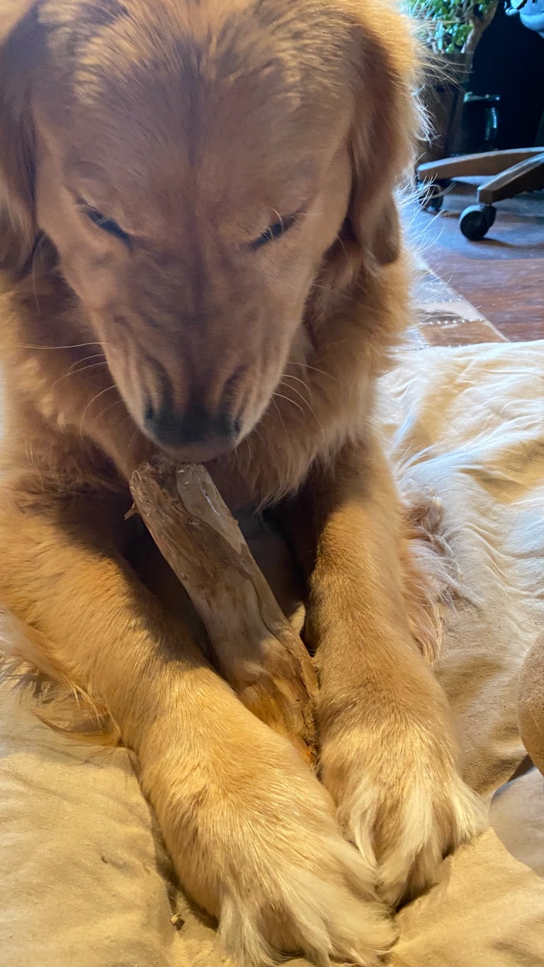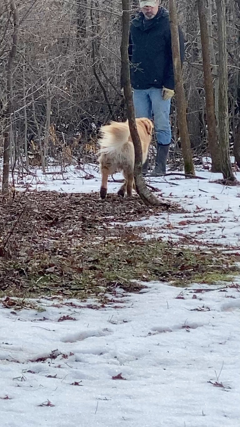 Just finished feeding the birds. Got a little stick to play with, but it’s only 12 degrees out, so we’re going back in the house.