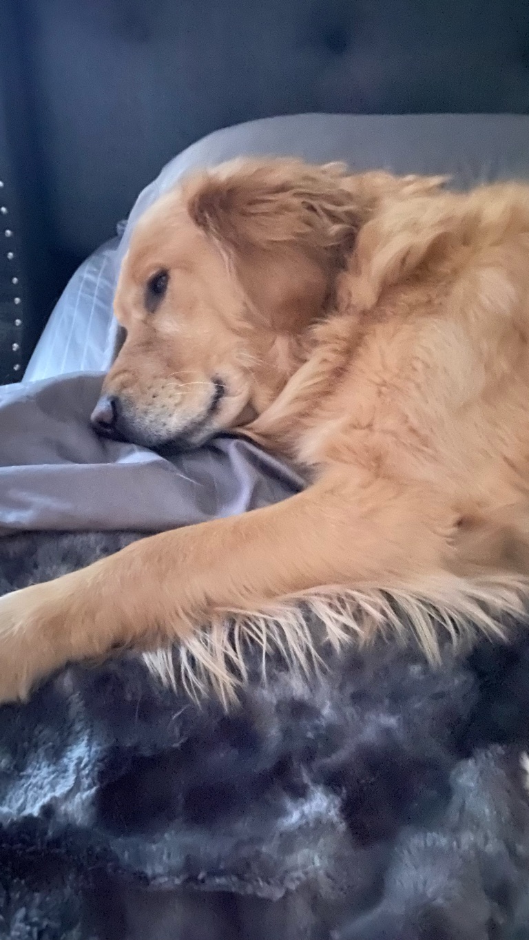 So tired. Pat is taking me out for my walk soon so I’m resting up!