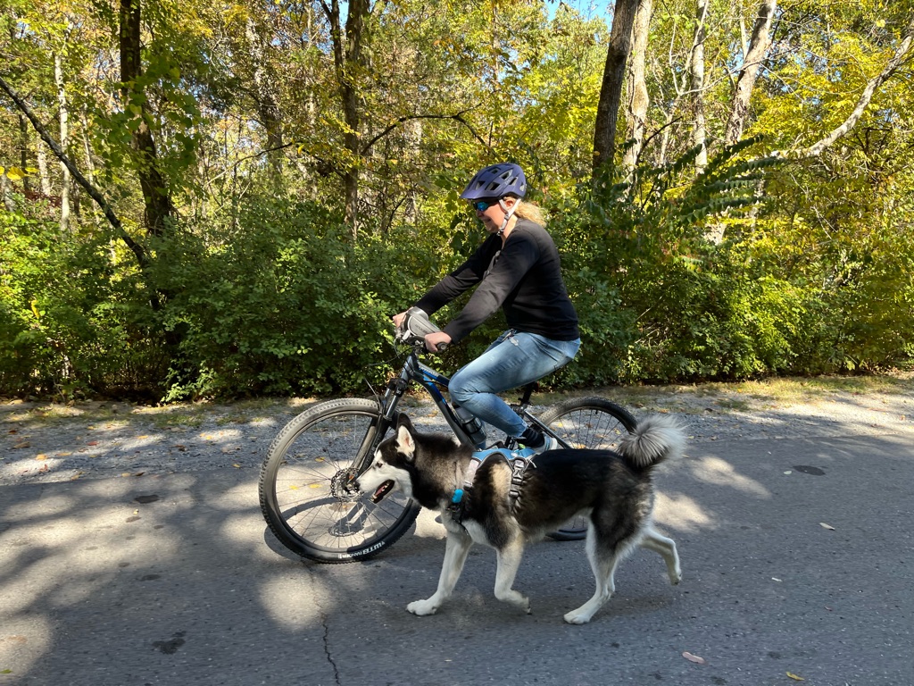 Denali not only got a bike ride, but went in full throttle after the geese and had a good swim too.