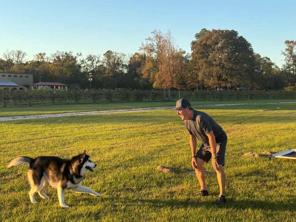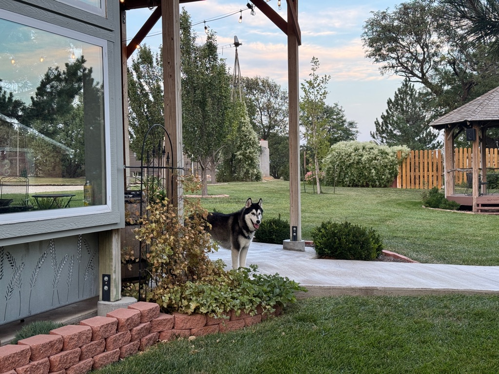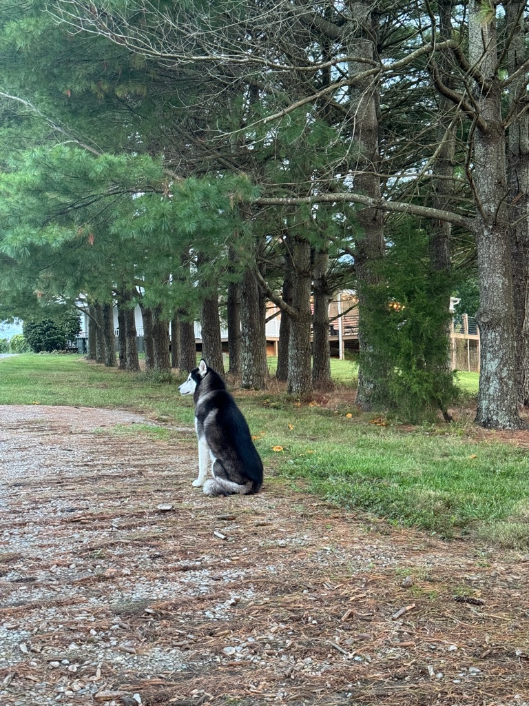 Denali is convinced he can catch up with one of the cats on the property. He’s watching diligently!