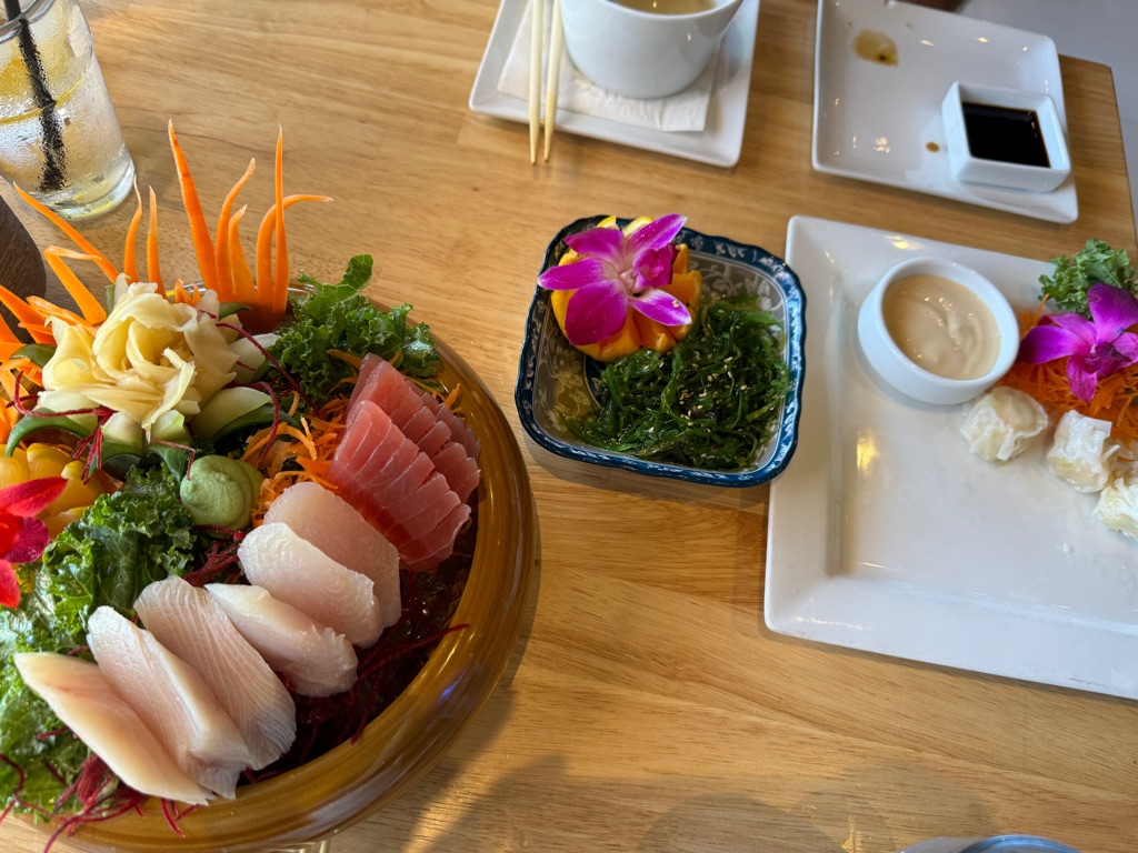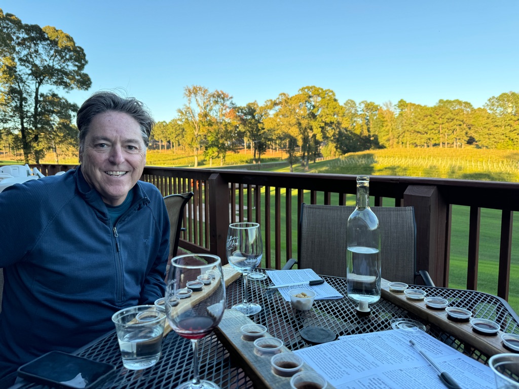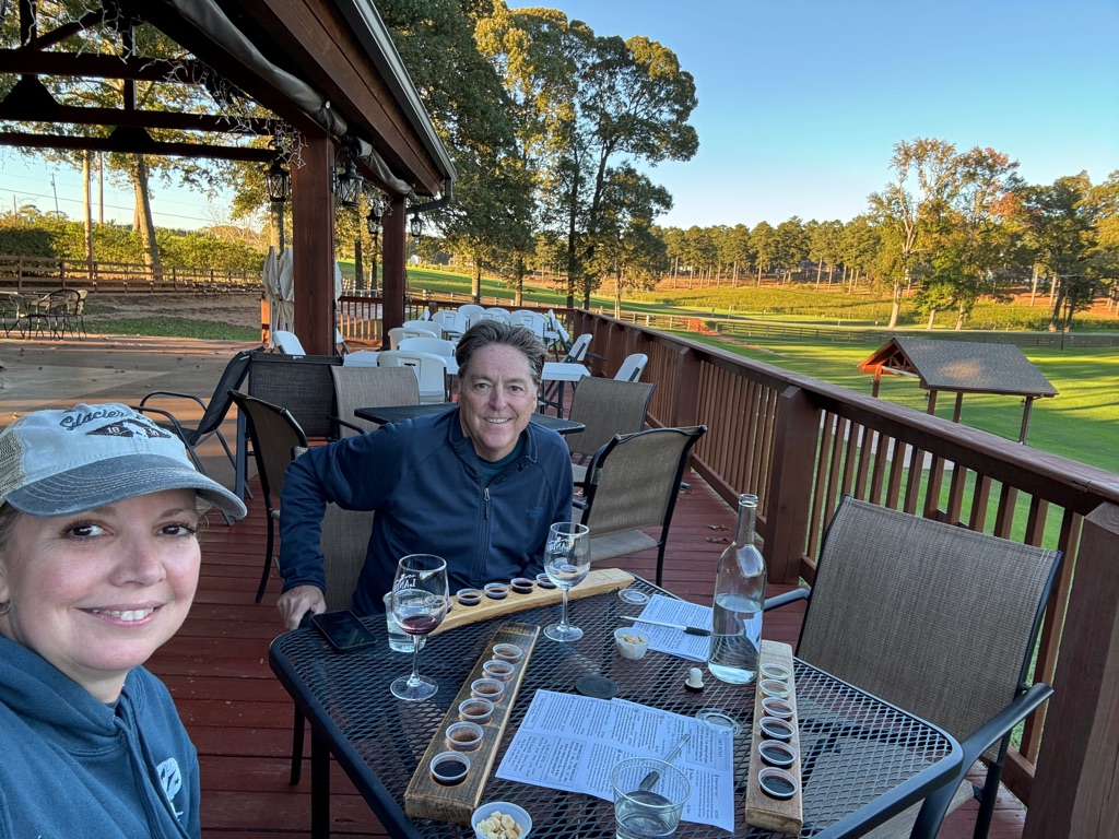 Having lunch on their deck. The wines were just okay, but our salads were yummy!