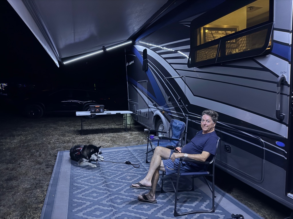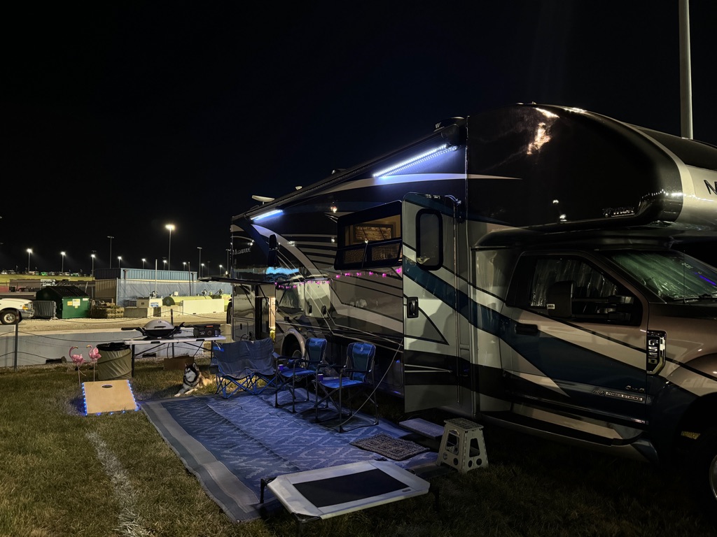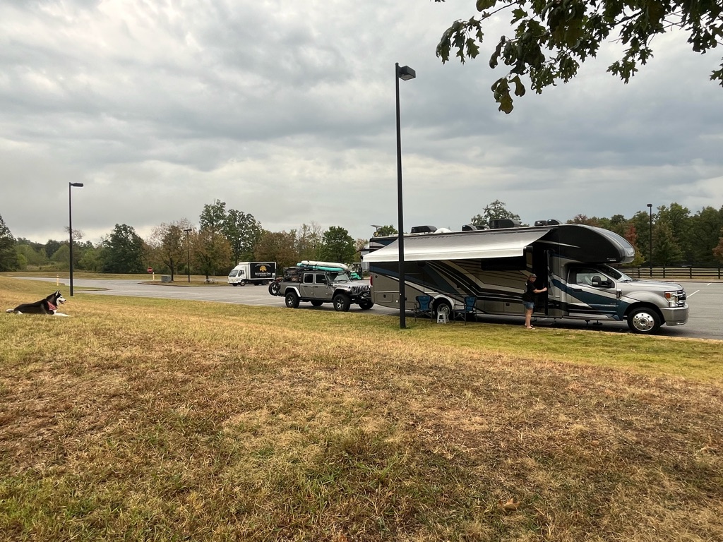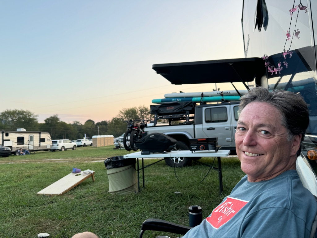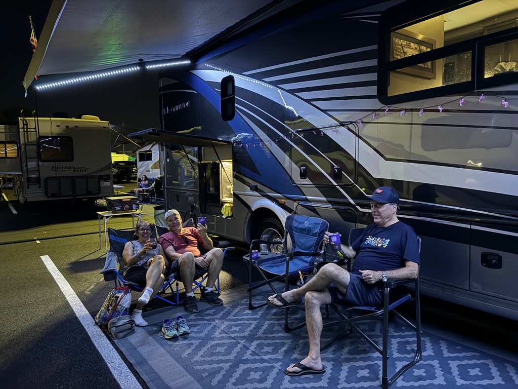 Back at “camp” with our friends Andy and Lisa. We basically have four parking spaces. But at least we’re onsite.