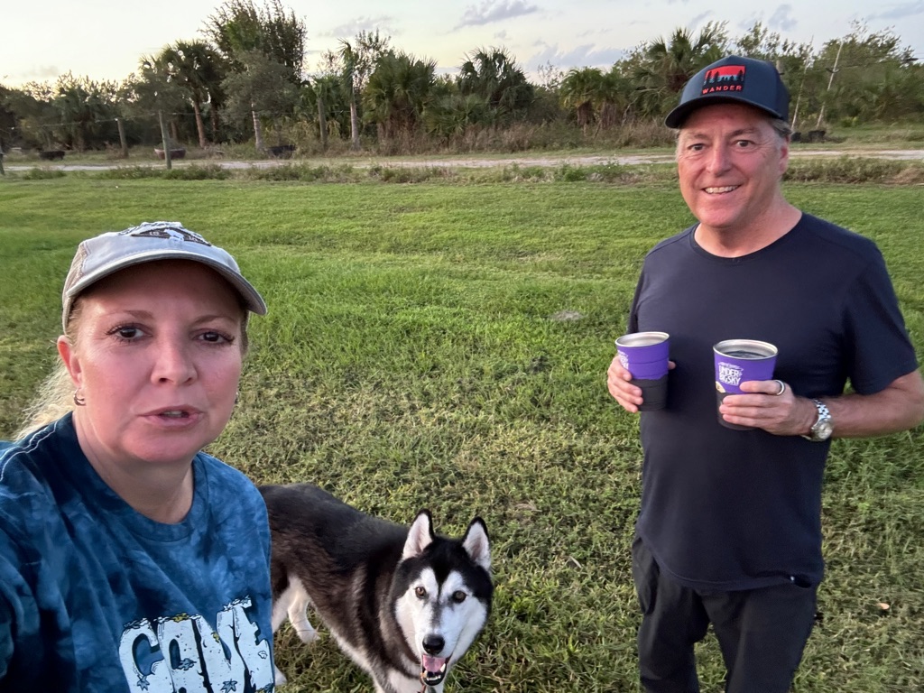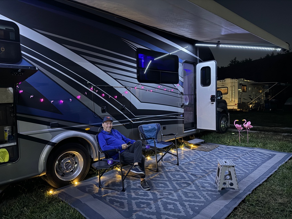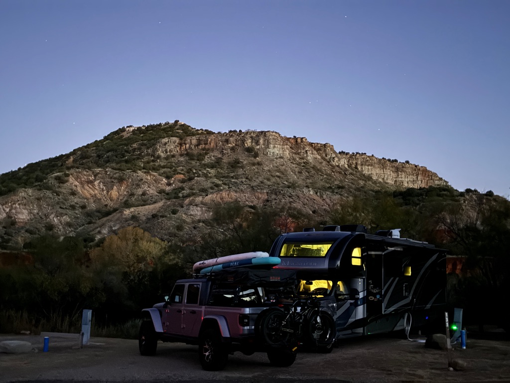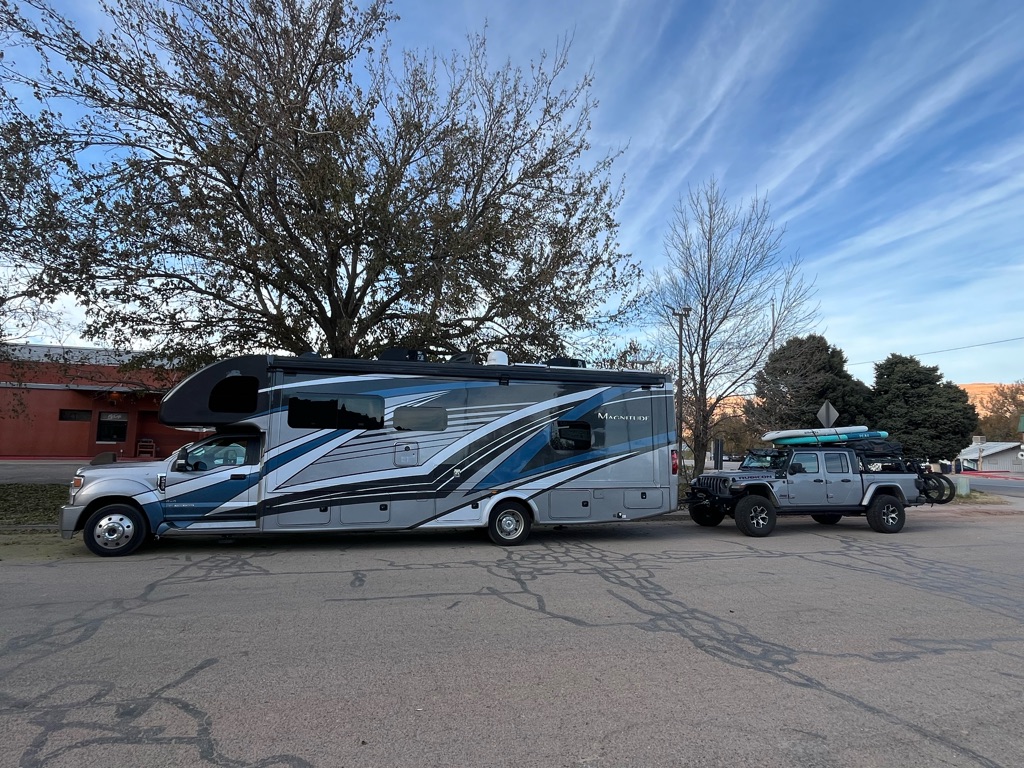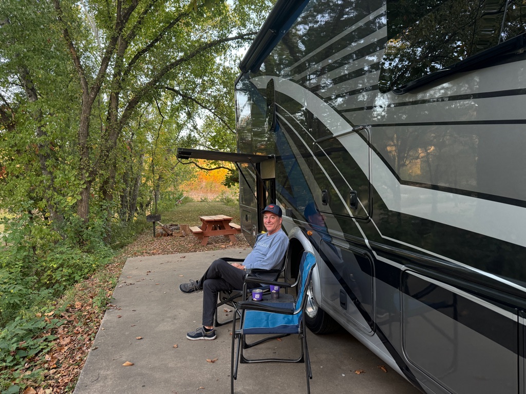 Back at “camp” with our friends Andy and Lisa. We basically have four parking spaces. But at least we’re onsite.