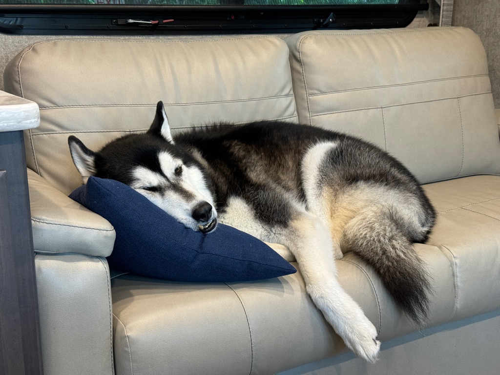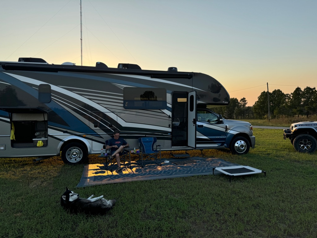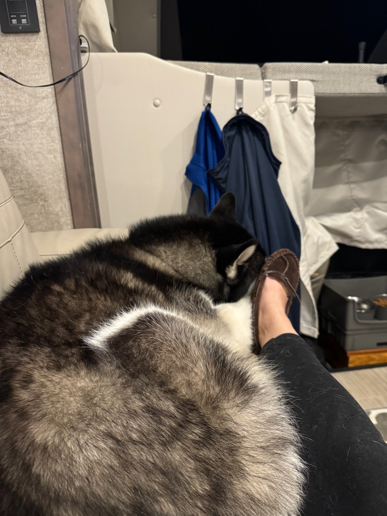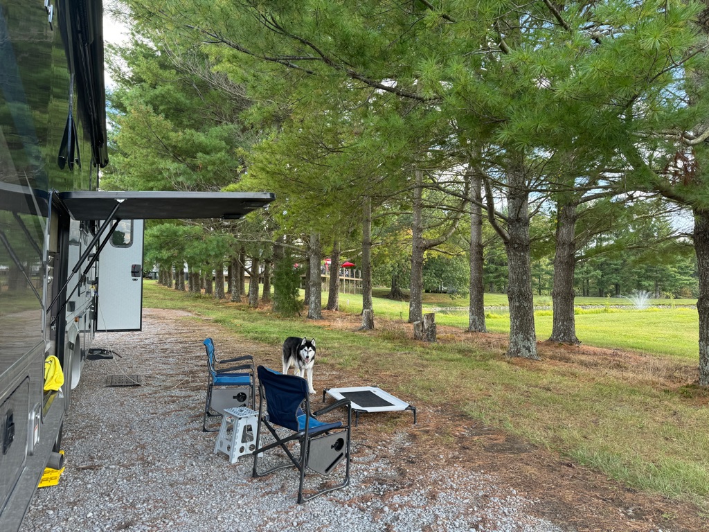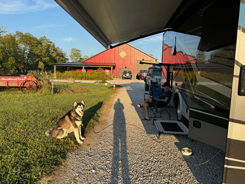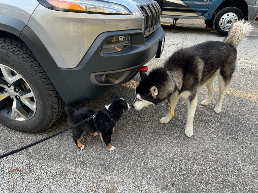 Long drive day to Louisville and we’re parked in a shitty, crowded RV park on the edge of the city. But Denali made a cute little friend - an 11-week-old miniature Australian Shepherd.