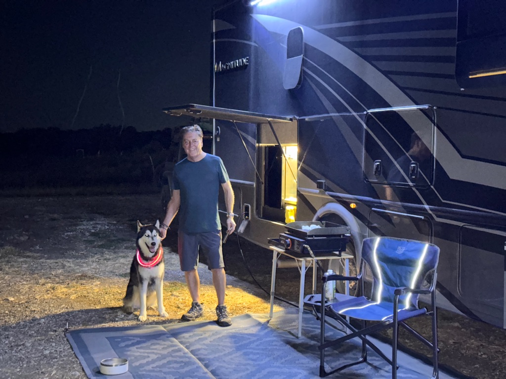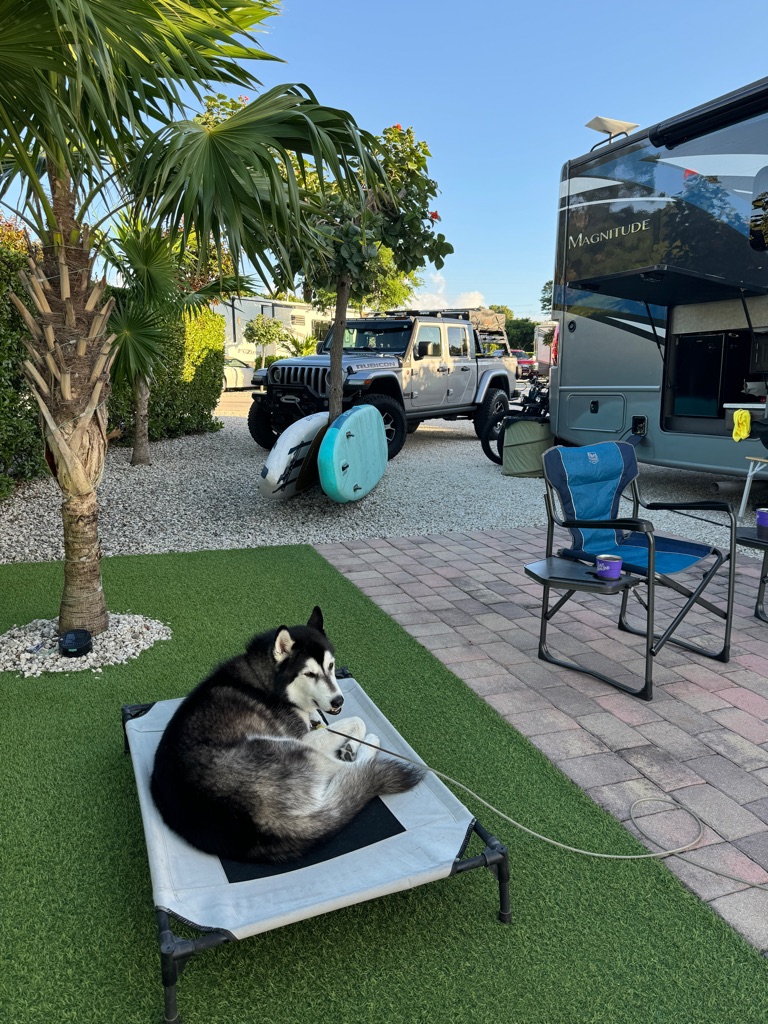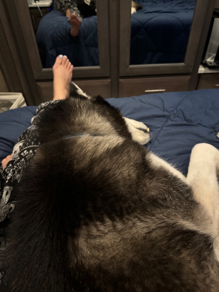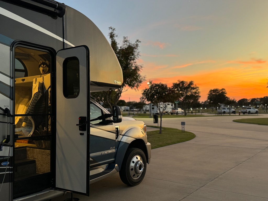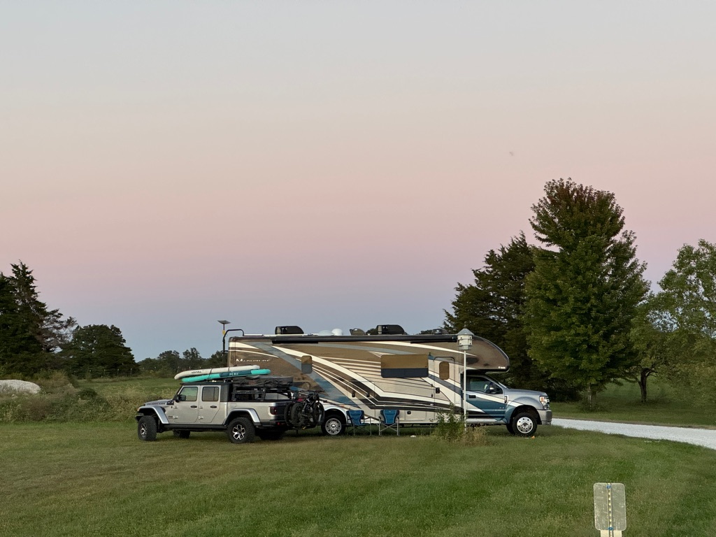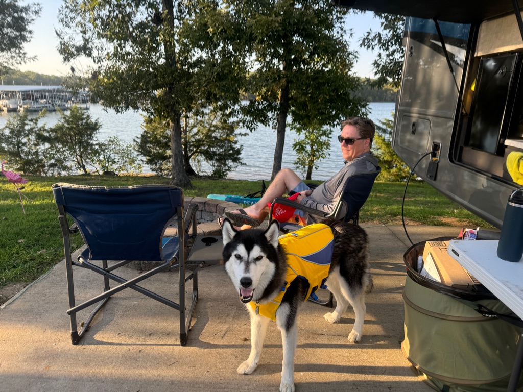 Long drive day to Louisville and we’re parked in a shitty, crowded RV park on the edge of the city. But Denali made a cute little friend - an 11-week-old miniature Australian Shepherd.