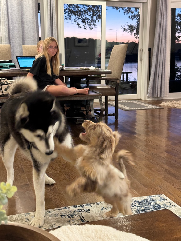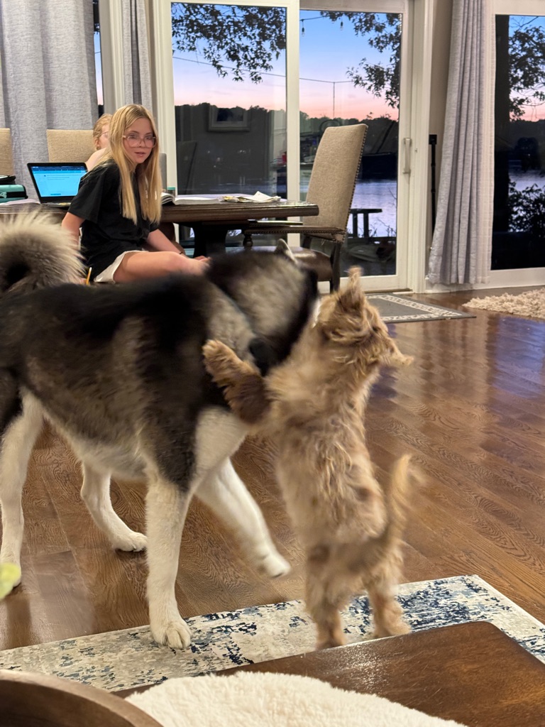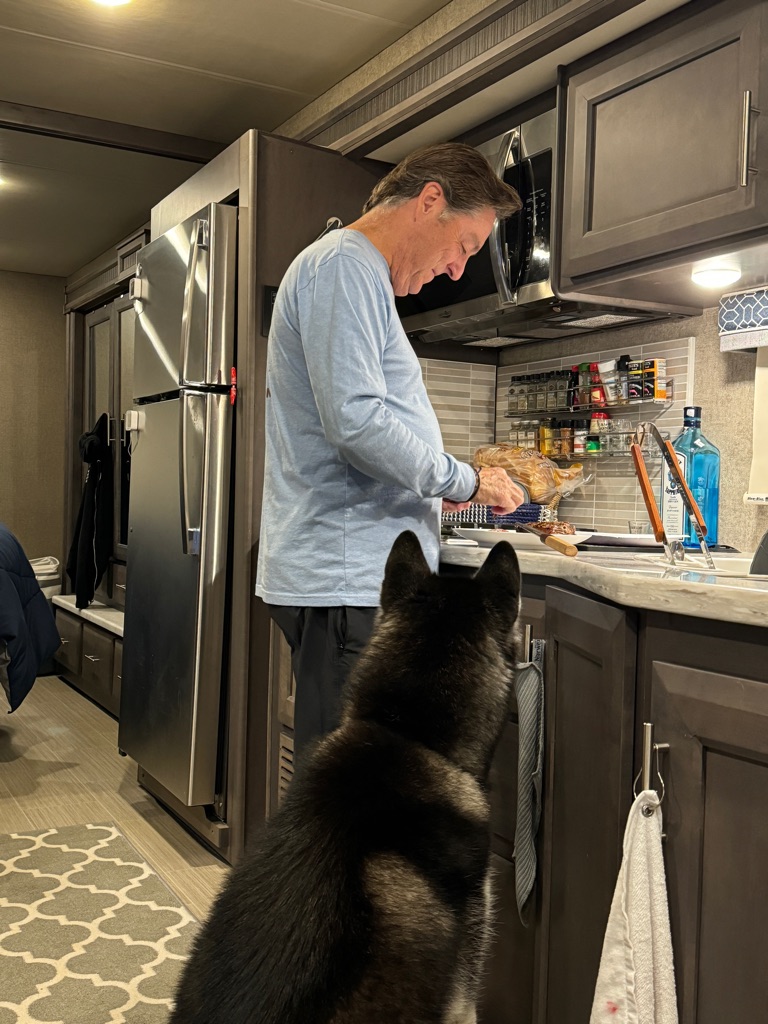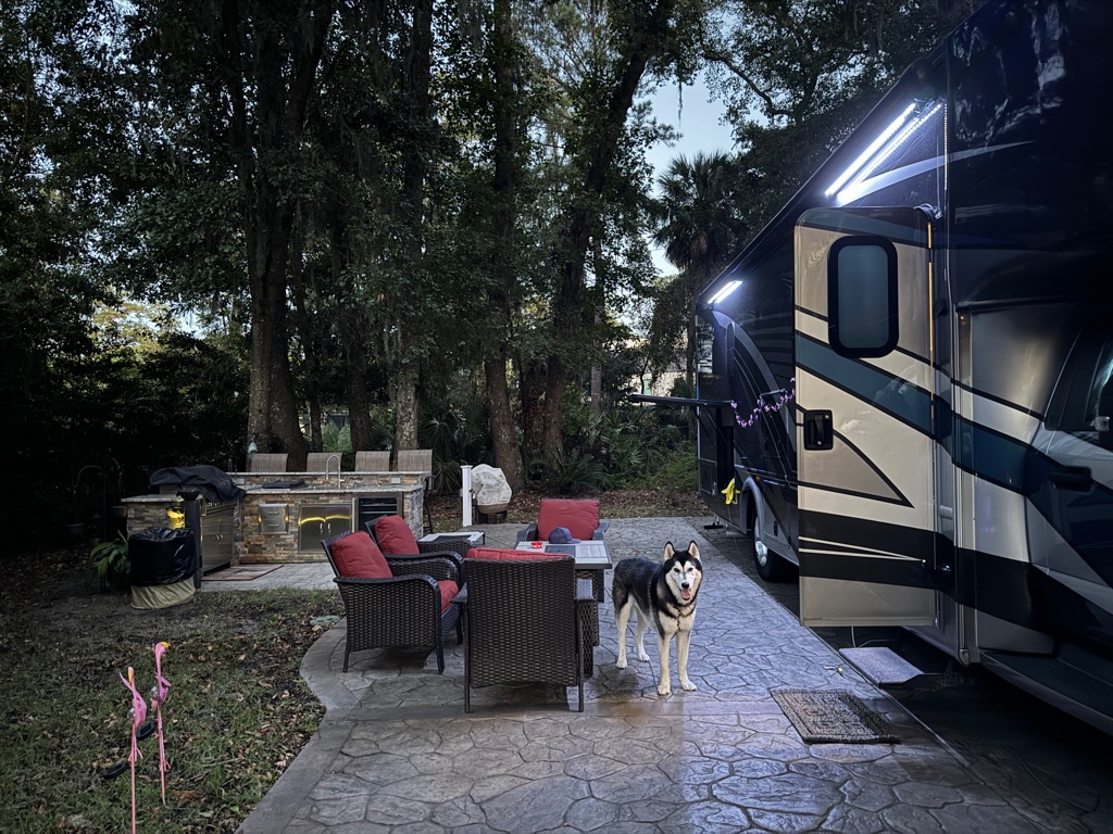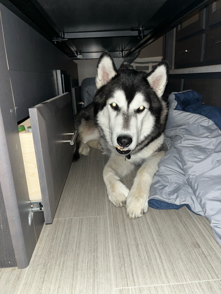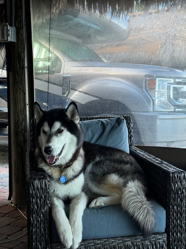 Long drive day to Louisville and we’re parked in a shitty, crowded RV park on the edge of the city. But Denali made a cute little friend - an 11-week-old miniature Australian Shepherd.