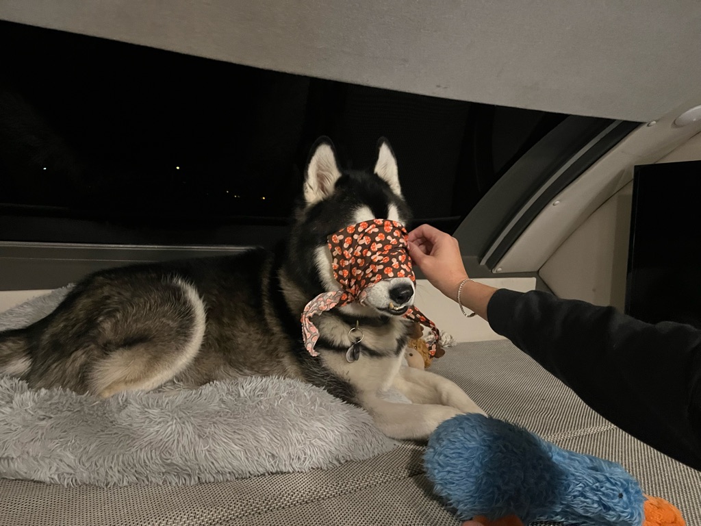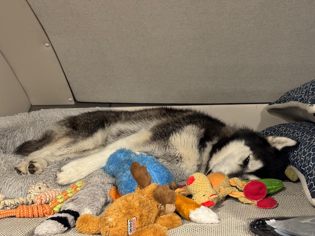 And we have pur happy husky back. He was so happy to see us when we picked him up from the kennel he was singing and dancing in circles.