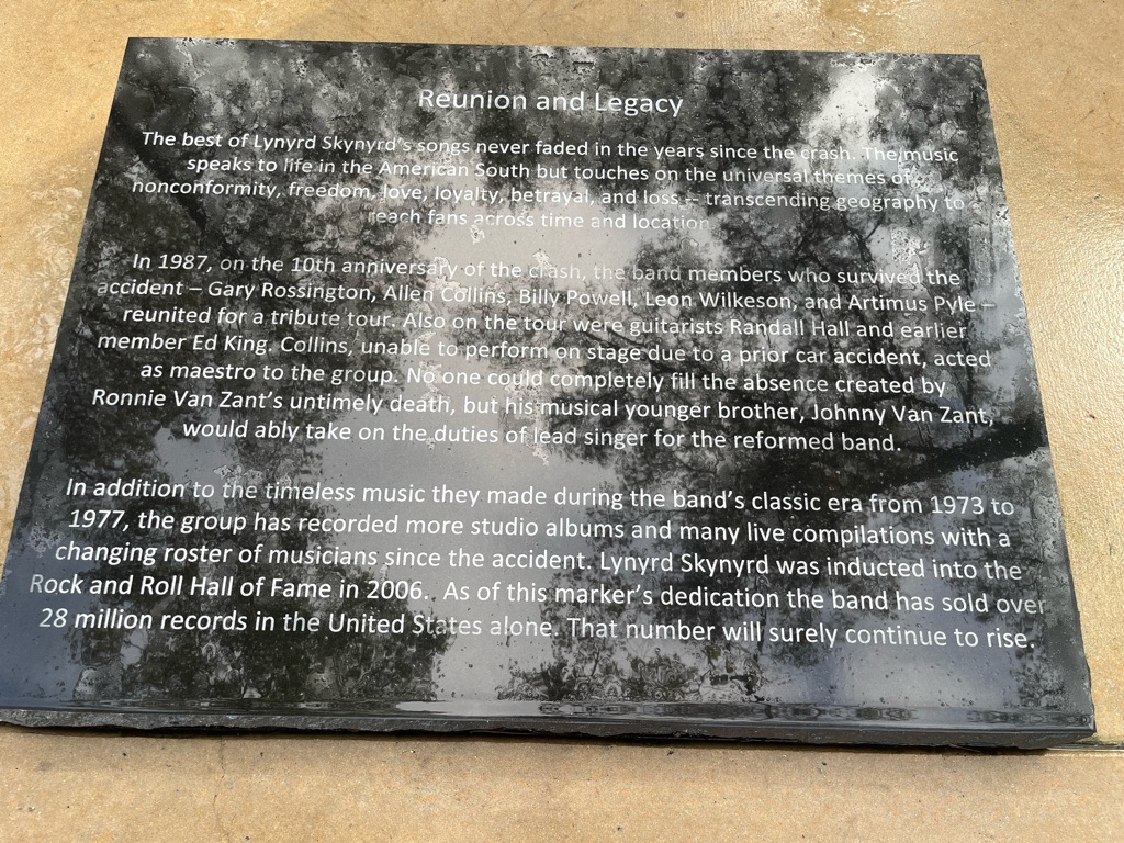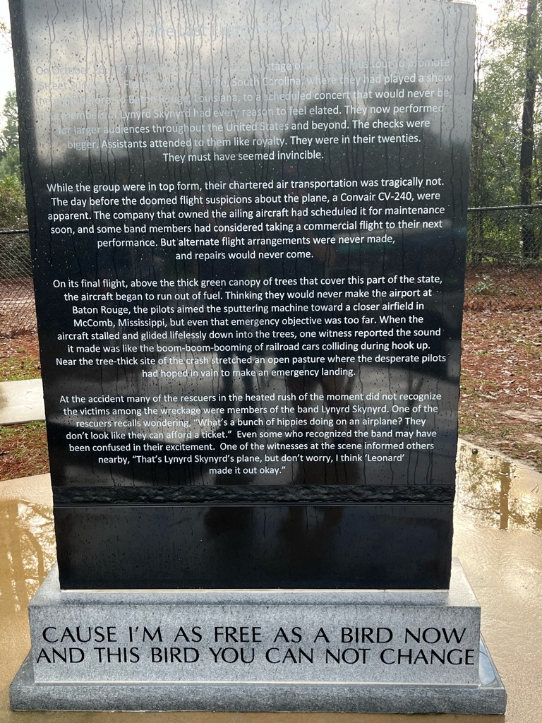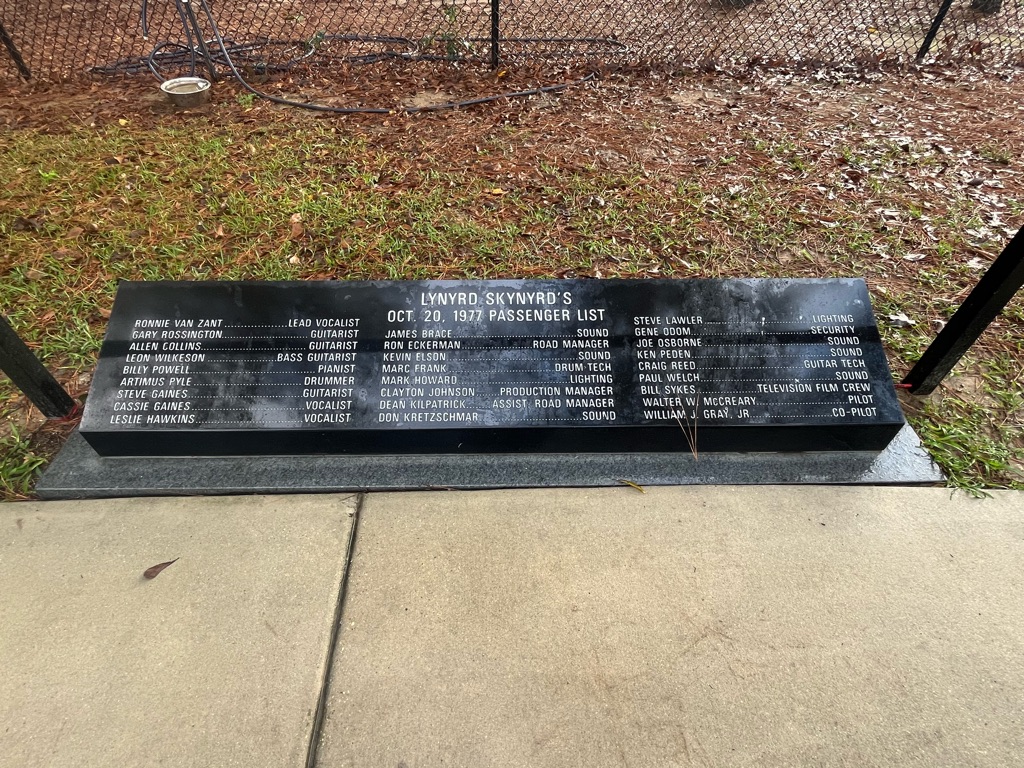 Just by chance, we saw a sign on the highway for a Lynyrd Skynyrd monument and had to go see.