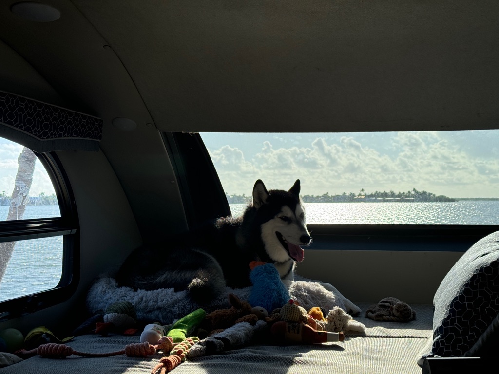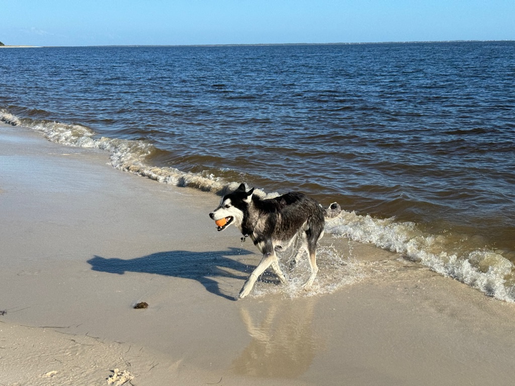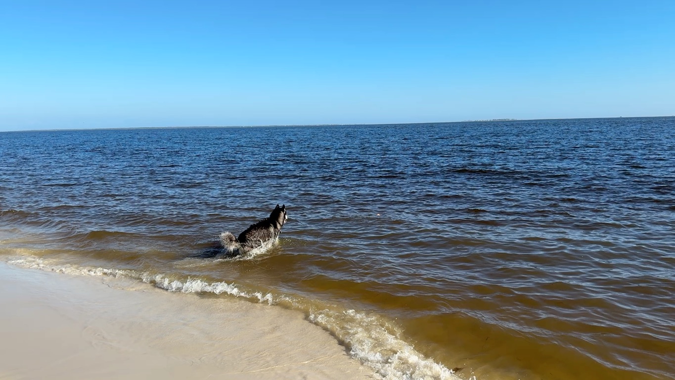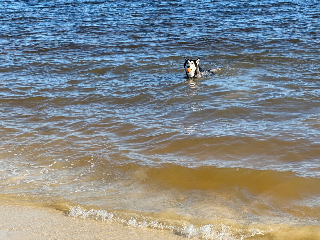 Water is way cooler here than the Keys, but Denali doesn’t mind.