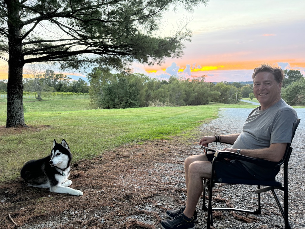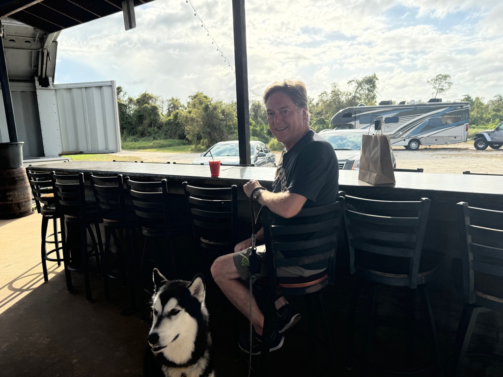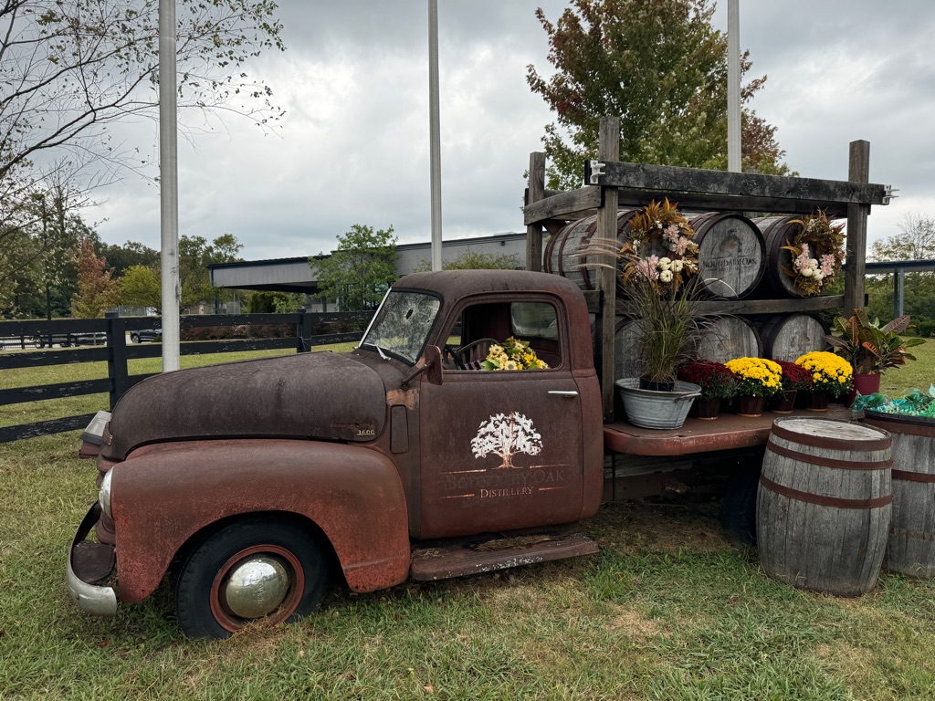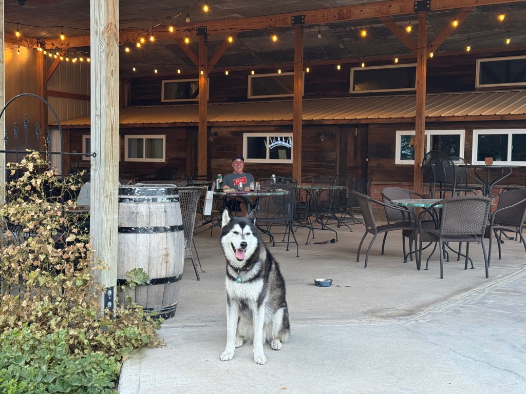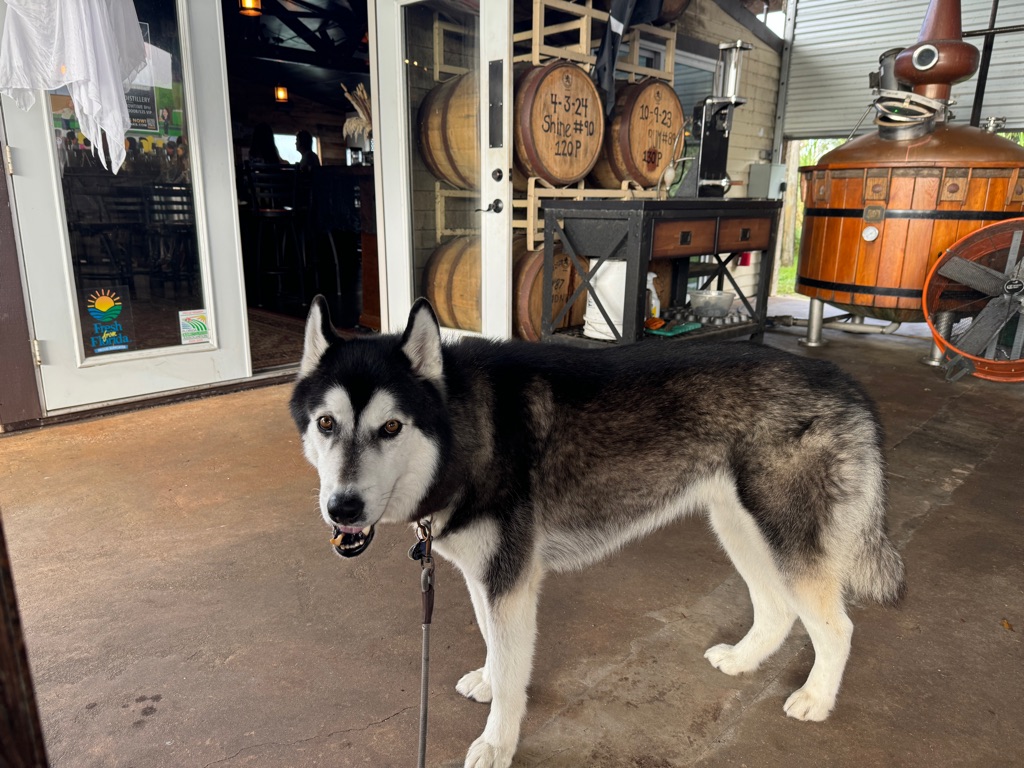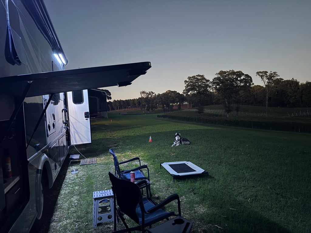 Our campsite tonight at Boundary Oak Distillery. Just parked out back with lots of room for Denali to run.