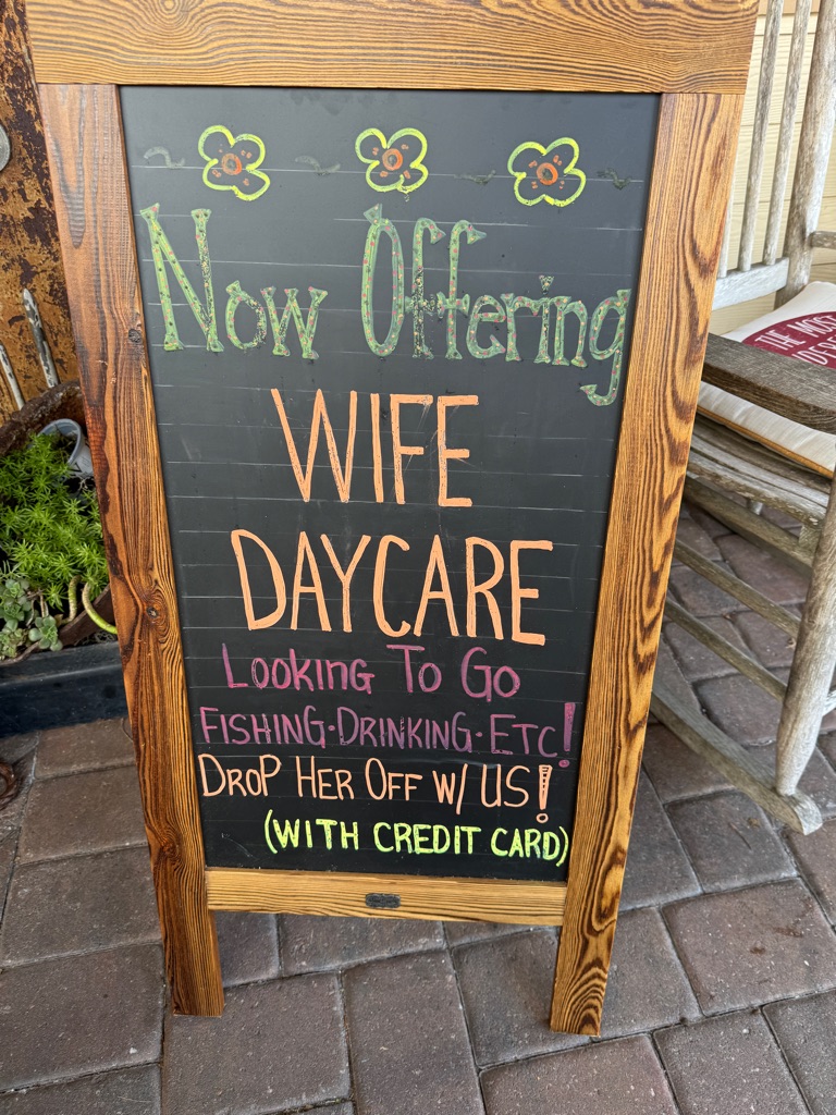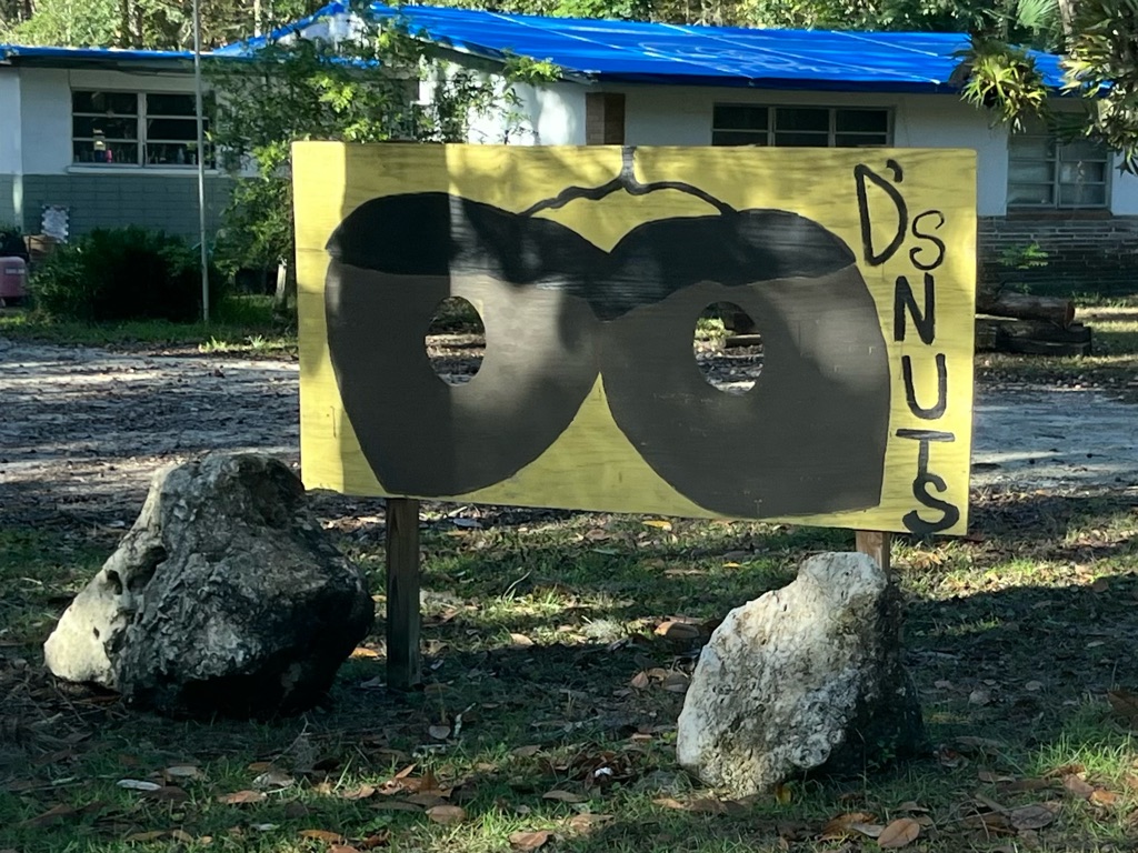 Driving back to the RV, I saw this sign and thought it was advertising donuts. I got Steve all excited about donuts in the morning on our way out. It’s D’s nuts. 🙄