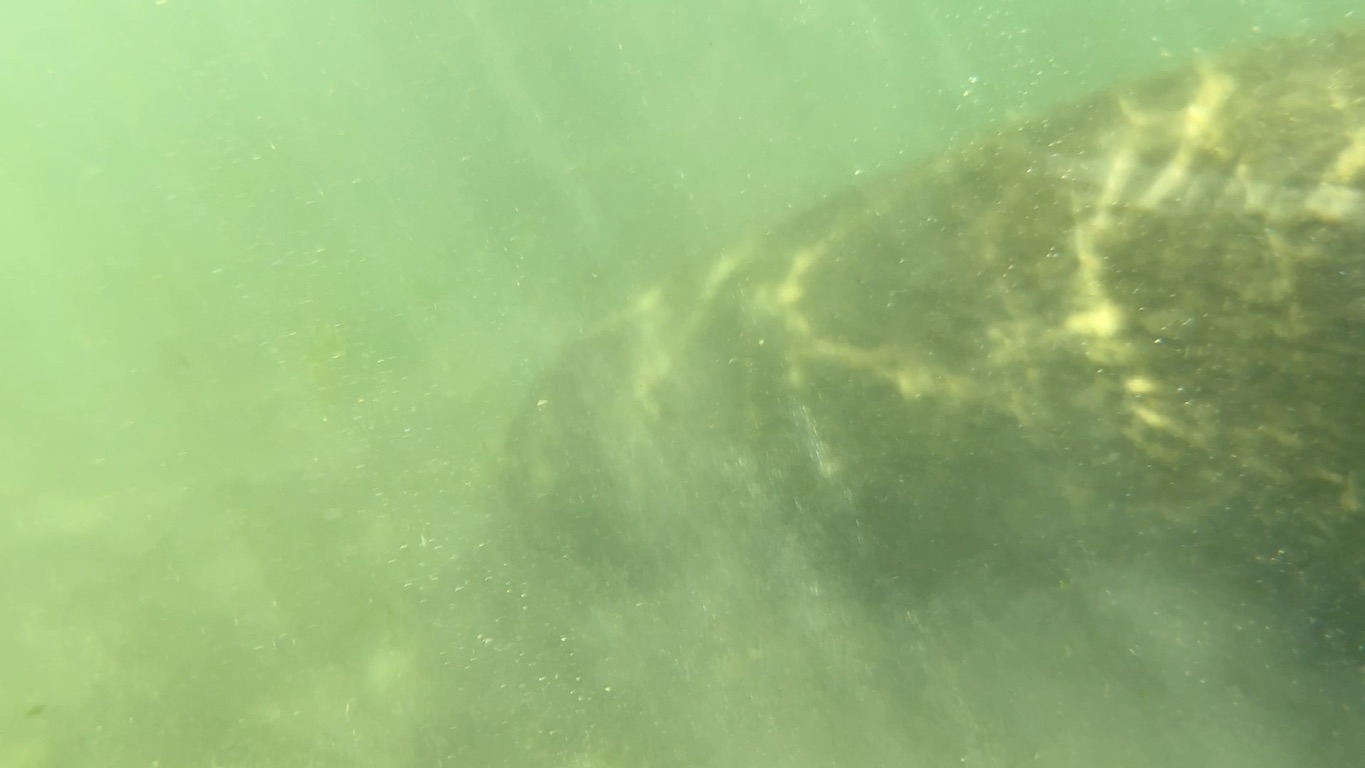 We can tell that this is a resident manatee because she has algae clinging to her like hair.