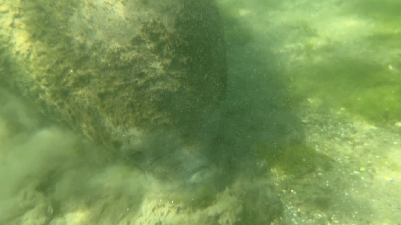 The migrant manatee come into the river encrusted with barnacles, which c later fall off in the fresh water, leaving them spotted.