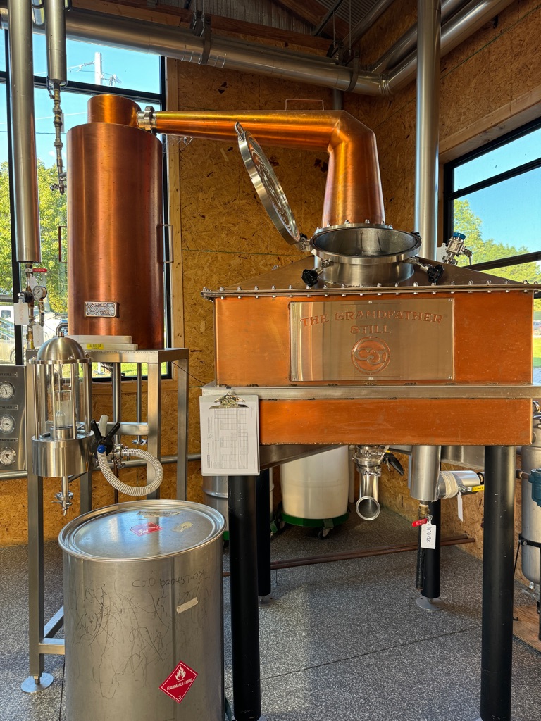 And rode over to the distillery on the other her side of the river. You can see the RV park on the ridge in the background.