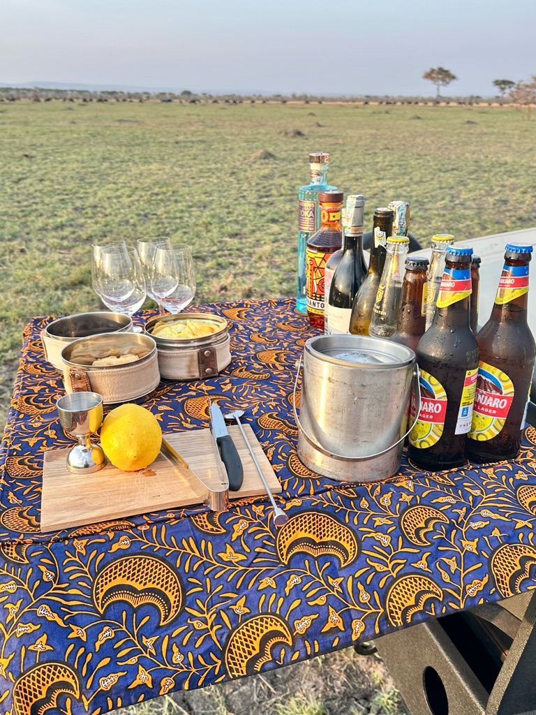 Head to the sundowner, the African version of happy hour. Clinton set up the bar.