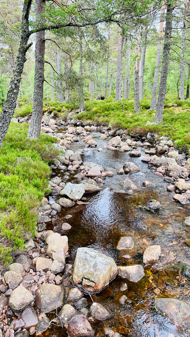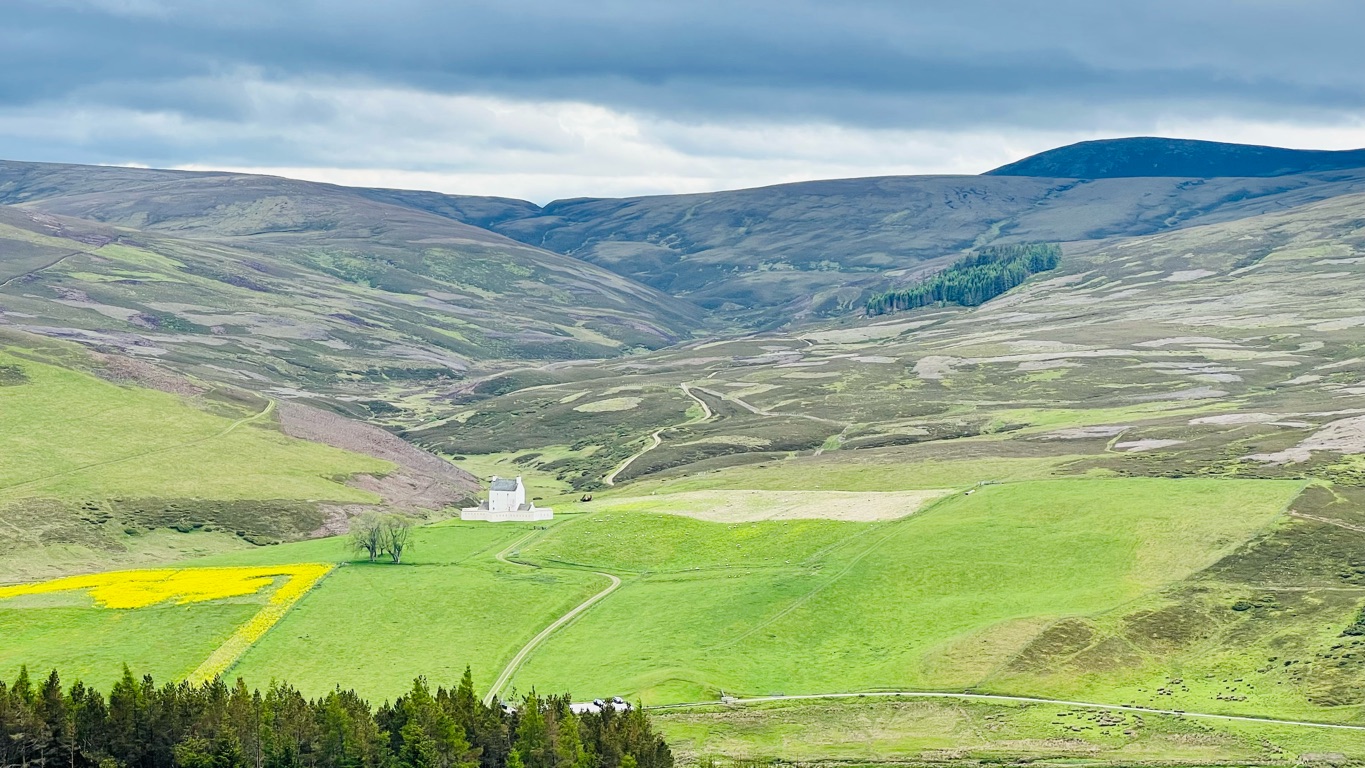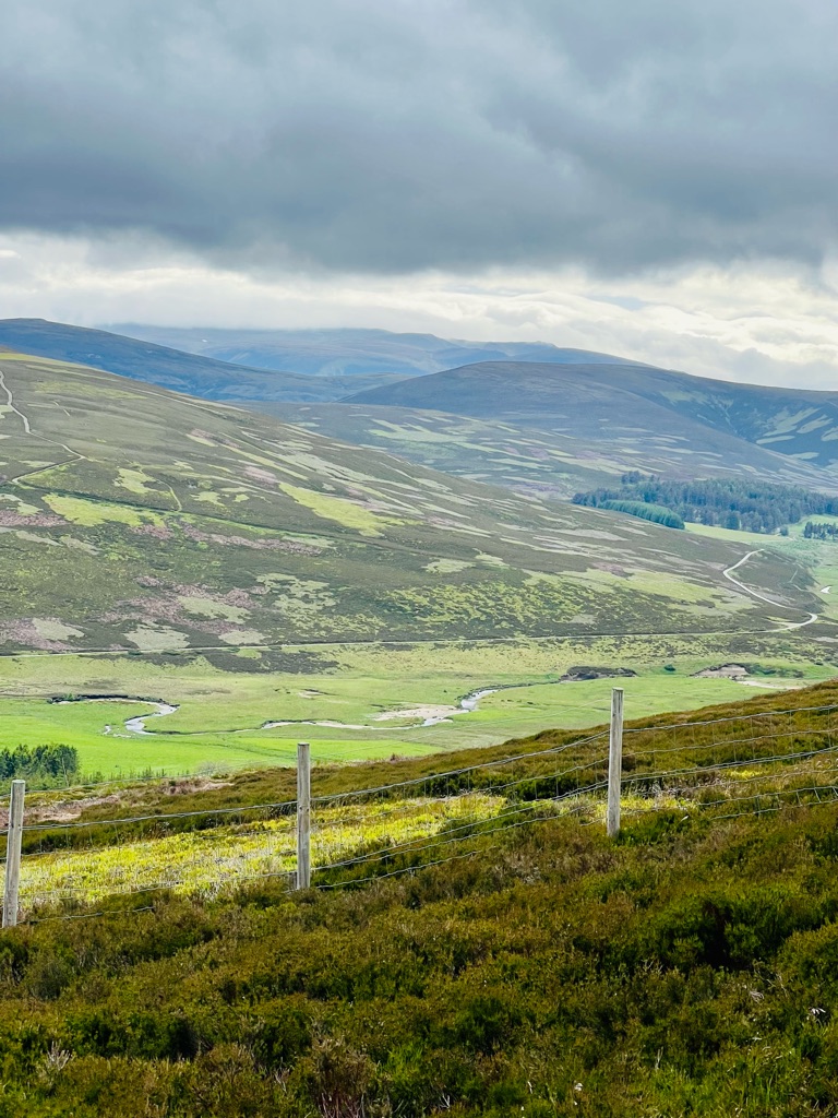 The drive there is through Cairngorms National Park and is loaded with the most beautiful scenery of rolling hills with vibrant bright green grass and small streams zig-zagging their way through fields of sheep.