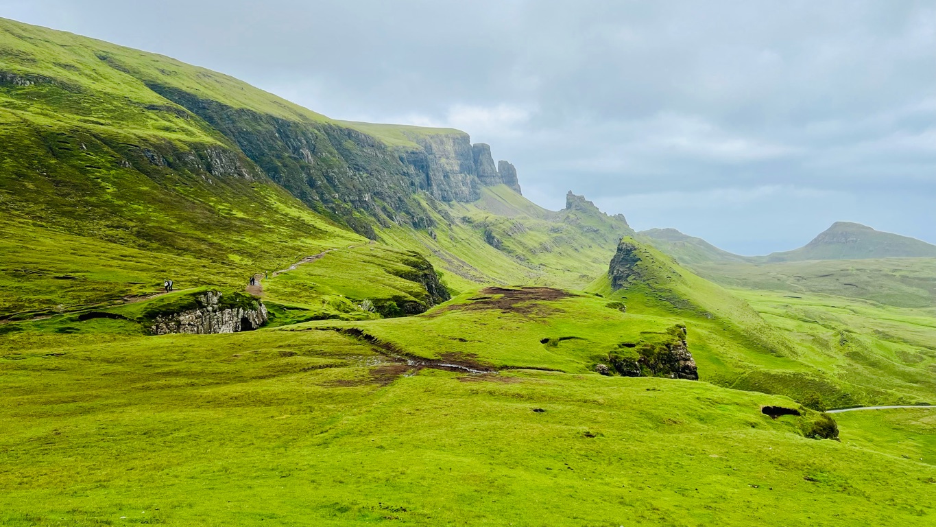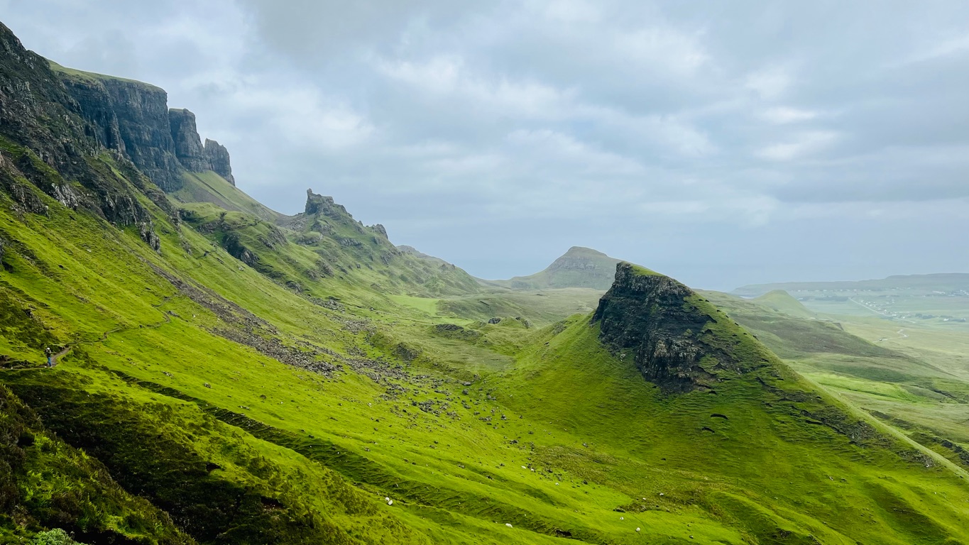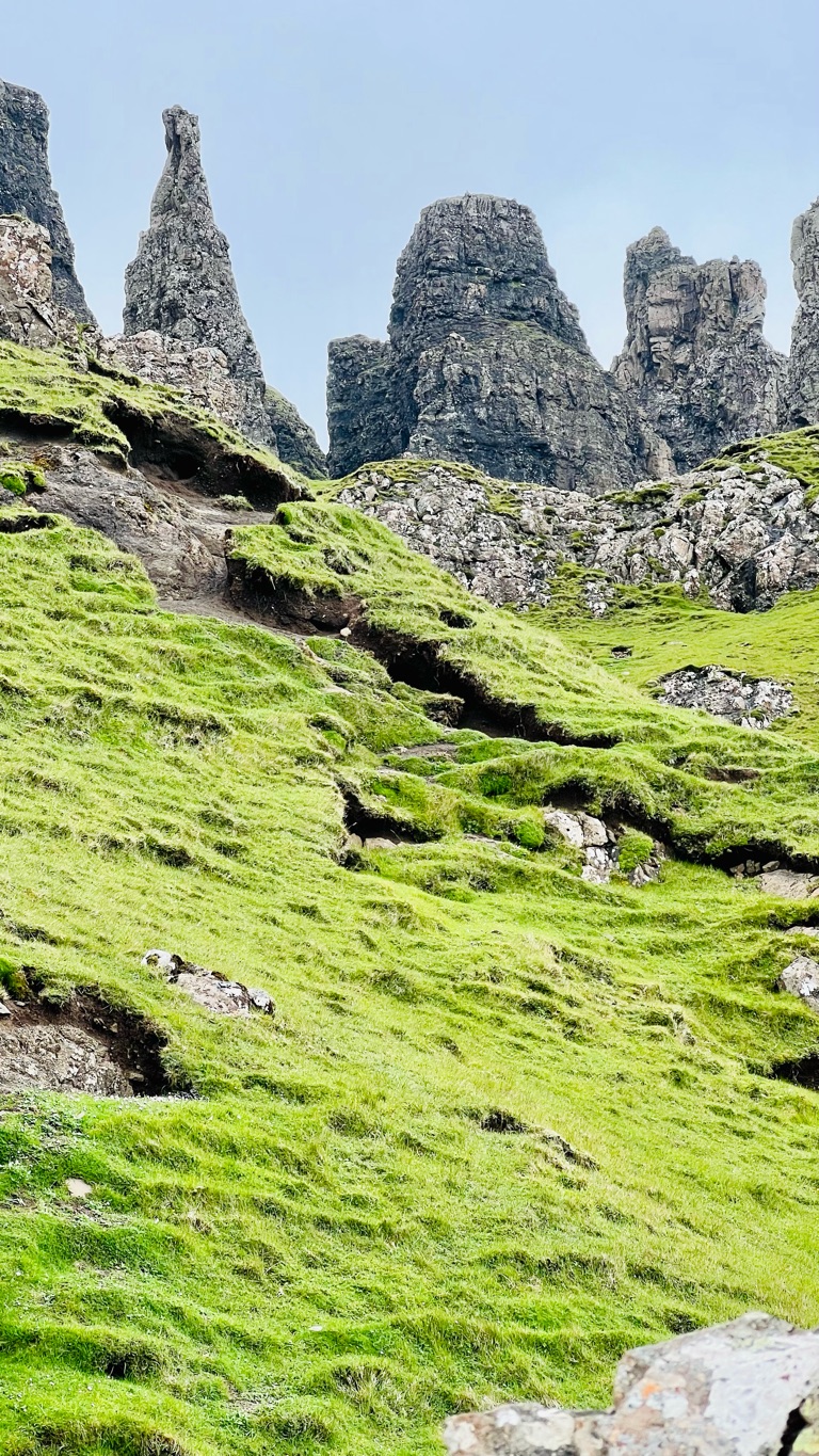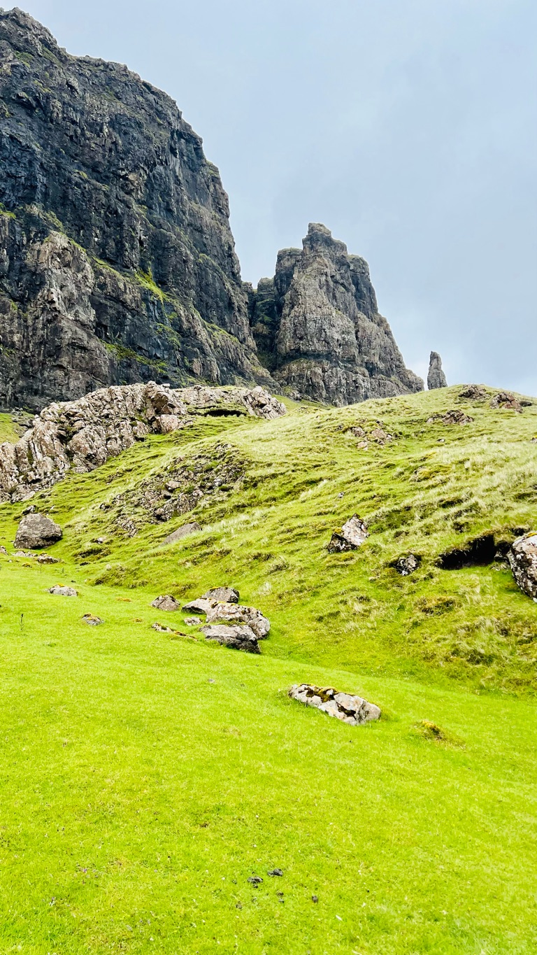 Ok so- the Quiraing. The most beautiful scenery ever. Mind-blowing, just absolutely beautiful. I didn’t think it could get better then you walk another 100 yards and the views changed and now you’ve got a waterfall added or something of the like. It honestly looked like some CGI stuff out of a movie or video game. I’ve never seen any landscape this beautiful. Millions of years ago during the ice age, ice was hundreds of feet thick and the weight of it carved out these cliffs in the rock escarpment. We walked on a trail hugging the escarpment along a ridge overlooking the vast valley below, listening to the sheep around us. Couldn’t have asked for a more beautiful walk in a more beautiful place.