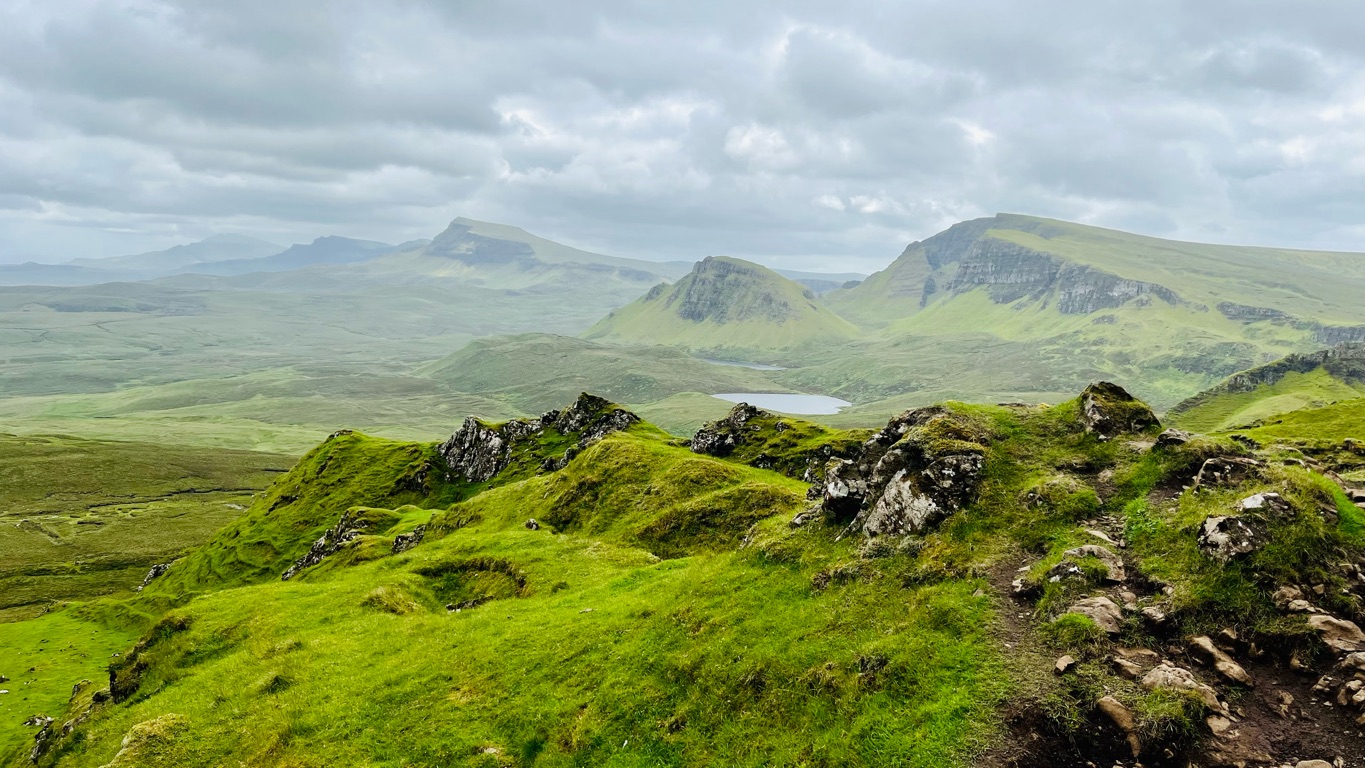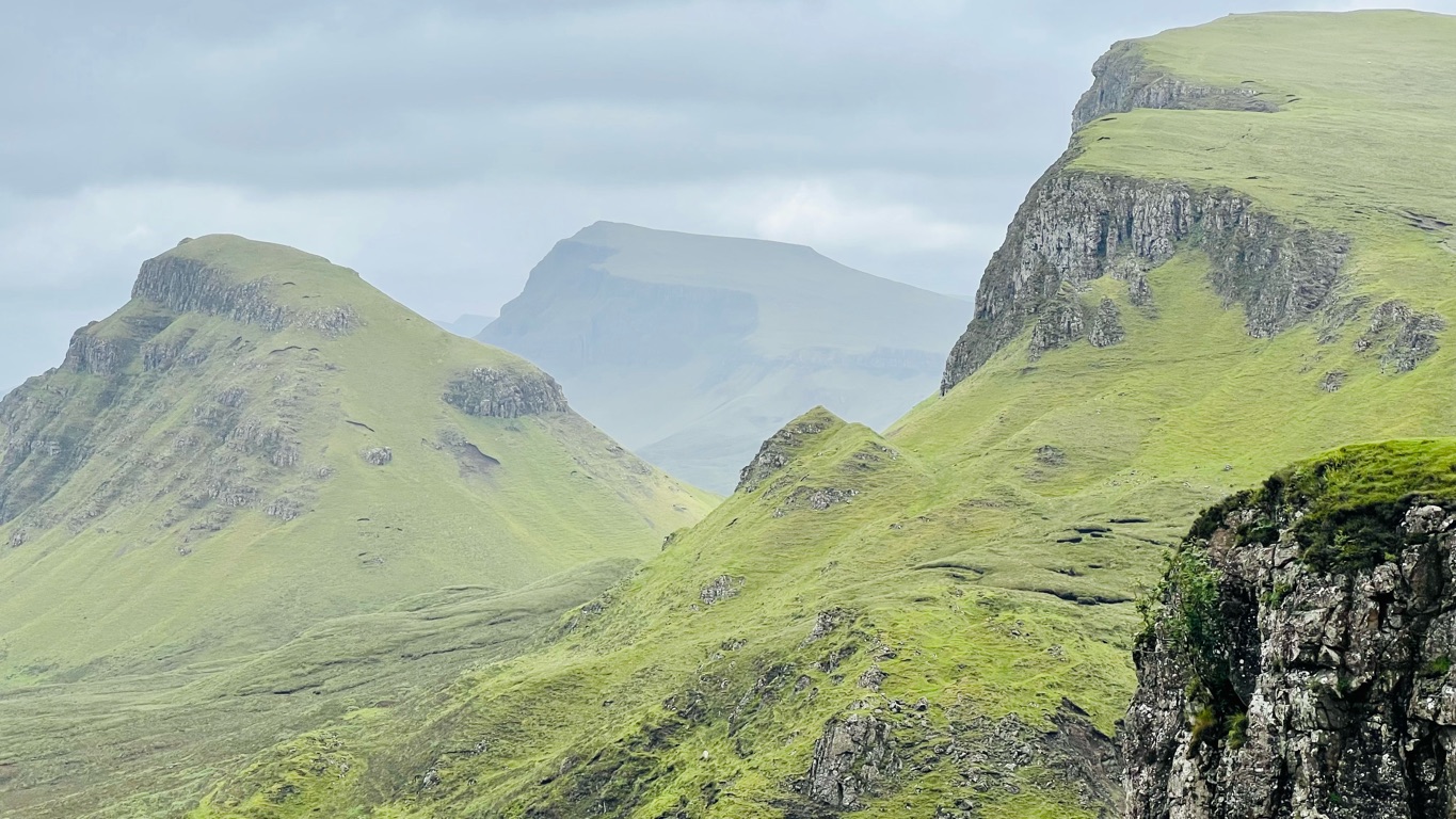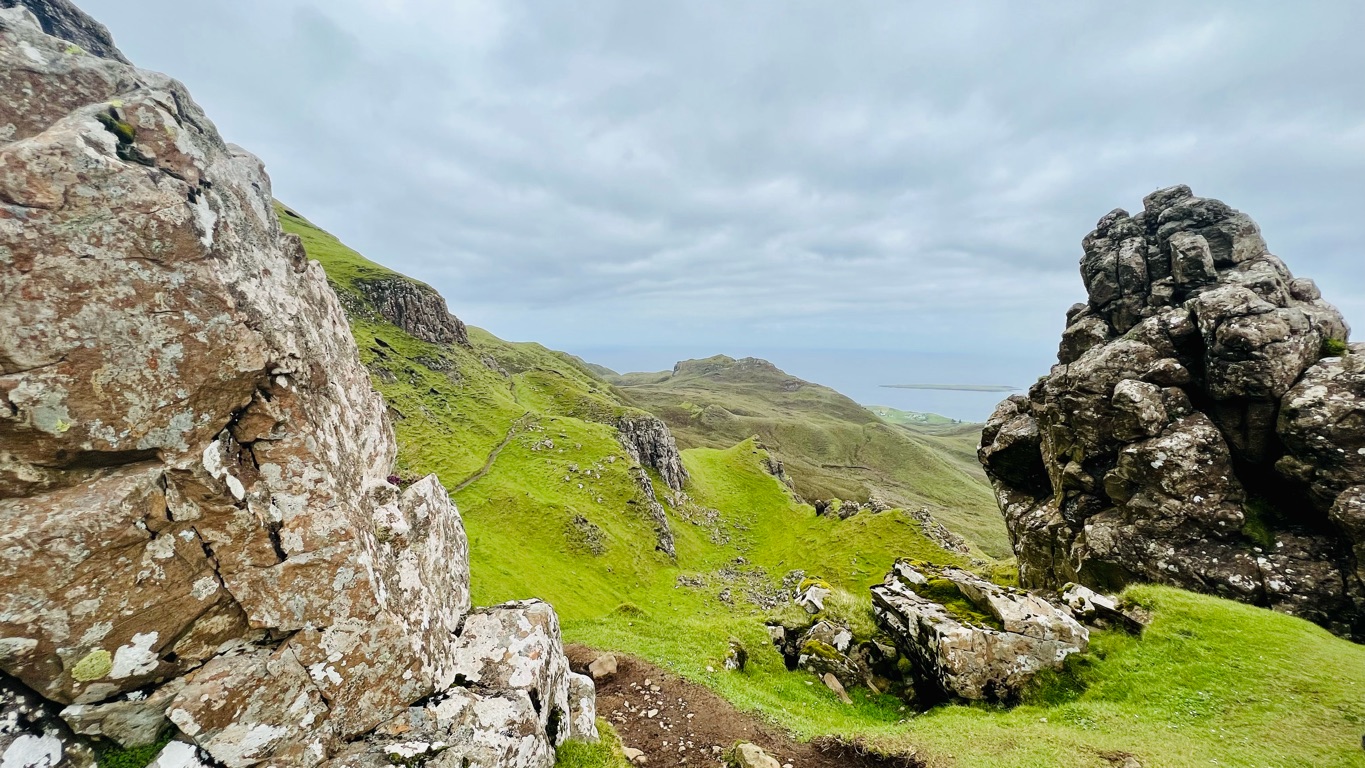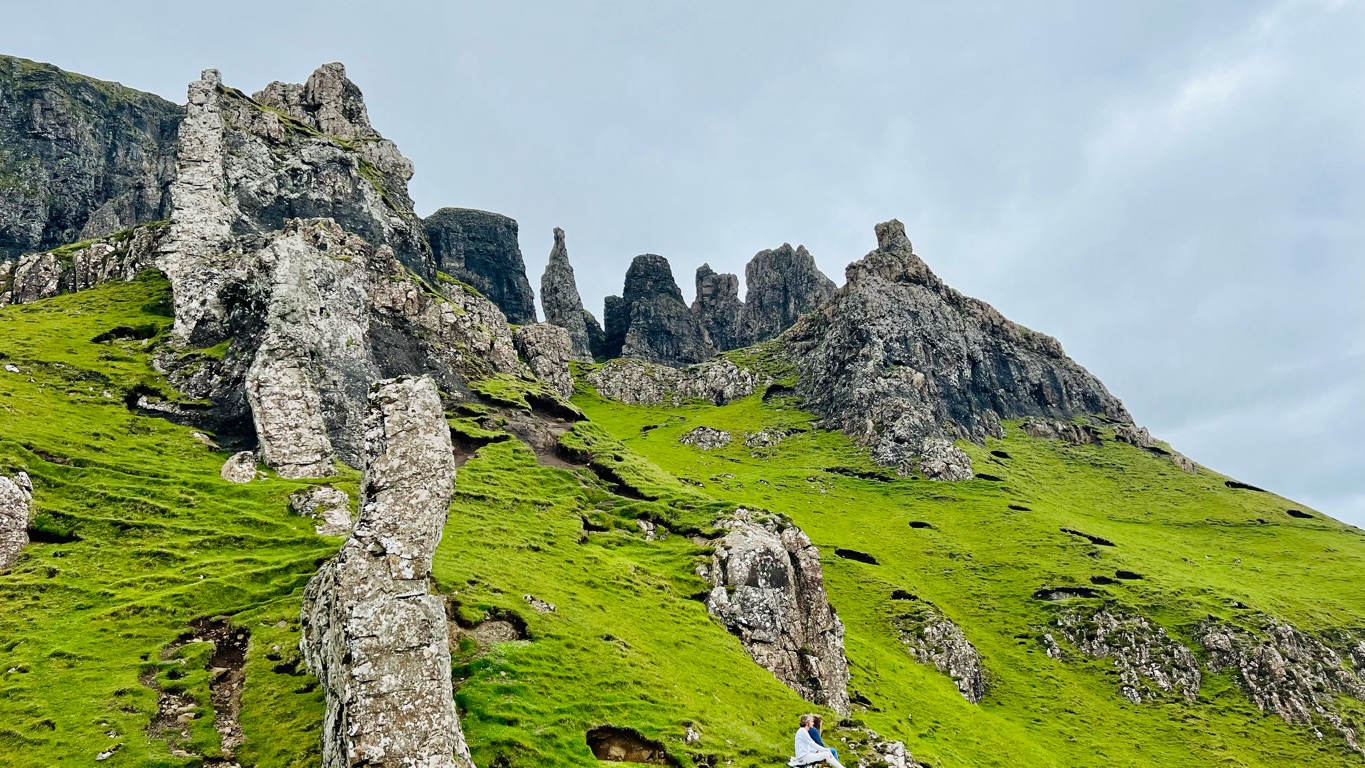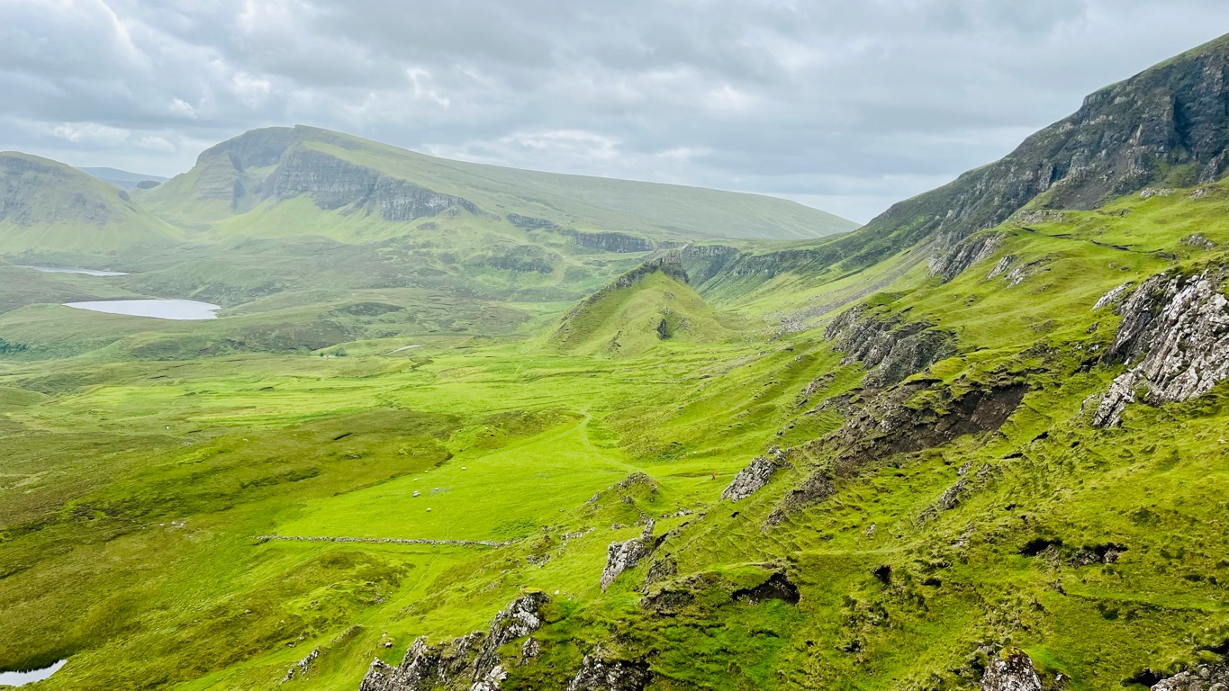 Ok so- the Quiraing. The most beautiful scenery ever. Mind-blowing, just absolutely beautiful. I didn’t think it could get better then you walk another 100 yards and the views changed and now you’ve got a waterfall added or something of the like. It honestly looked like some CGI stuff out of a movie or video game. I’ve never seen any landscape this beautiful. Millions of years ago during the ice age, ice was hundreds of feet thick and the weight of it carved out these cliffs in the rock escarpment. We walked on a trail hugging the escarpment along a ridge overlooking the vast valley below, listening to the sheep around us. Couldn’t have asked for a more beautiful walk in a more beautiful place.