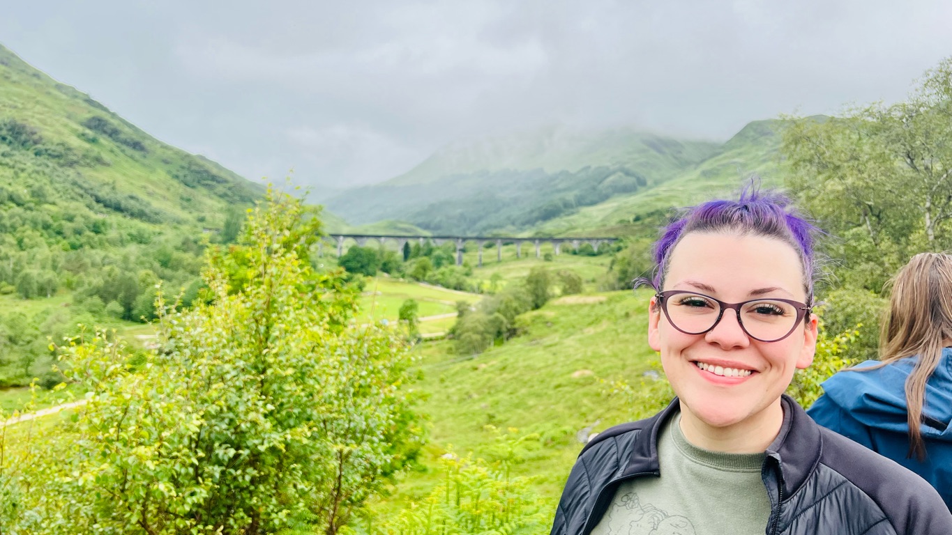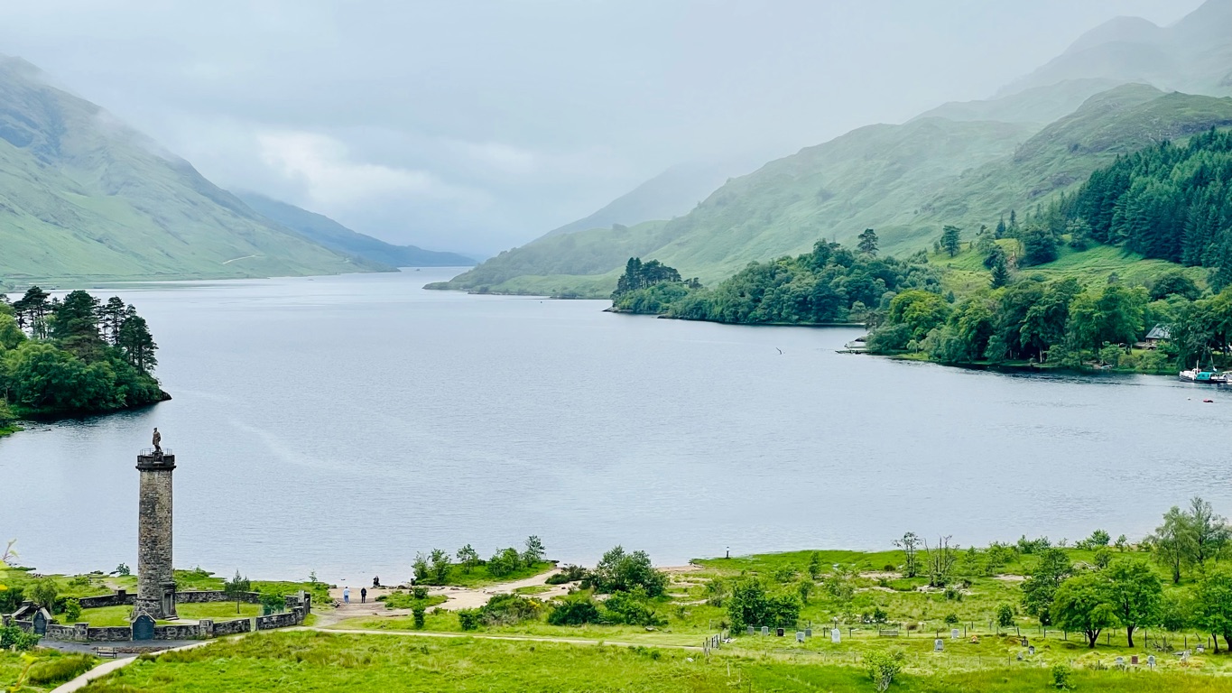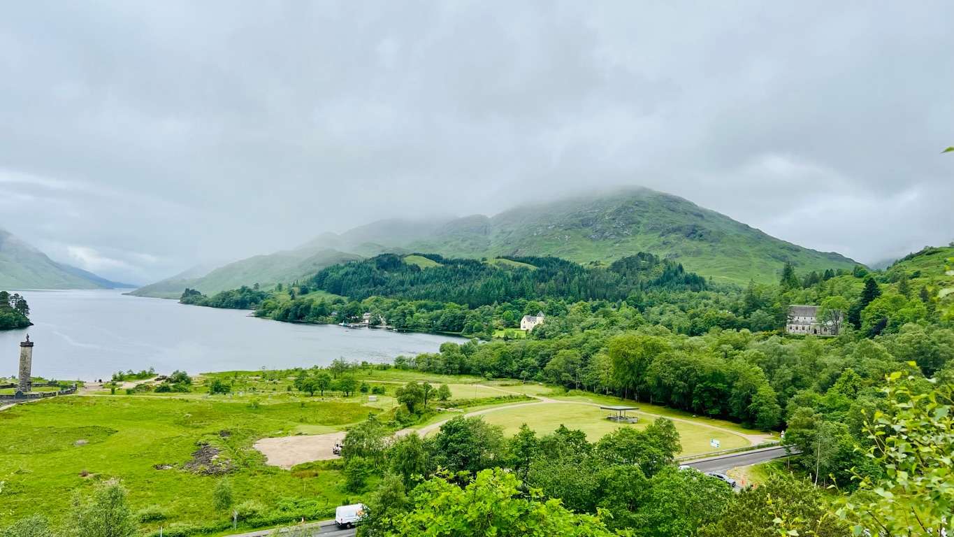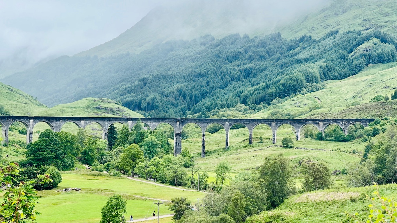 We started today off checking out of our magnificent cottage on Isle of Skye and took a 3 hour drive to the Glenfinnan Viaduct where they filmed the train to Hogwarts scenes in Harry Potter. A steam train runs through twice a day over a pretty tall viaduct through some classic Scottish hills with a meadow below. There’s a couple viewpoints, Khrystyan and I took one up a hill looking straight onto the viaduct, Laura and Gerry took a different one to get more of a head-on angle of the train.