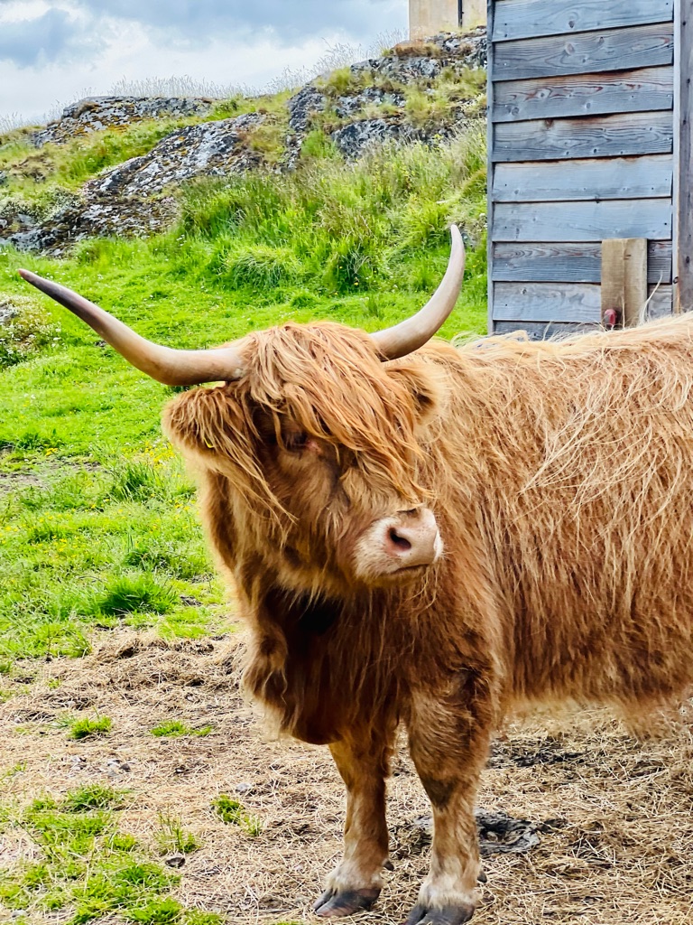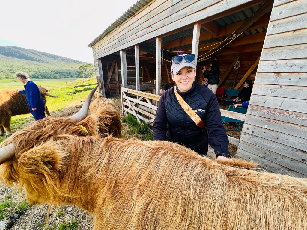 We then went about an hour north to Balgowan to spend some time (about 3.5 hours) with some prize-winning Scottish Highland cows (colloquially called the “Hairy Coo’s;I like to call them “emo cows” because of their long bangs”.) We learned about the beautiful valley the land is on, what makes for an award winning Scottish Highland cow (the nearby annual Highland games at Oban is like the Mecca for competition Highland cows), how to interact, feed and brush them. I really enjoyed today, the hike was stunning and it was great to walk through some woods with a local. I also really enjoyed the cows, sounds a bit silly but they’re so beautiful and docile and have wonderful personalities.