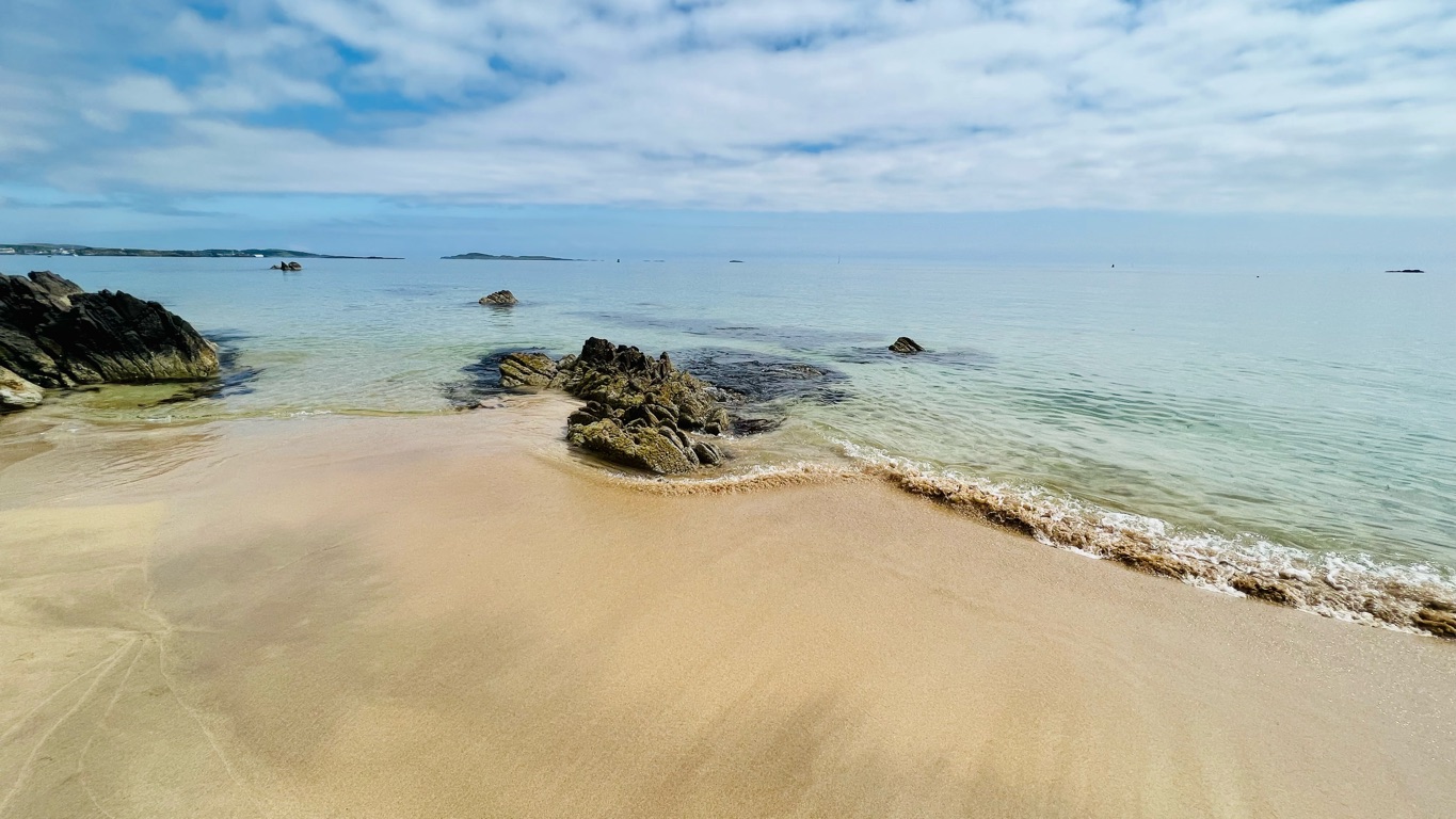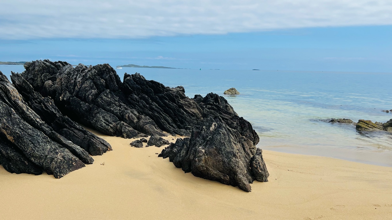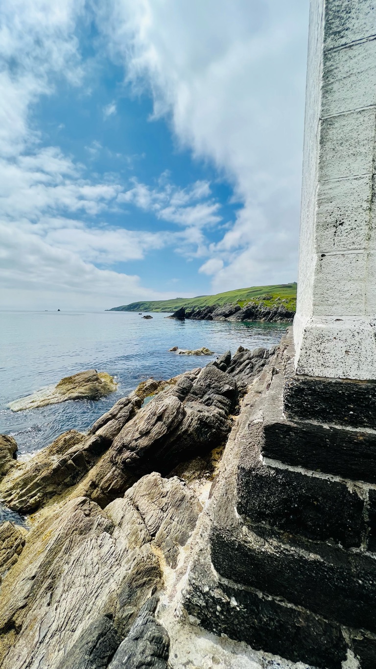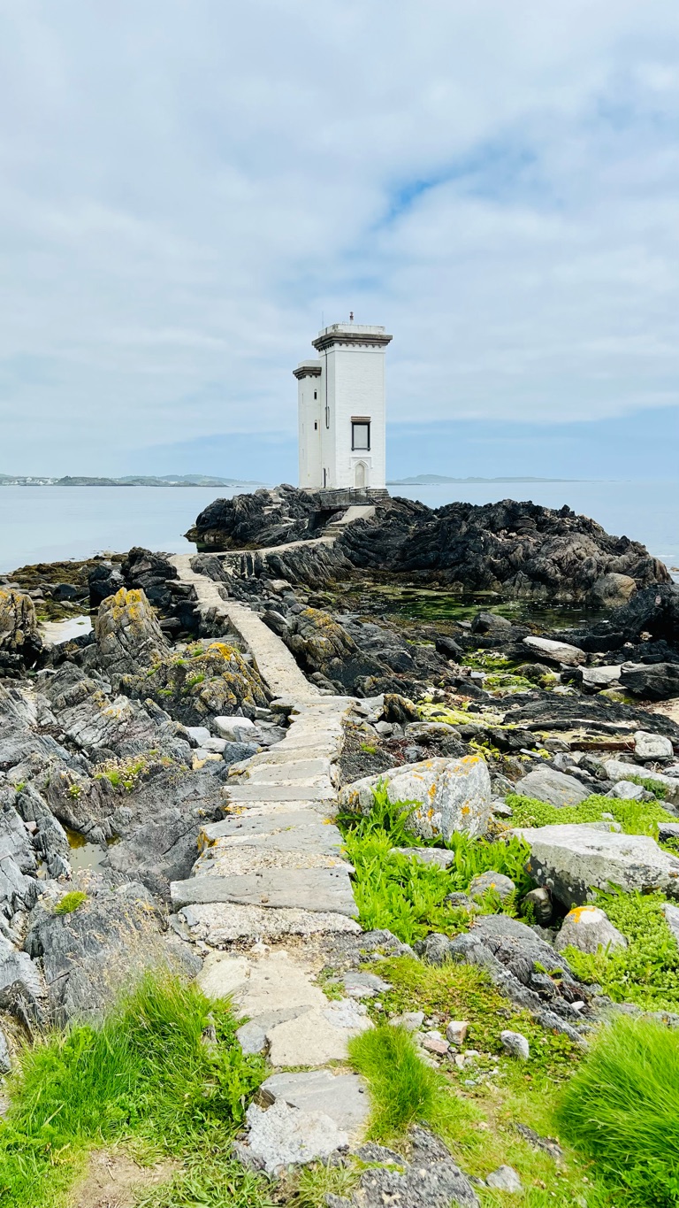 While he was doing his Laphroaig tasting Laura, Khrystyan and I drove to a lighthouse and beach about 20 mins away. It was absolutely beautiful! Perfect sandy beach (a bit rare for Scotland, doesn’t even look like a beach you’d think was in Scotland), with cool jagged rocks jutting up out of the sand. I kicked off my shoes, rolled up the pants and had a good time walking through the cool water.