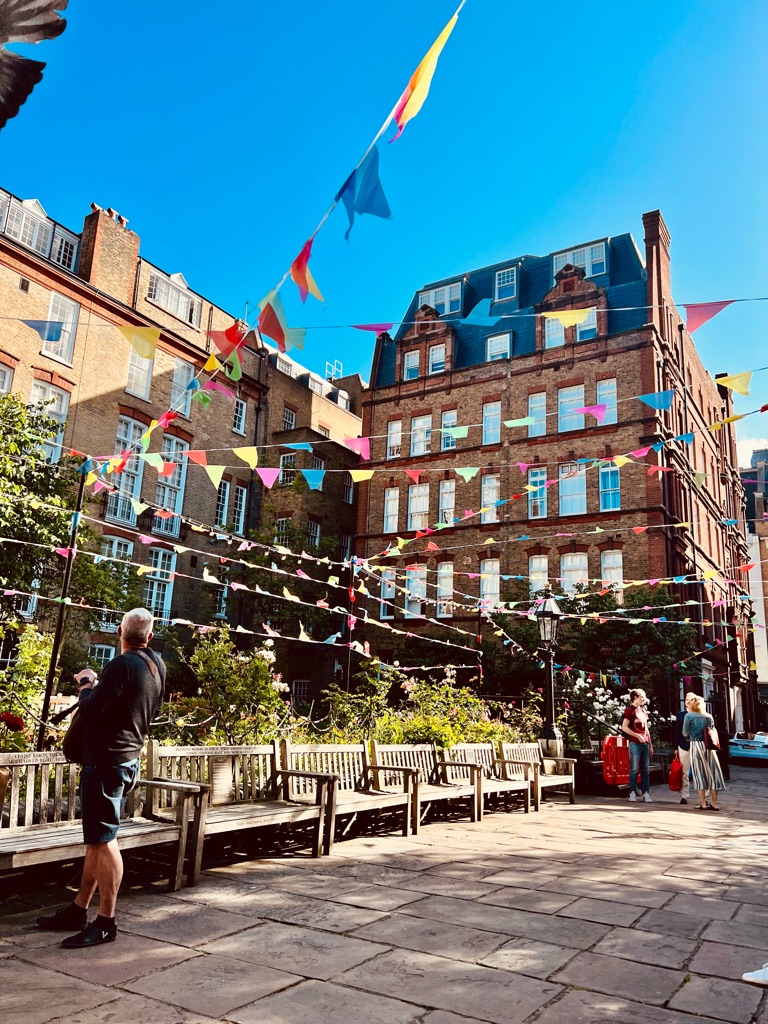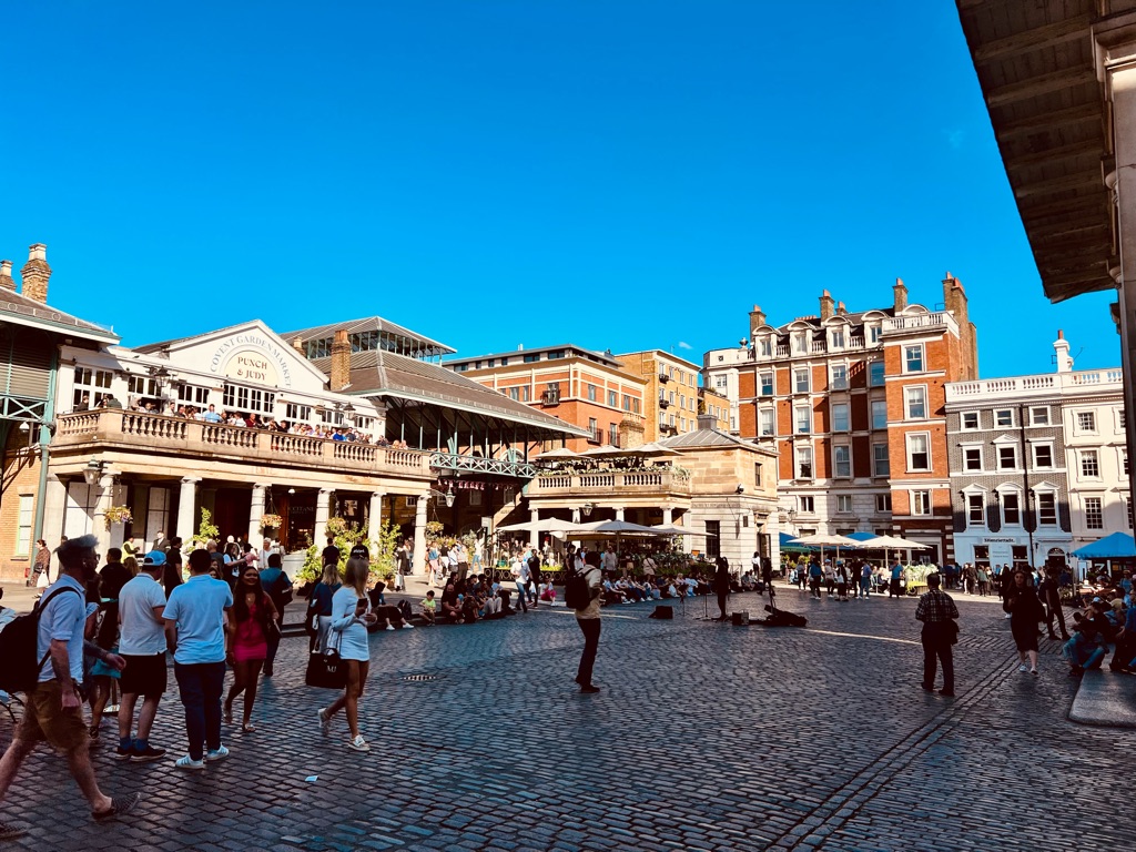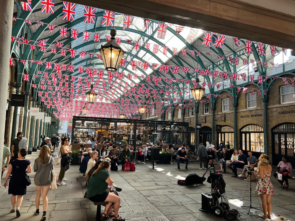 We then walked to Covent Garden, a beautiful outdoor market surrounded by restaurants, bars and shops, and surrounding an old church with a beautiful English rose garden- perfect spot to relax and sip our drinks as we rested from all the walking.