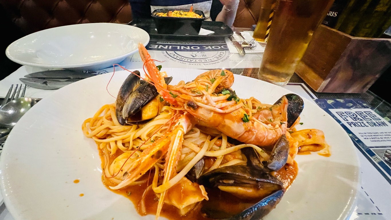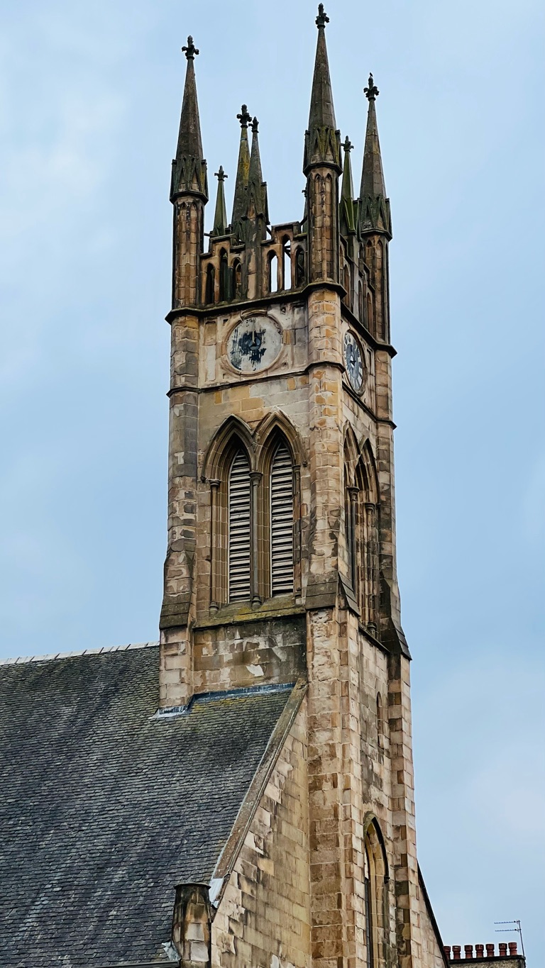 Afterwards, we drove to our flat in Glasgow. We moved all our bags and stuff inside, then Laura and Gerry had to go drop off the rental car. While they were gone, Khrystyan and I started some laundry and went to go get dinner. Right up the street a couple blocks away is Coia’s Cafe which looked very nice and inviting and SUPER BUSY. Most everything else was closed or didn’t look too good, so we put our name on the list and walked around for half an hour checking out our little local neighborhood of Dennistoun on the east side of the city. We saw a beautiful old gothic church, some picturesque neighborhood streets and I even found a geocache near a statue of Buffalo Bill. Apparently he and Annie Oakley brought their Wild West show to Glasgow in the 1800’s for three months. I guess the locals loved it so much they made a statue of him. Pretty funny and odd to see a western cowboy statue in the east side of Glasgow, Scotland. Anyways, we went back to the restaurant and had a seriously incredible seafood dinner, totally worth the wait, now I get why it was so busy!