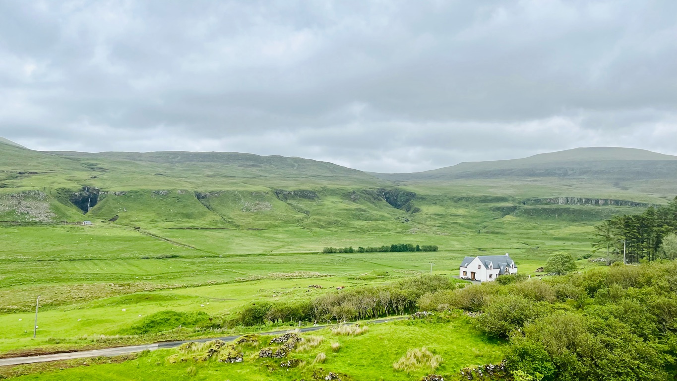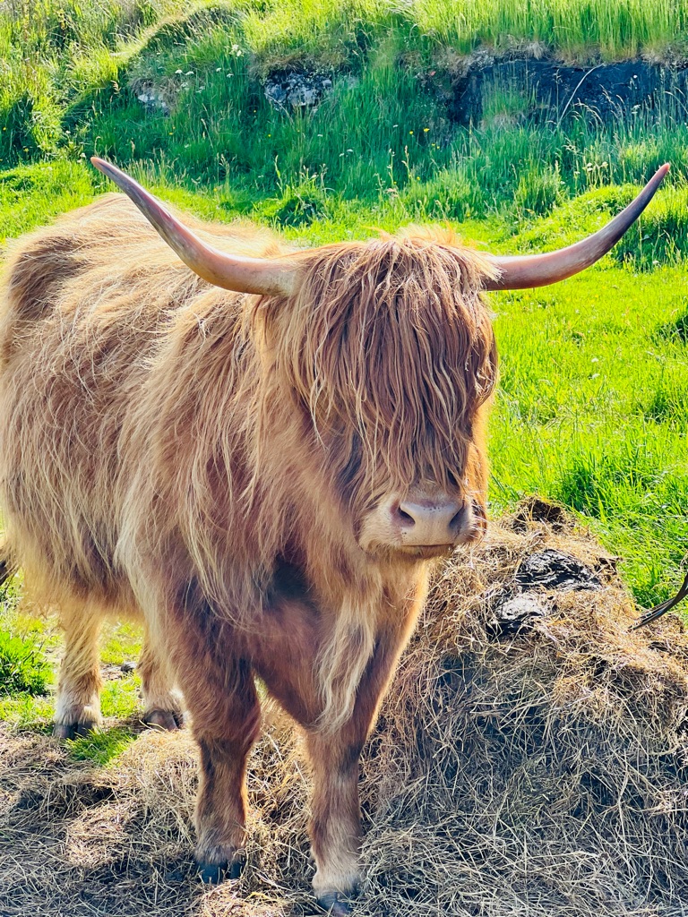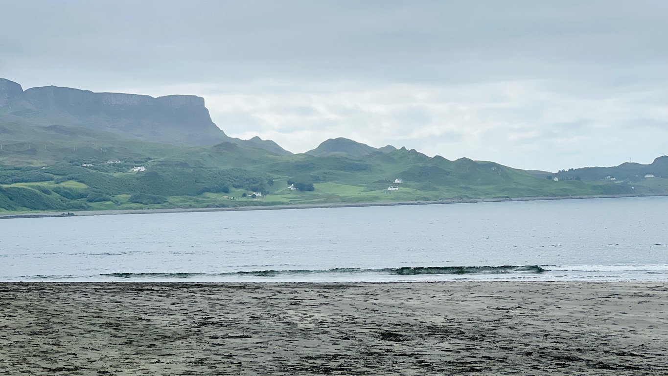We then continued on our way to the stunning Isle of Skye. Rolling vibrant mossy hills with lots of small waterfalls, creeks and rivers zig-zagging their way around with deeps firths of the sea cutting their way into the hills. It’s like the Cairngorms drive a few days ago, but with more waterfalls and sea views with majestic cliffs. Unbelievably beautiful and impossible to capture with a camera. Our Airbnb stay for the next 3 days is on the coast in a very remote area outside of Portnalong and is perfect. It’s a newly redone cottage that’s very clean and bright, has a washer (big plus), comfy beds and a beautiful kitchen and living room. Very relaxing place to stay for a few days.