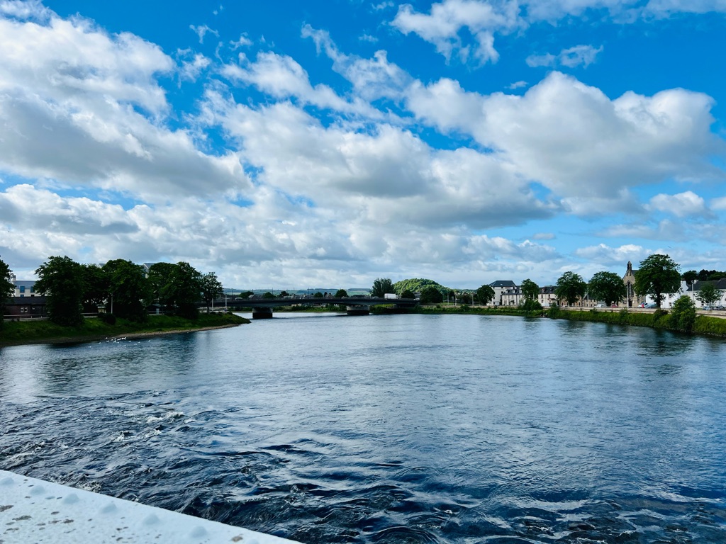 Left our one night stay in Inverness with some coffee and delicious donuts. This is Inverness, a small little city with the River Ness running through it:
