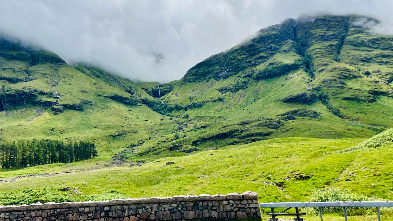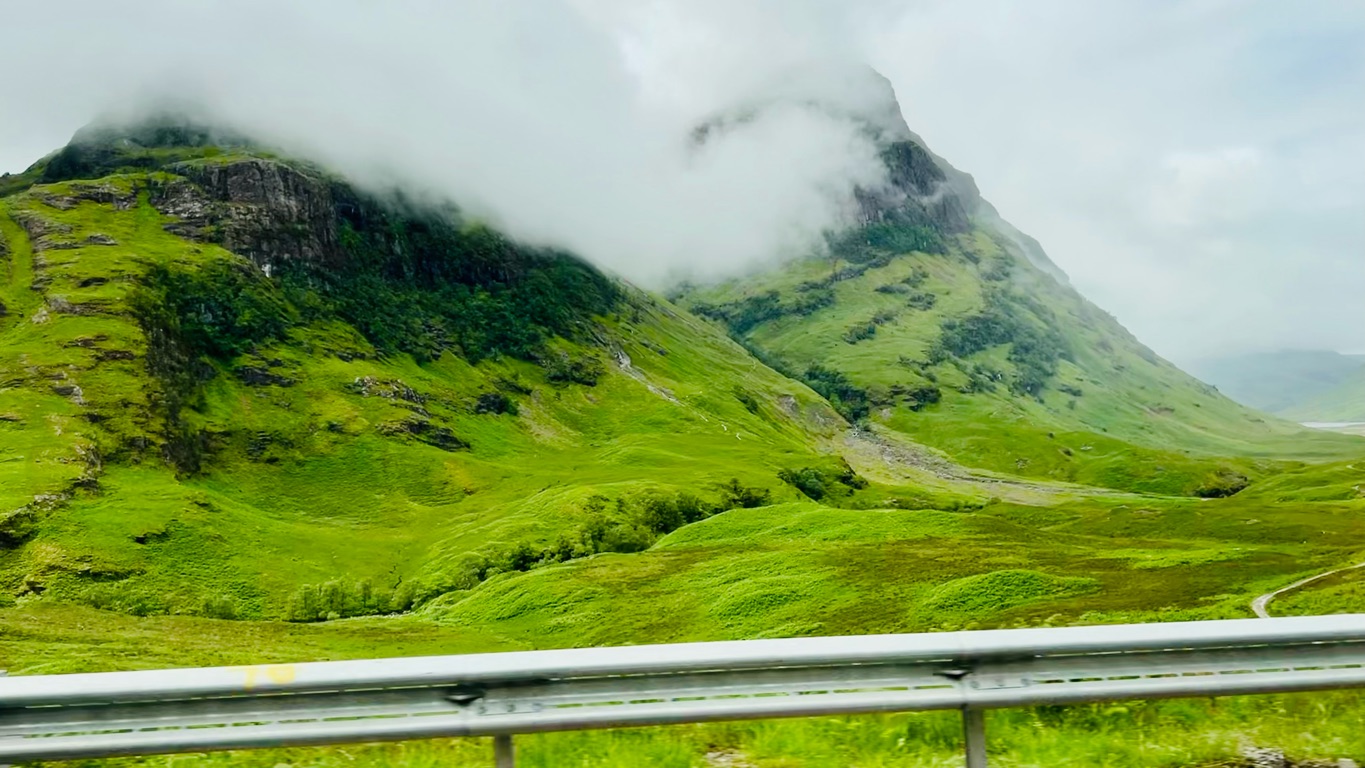 Today started with a drive to see the “Fairy Glen” outside of Glen Conon. This is a magical place where you’re surrounded by the vivid green rolling hills and meadows, but added some small moss covered hills with some exposed stone, a small waterfall and creek. It was the most beautiful place I think I’ve seen (until later that afternoon.) We walked around amongst the sheep, climbing some of the hills to get different views. 360-degree views of some stunning scenery. There’s going to be a lot of photos uploaded here today.