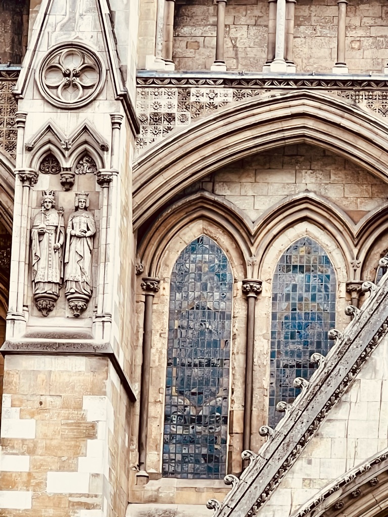 After we finished eating we took the tube from London Bridge to Westminster to see Westminster Abbey, but the lines were outrageously long, so I just took some photos of the front. What an extremely beautiful sacred place, the detail in the stonework, stained glass. I can understand why kings and queens and the most famous of the English entombed here. It’s a shame I wasn’t able to go inside- this time.
