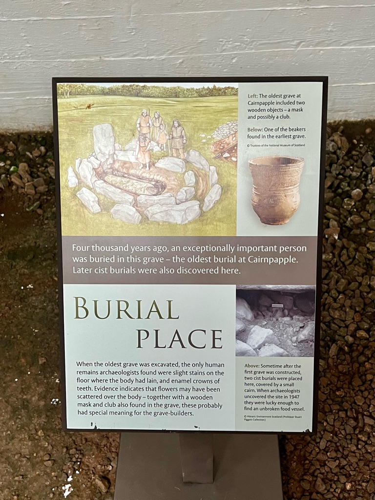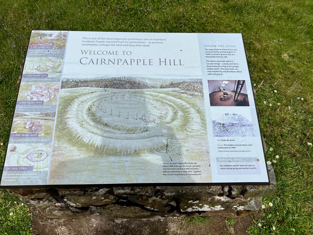 We went to Cairnpapple Hill, the site of a 5000 year burial ground that was excavated in the 1950’s. It was very interesting, and overlooked some beautiful hills and valleys filled with grazing sheep.