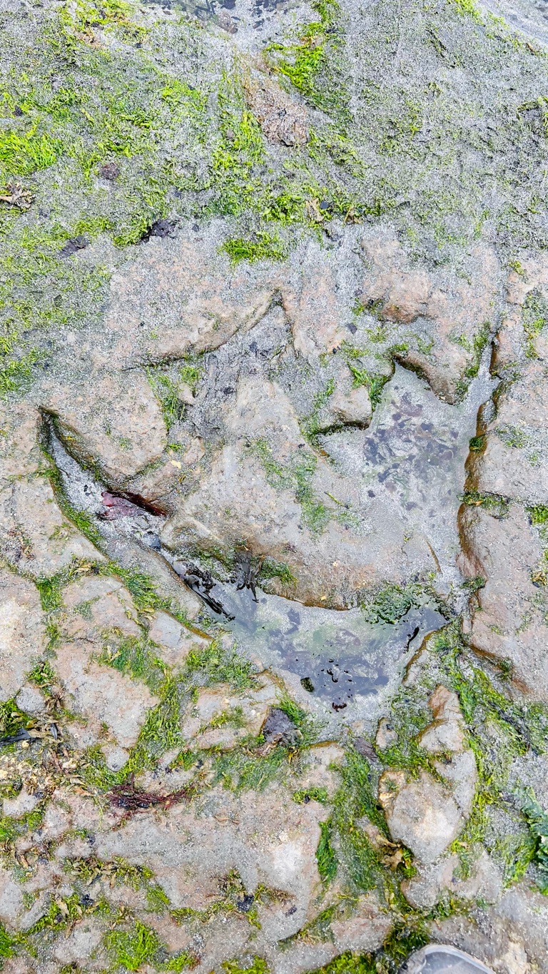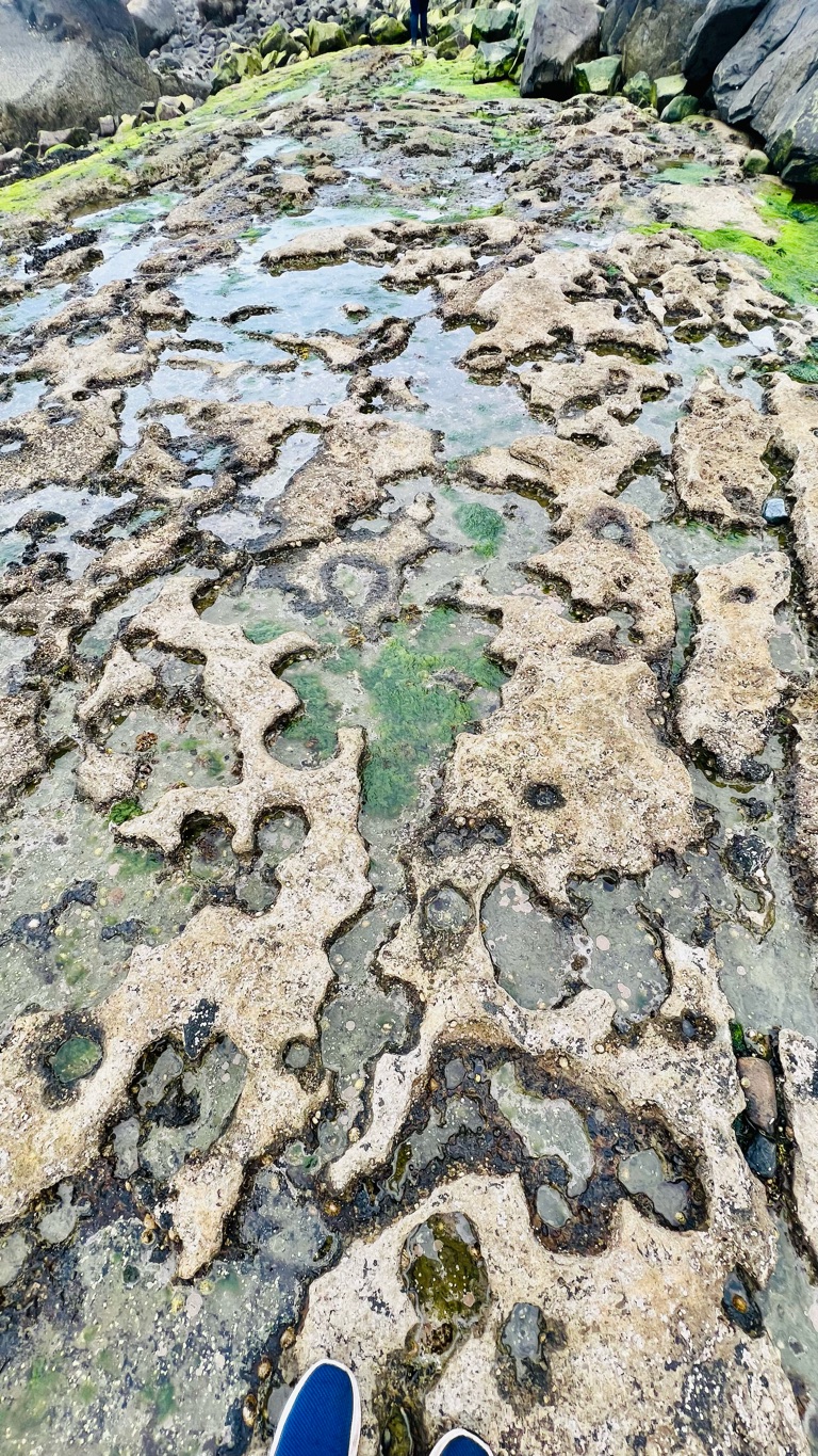 Afterwards, we drove a few minutes away to a beach where just 20 years ago a little boy was walking with his dad and the little boy found what he said looked like dinosaur tracks in the fossilized mud that runs along the beach. Eventually some dinosaur experts came out and confirmed it was a dinosaur track from a Megosaurus, and then found 17 more! The tracks aren’t marked or noted or anything, and there’s quite a few people walking around looking for them. We think we found one of them, it matches one of the pictures pretty closely on a nearby sign. Pretty cool to walk on the same place a Megalosaurus did many millions of years ago.