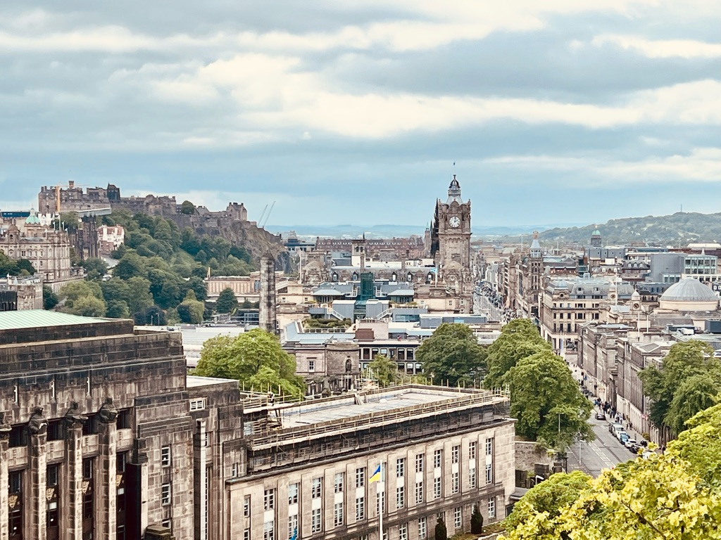 Started the day leaving beautiful London to take the train to Edinburgh. The 4 hour train ride through the English countryside was absolutely beautiful. We made a couple stops in some small towns, and got to ride along the Northumberland coast when we were further north in Scotland, but the decision to train instead of fly was definitely the correct one. Once you arrive in Edinburgh there’s a small beautiful castle overlooking the station, all the surrounding buildings are a stunningly gorgeous old stone, the majority of which have been blackened by soot and smoke from home coal fires in the 1950’s. It’s immediately obvious this is an incredibly beautiful and old city the moment you arrive. We haul our bags up to our Airbnb about 15 mins away from the station, Edinburgh has a lot of steep hills, we probably would have gotten an Uber or taxi had we known, but it afforded us our first chance to walk through and see this beautiful city. Our Airbnb is perfect, a 2 bedroom 1 bathroom flat sitting on the 4th floor of a building overlooking the city, some of the castle and very quiet.
