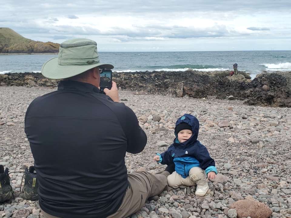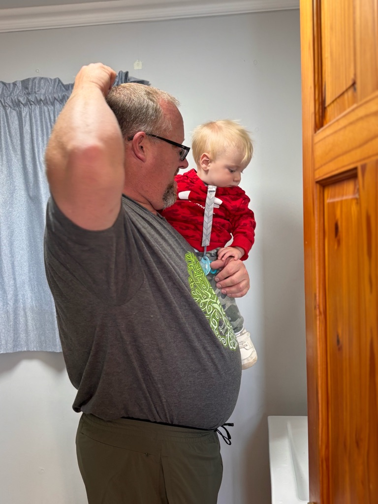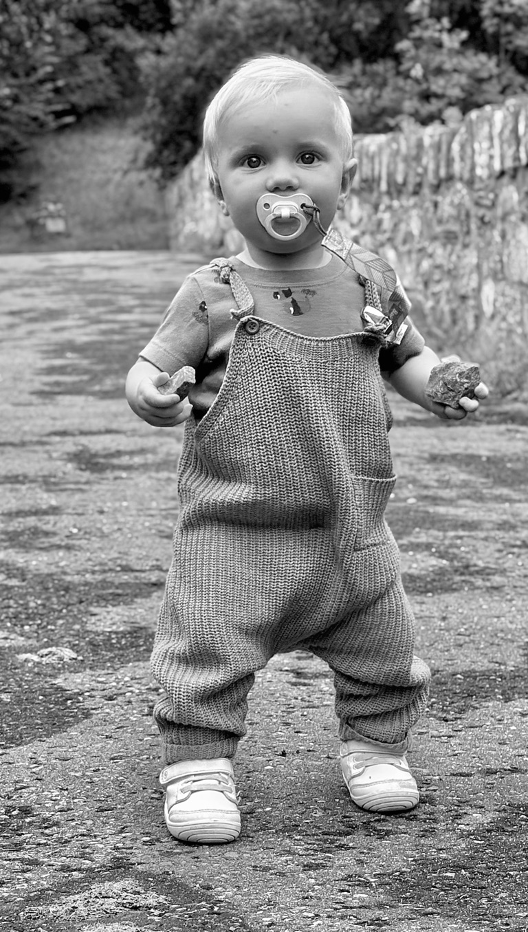 The start of many piggy back rides and picking through grandpas hair like a monkey.