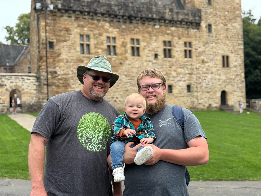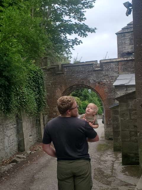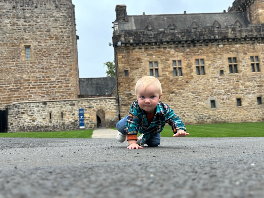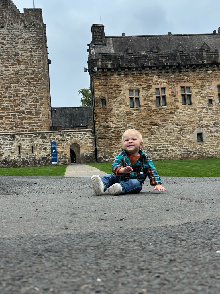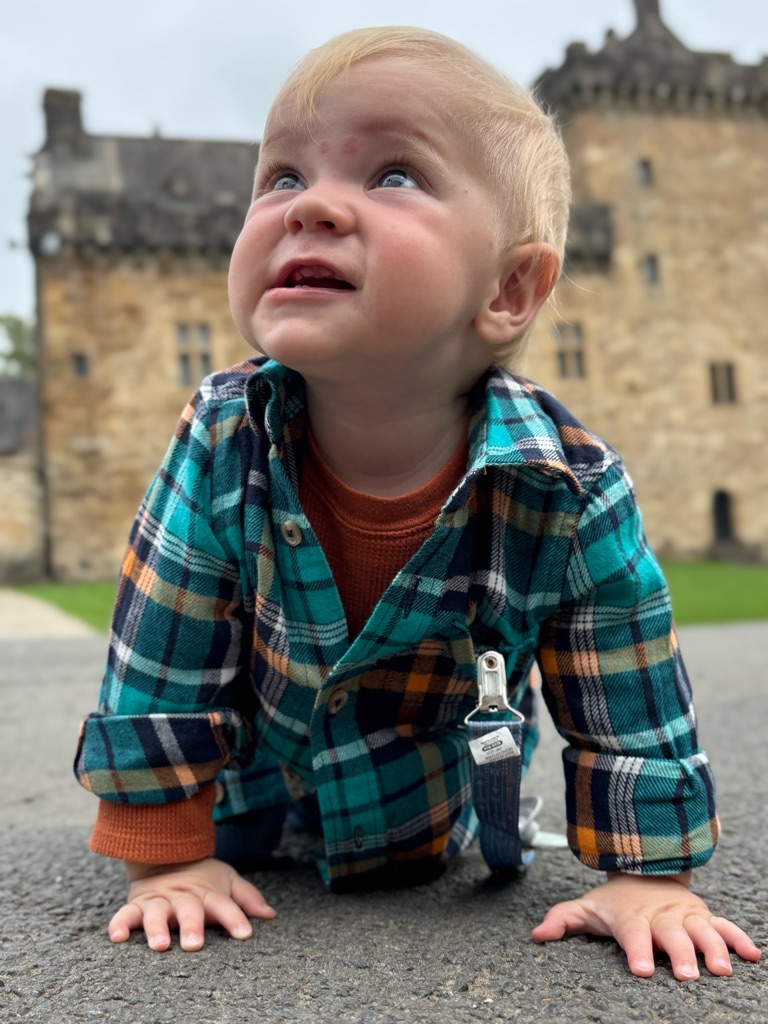 We’re in front of a castle! LOL Finn’s not too amused. He’s sleeping.