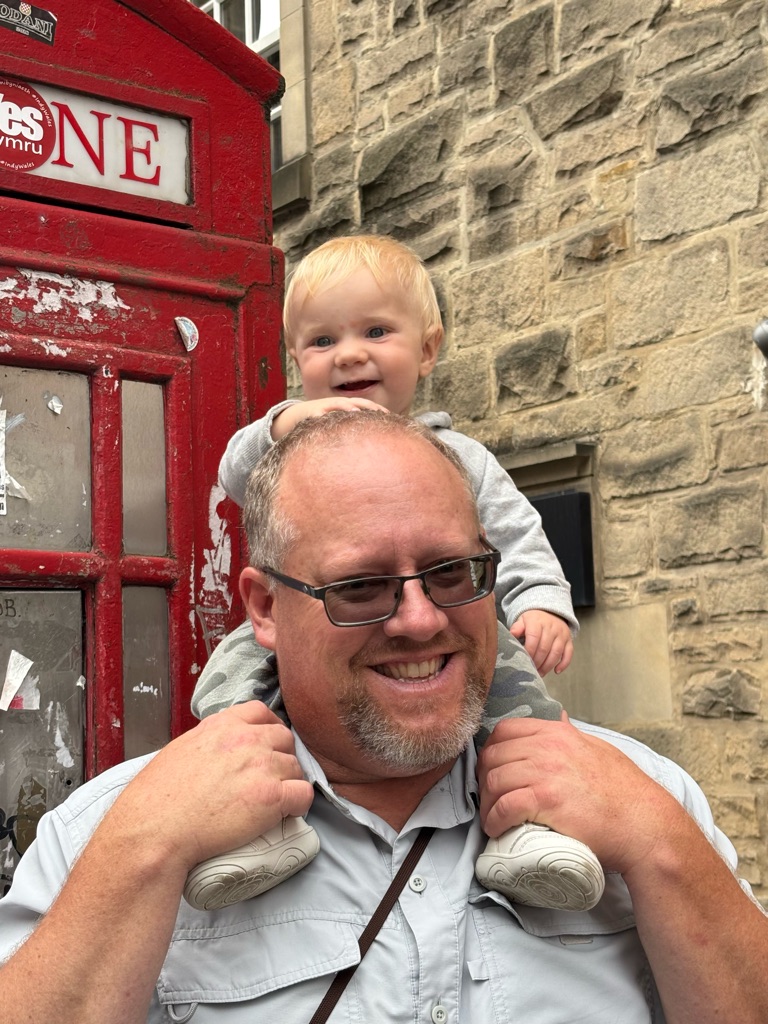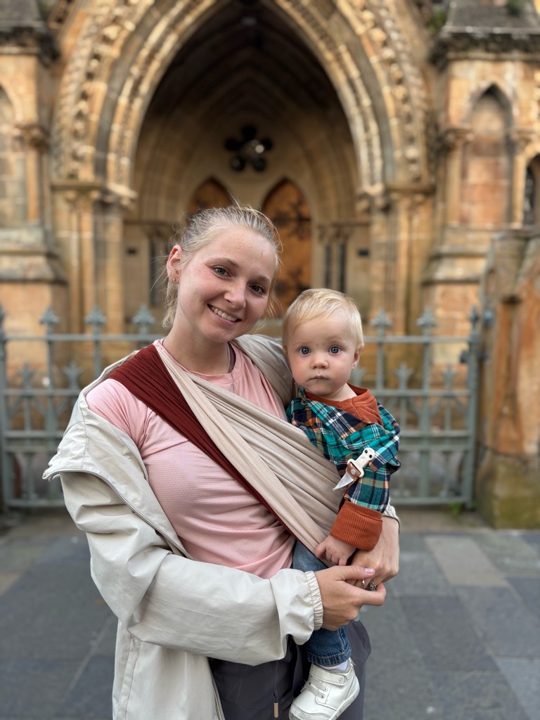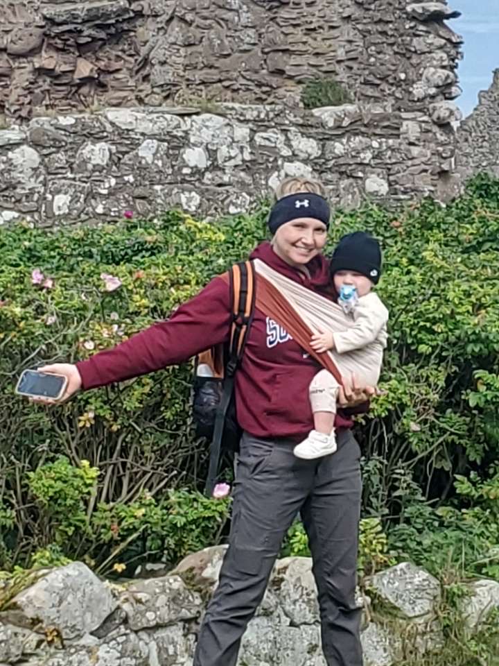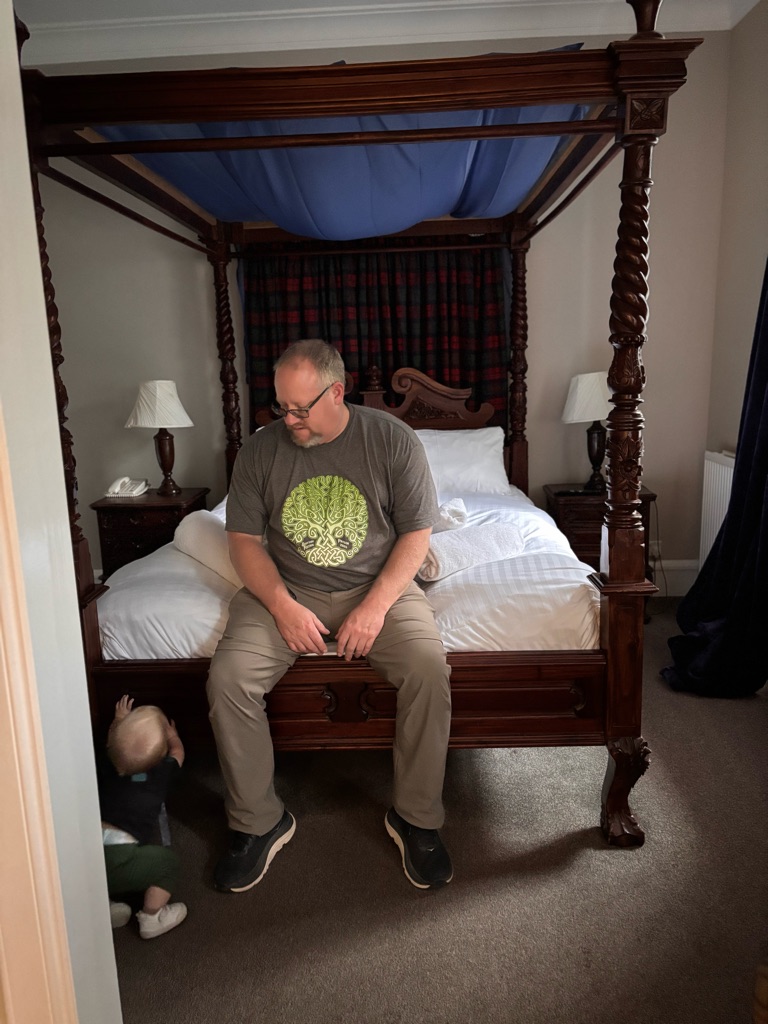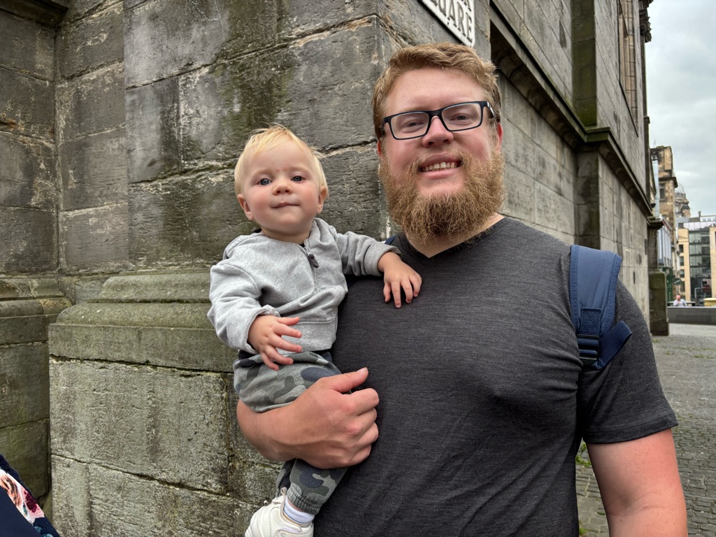 We’re in front of a castle! LOL Finn’s not too amused. He’s sleeping.