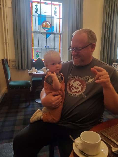 First picture in Scotland. A nice man stopped to help capture us in front of the sign.