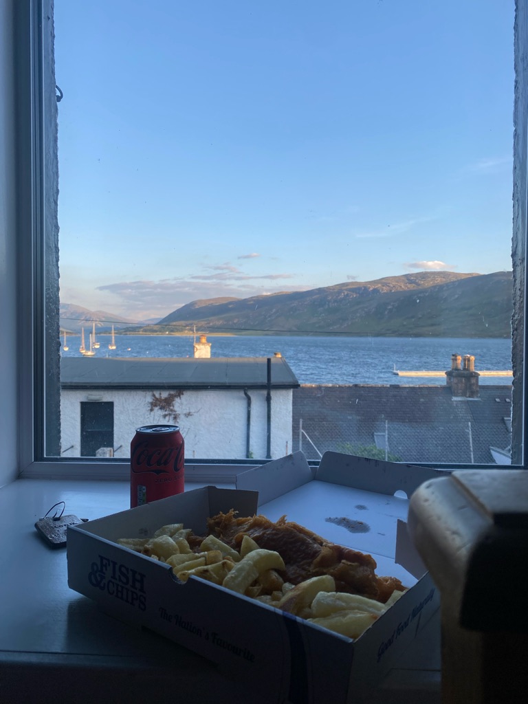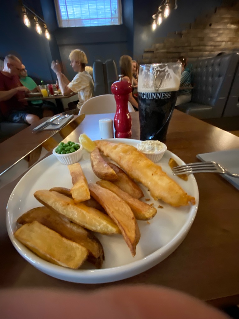 Et puis après une longue journée il faut manger, aller à mon premier pub solo et je fait simple avec un fish&chips parce que il y a rien de mieux que les classiques et puis je fait pas tard parce que demain on se lève, mais avant tout je trouve Hector, qui fera la route avec moi!