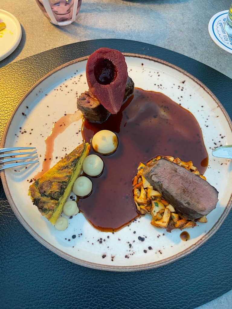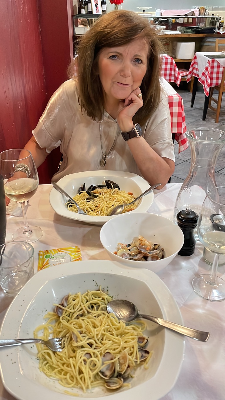 Am Abend im Römerkeller gegessen. Spaghetti Vongole und Schwertfisch, der Kellner kam aus Neapel.