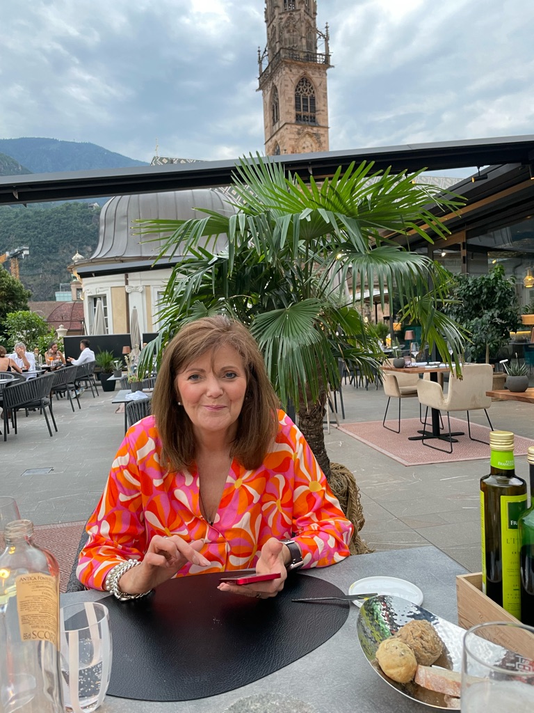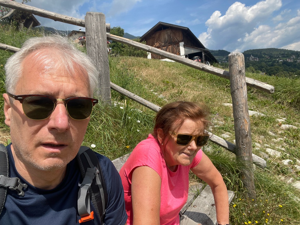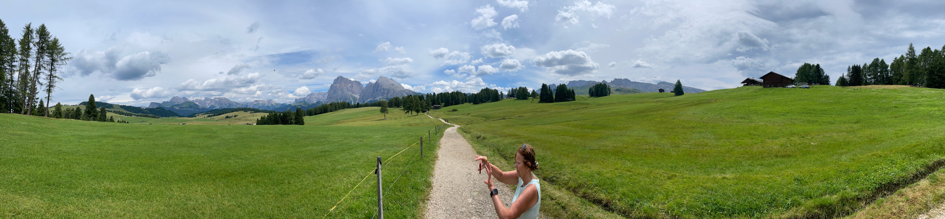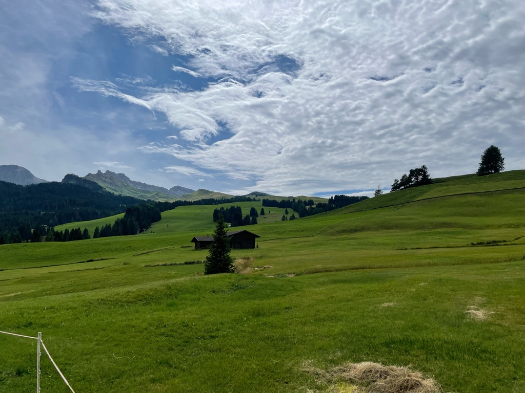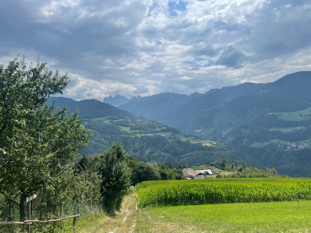 Auf dem Ritten, Wanderung von Oberbozen nach Klobenstein, dann zu Fuß zurück nach Bozen 19 km. Abends bei Oberon italienisch gegessen.