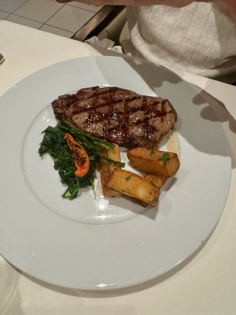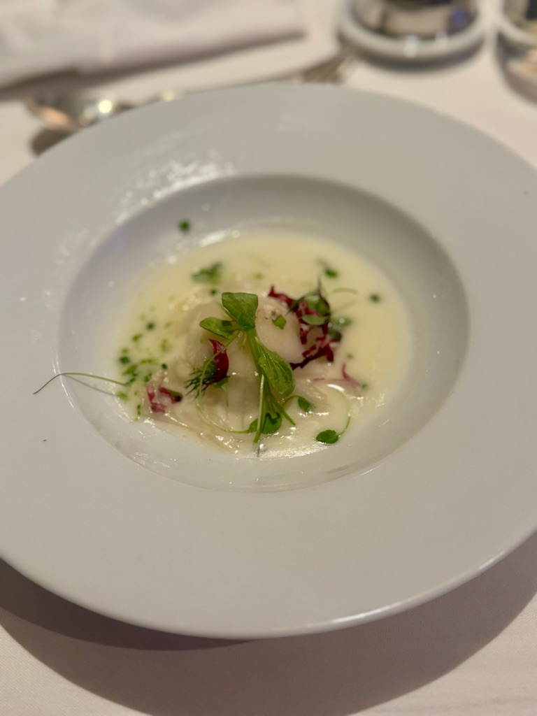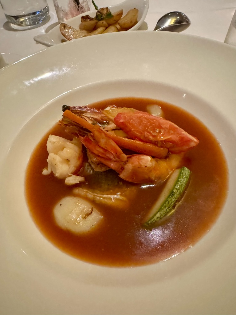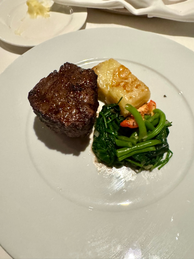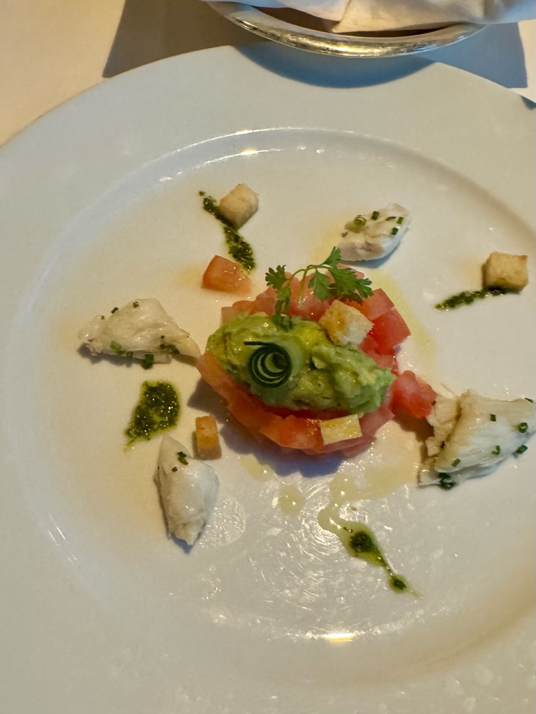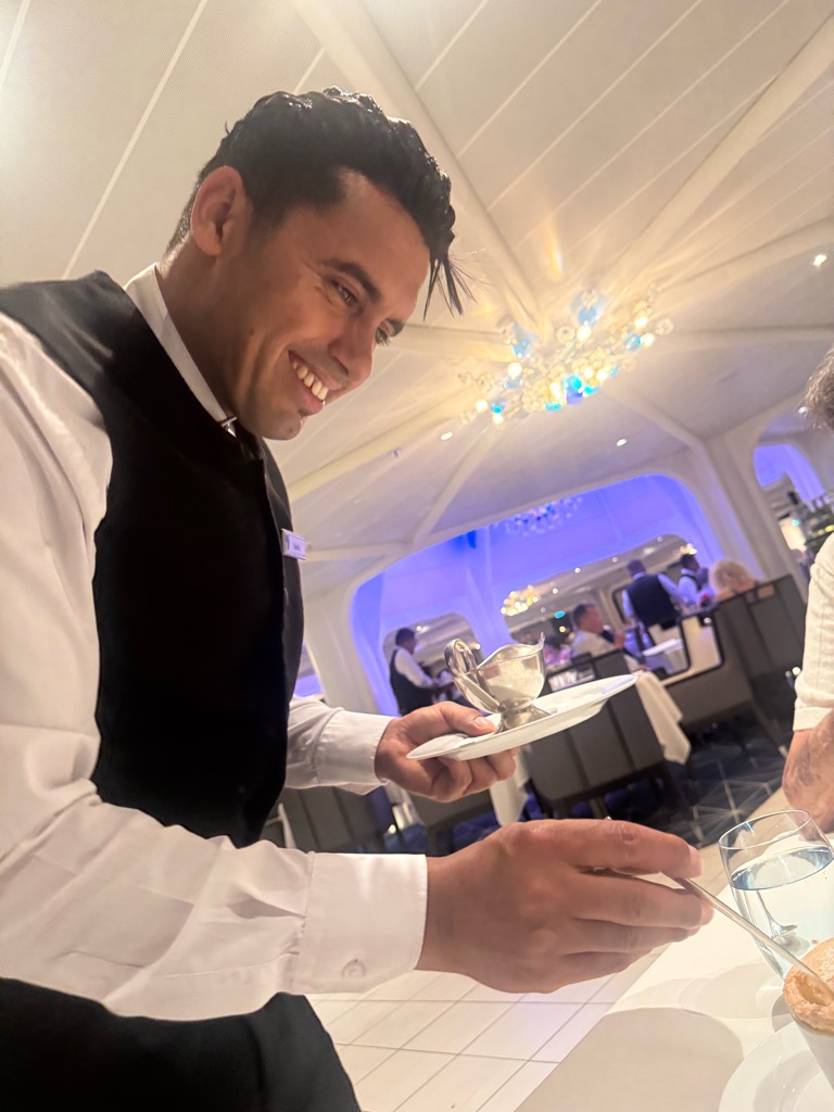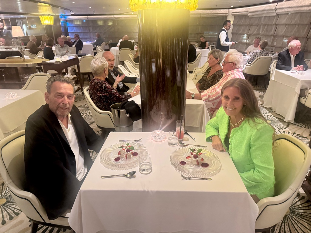 Tonight for dinner we went to Solis. It’s only the second time we’ve been there. Technically you’re only supposed to go once a week. It’s the restaurant that replaced Thomas Keller. It’s a Michelin star chef Mediterranean style cuisine. The food was amazing. Definitely much fancier than any of the restaurants in the ship, which is why they only let you go once a week. I had Poo 🔼 your base and Robert had Blank.