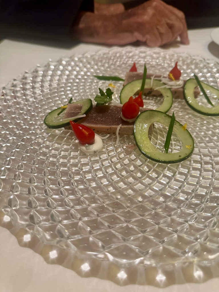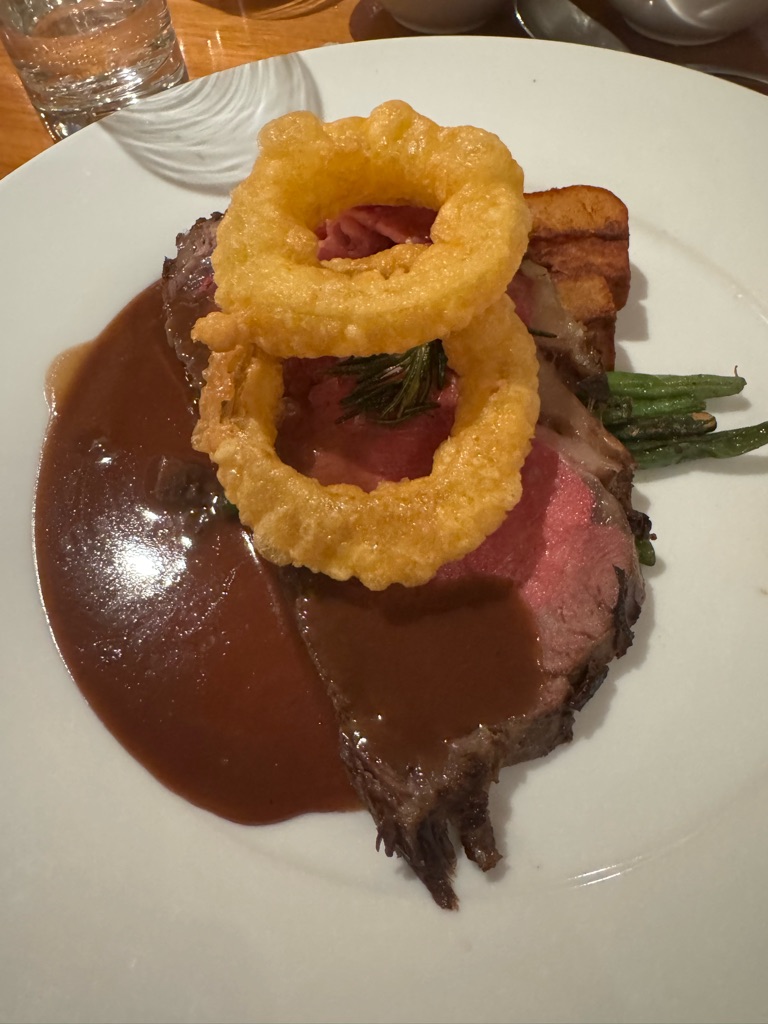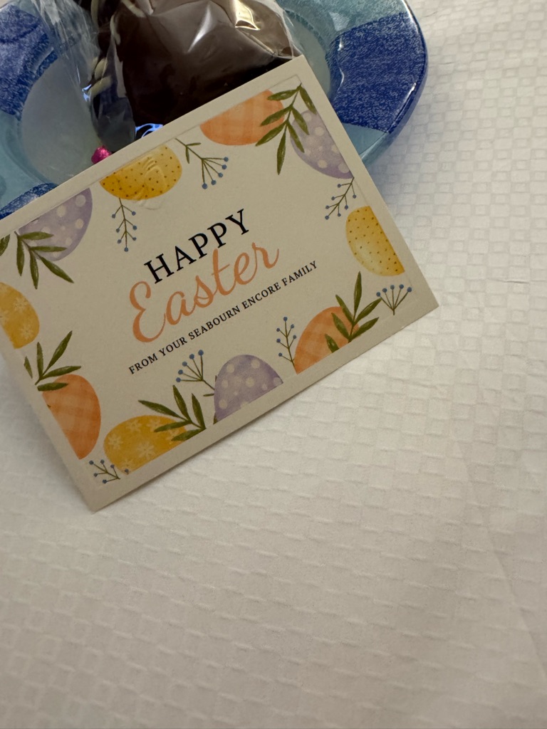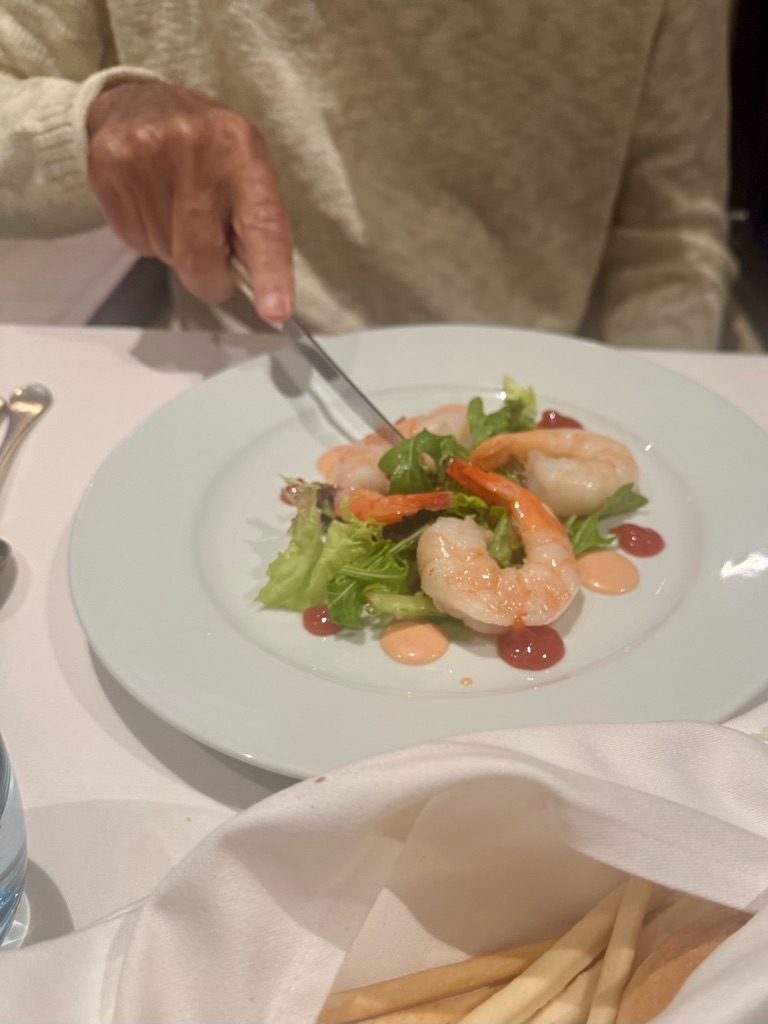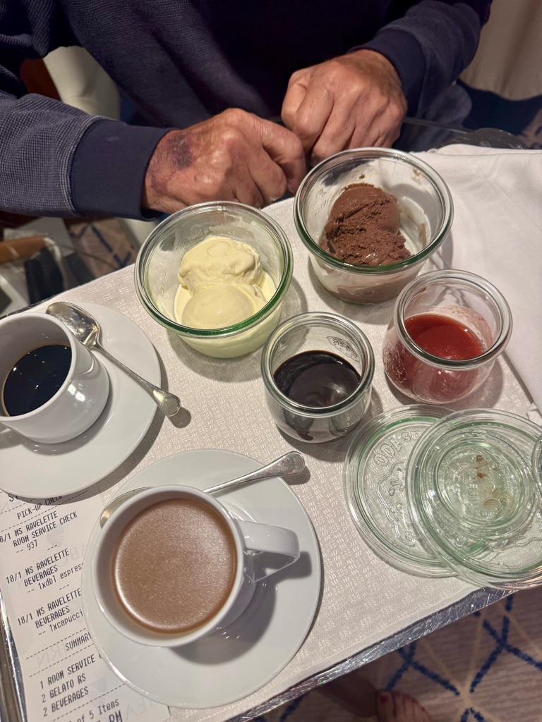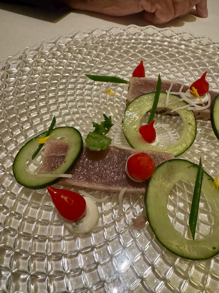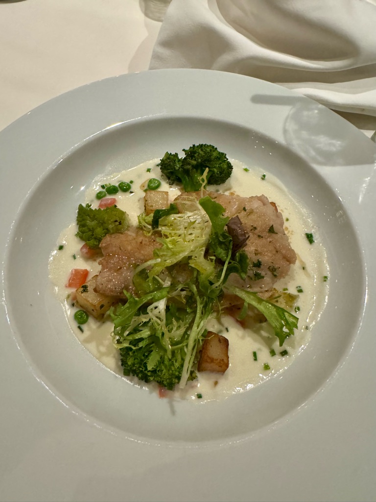 Tonight for dinner we went to Solis. It’s only the second time we’ve been there. Technically you’re only supposed to go once a week. It’s the restaurant that replaced Thomas Keller. It’s a Michelin star chef Mediterranean style cuisine. The food was amazing. Definitely much fancier than any of the restaurants in the ship, which is why they only let you go once a week. I had Poo 🔼 your base and Robert had Blank.