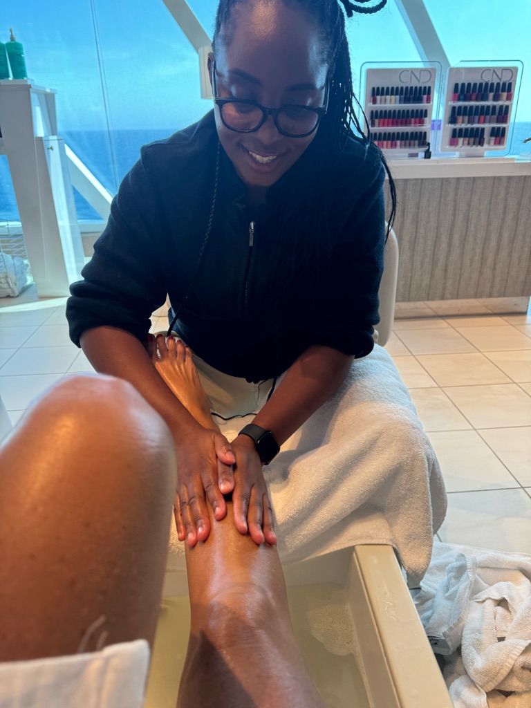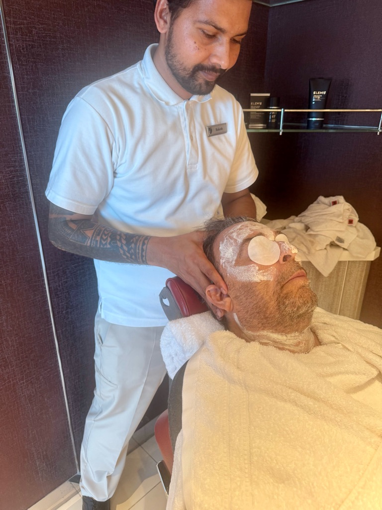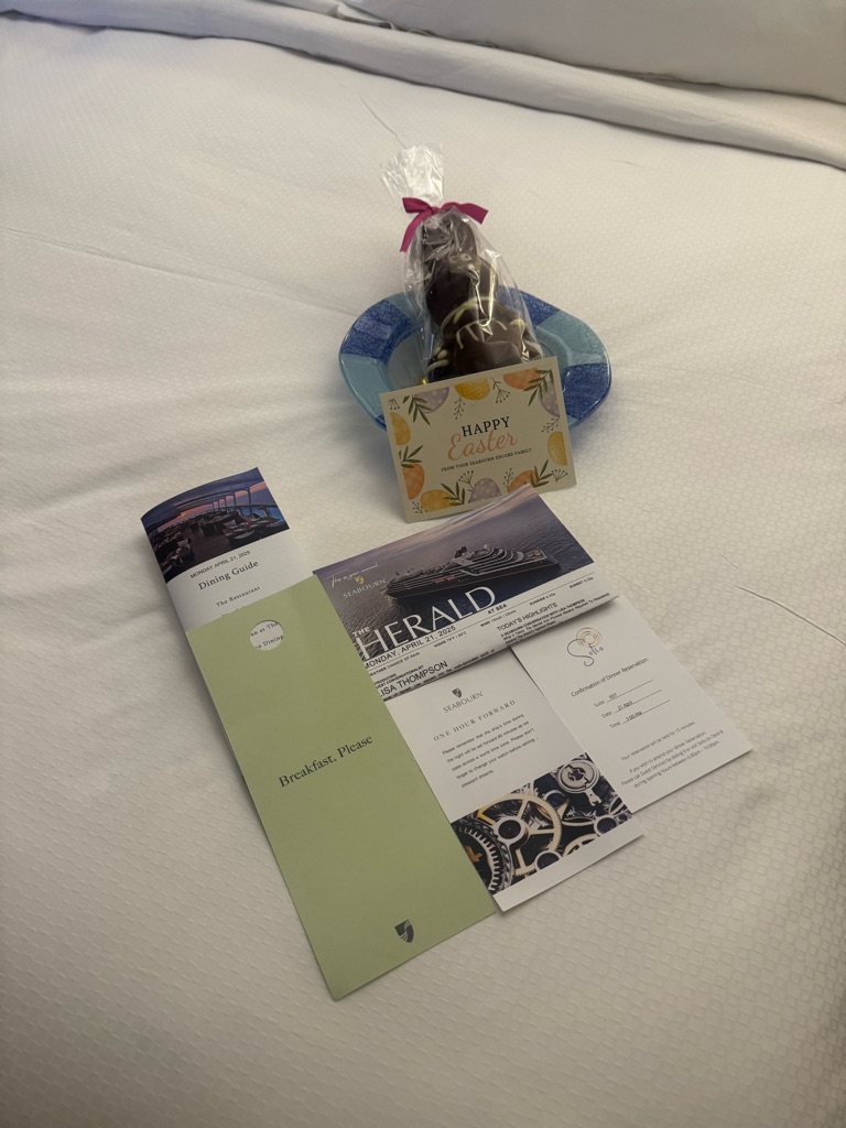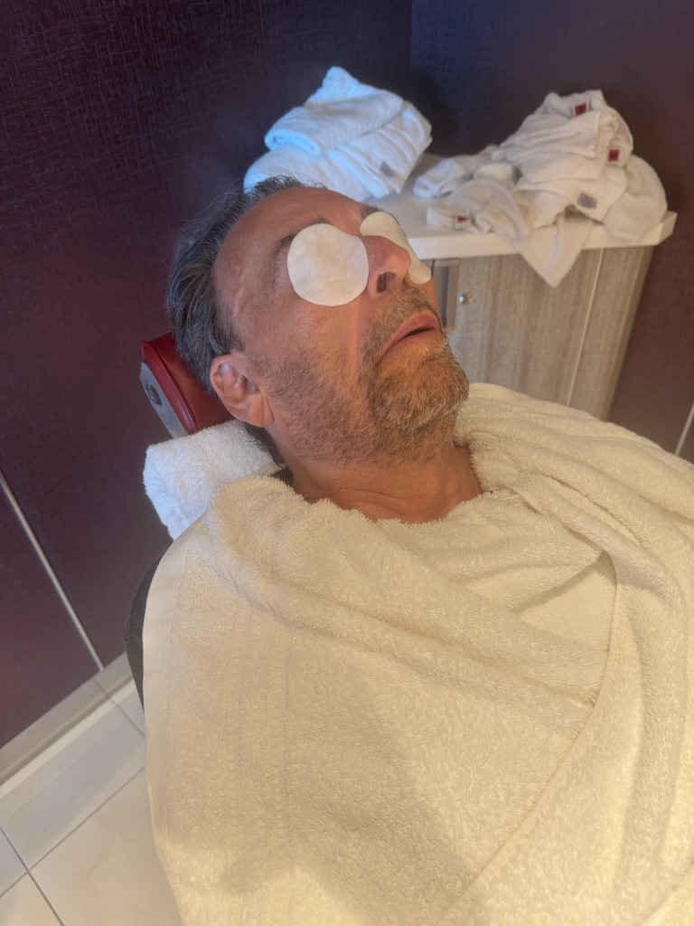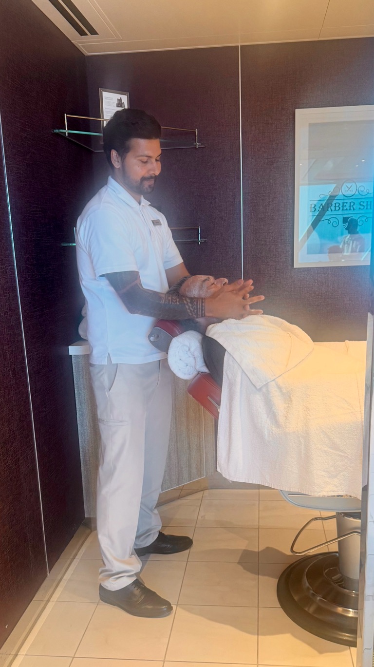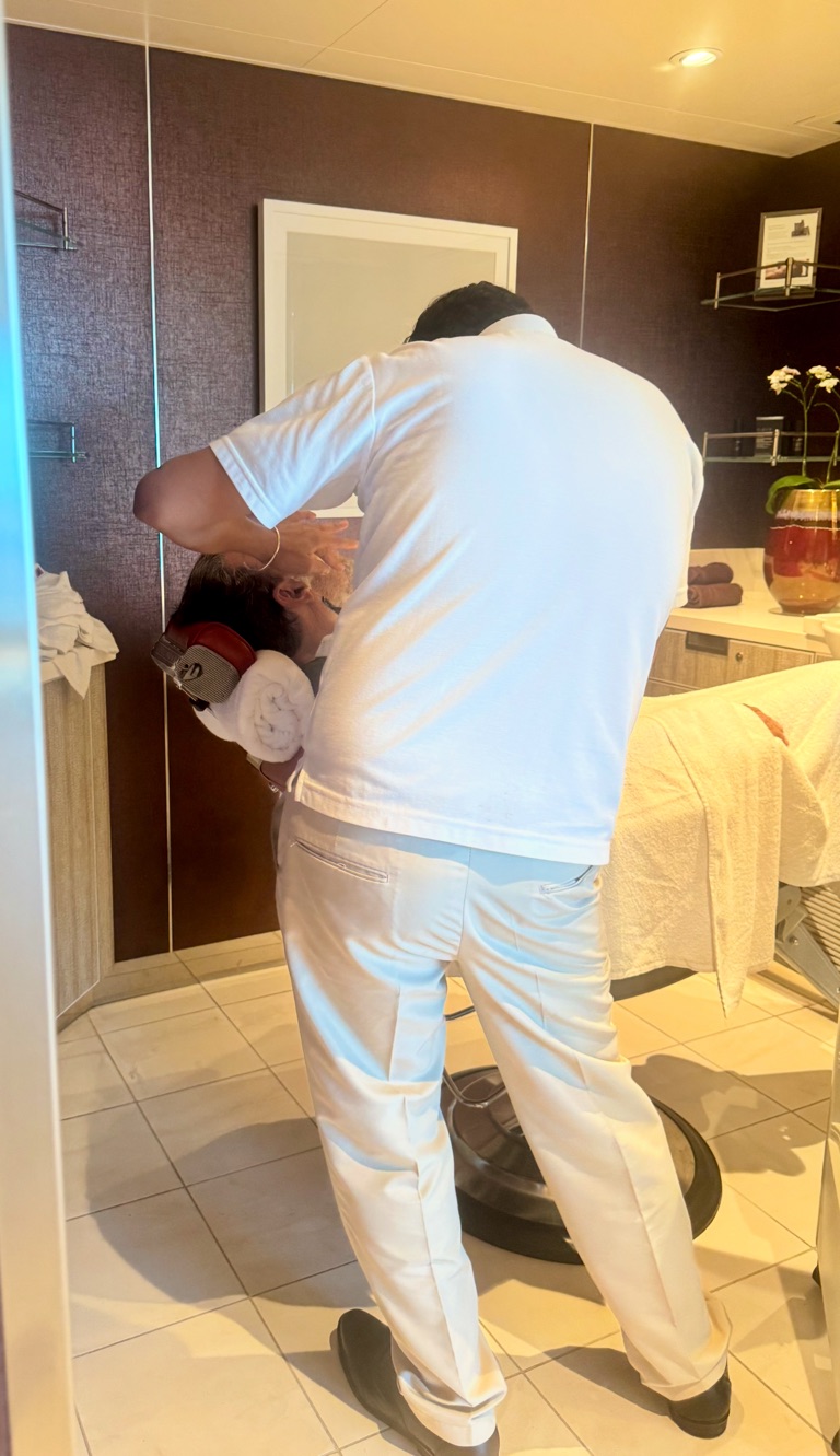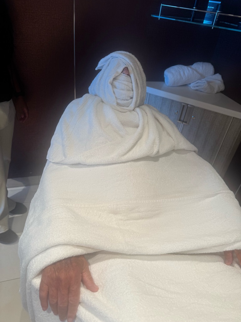 Today in the steam room, we actually met another couple! At first we thought they were a little weird, but then we got to talk into them and they were super nice and funny! They live in the Long Beach area so got on the cruise there. They’ve done many other seaboards as well, and they are younger than the average Seaborn traveler. I would say in their 50s. I showed them the salt scrub and they loved it!