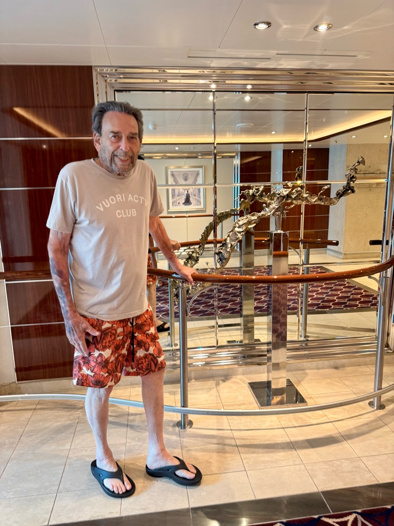 Then we have these friends from Long Beach, Mark and Melanie. Melanie is the one who I swim in the ocean with in one of the ports and we spend a lot of time talking to them. They are also traveling with a friend of theirs with a single passenger he unfortunately lost his wife and they used to travel a lot to four of them, but I guess they with him on cruises. She’s reading a great book that she said she was gonna lend me after she’s finished. That would be interesting. I haven’t read a book in about 20 years!