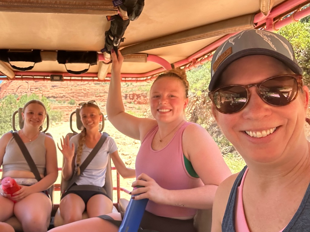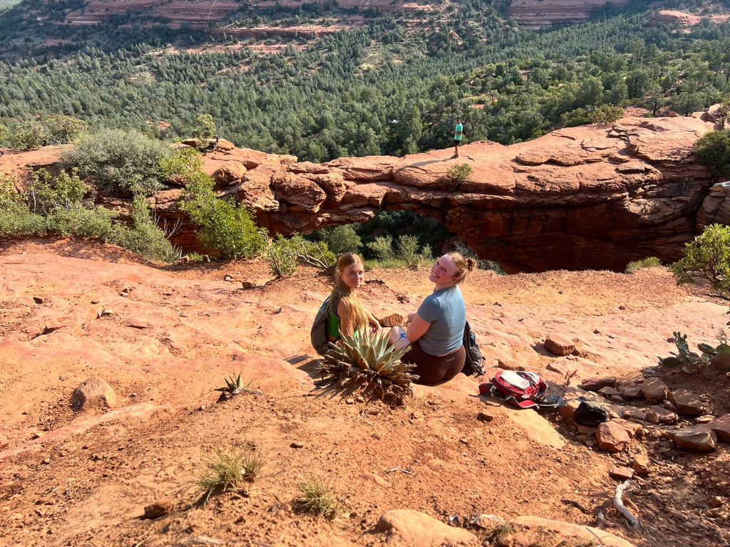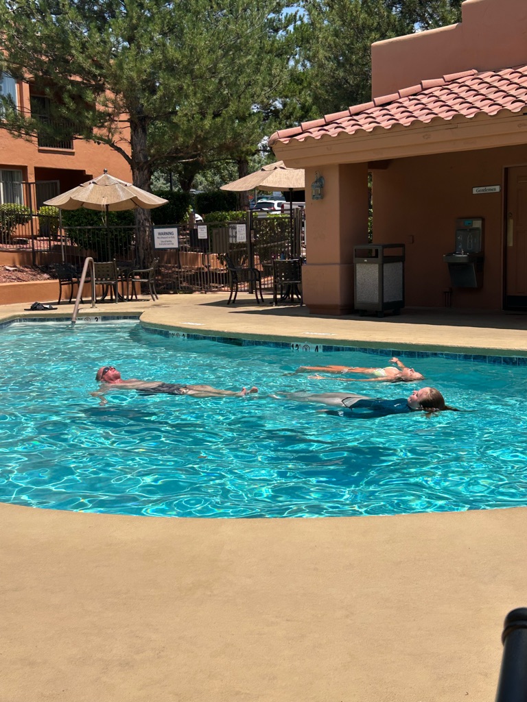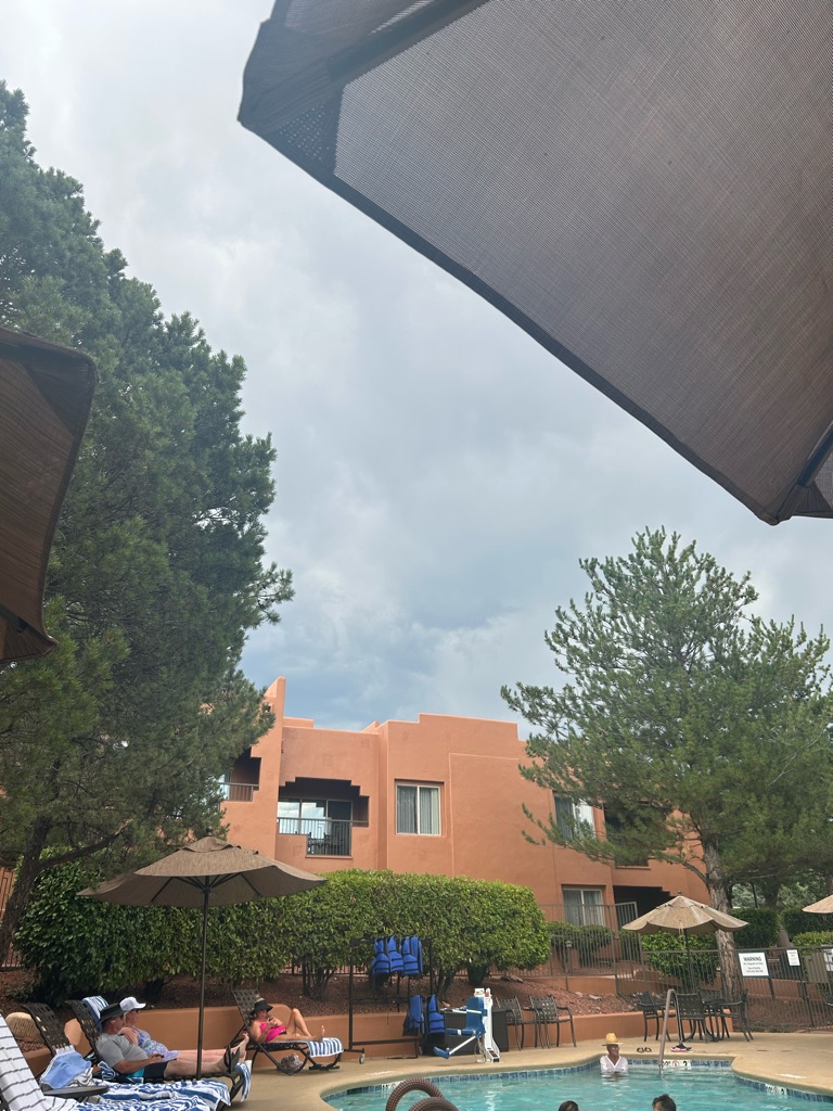 Staying at the HGV Sedona Summit- finally get there about 3 pm - room is not ready- it was a little painful / staff are strange and it feels weird. But we finally get to our room at like 4:45 pm- but the connecting room is still not ready. It was an annoying way to start us off/ but room is spacious!!girls have their own side w patio and kitchen and table sofa and queen bed! #spoiled