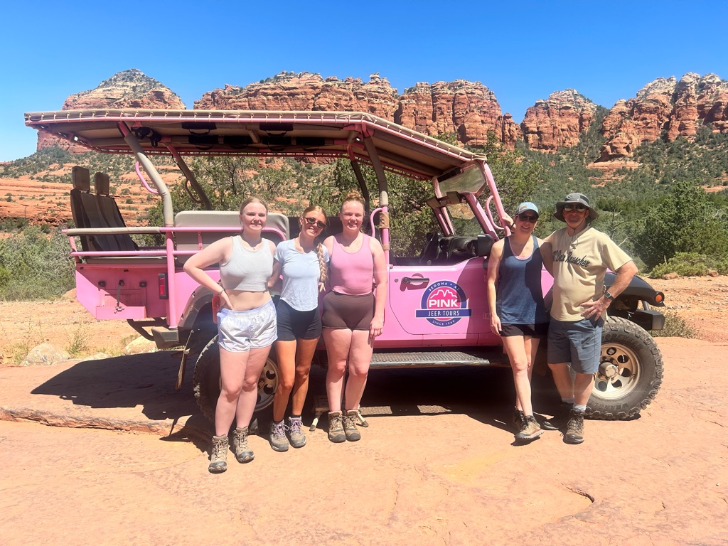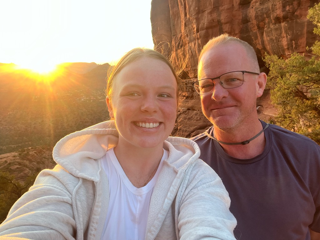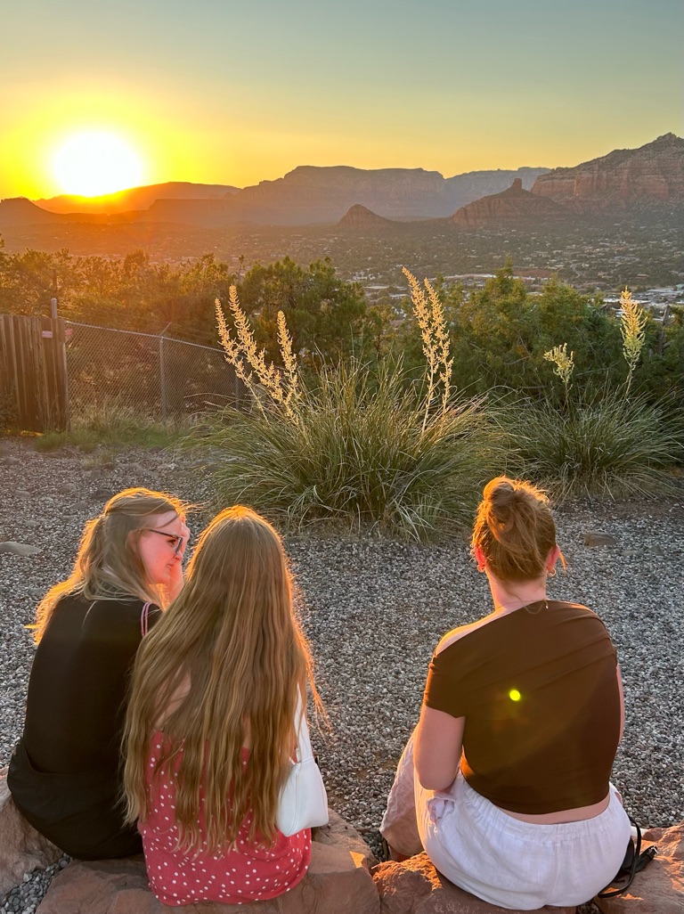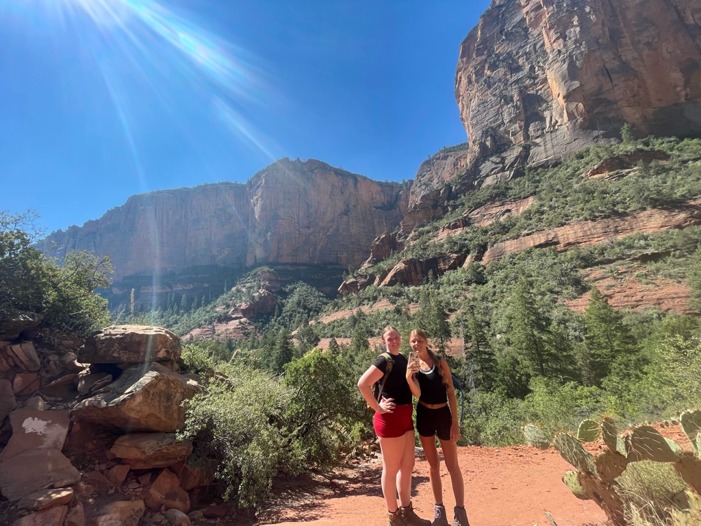 Staying at the HGV Sedona Summit- finally get there about 3 pm - room is not ready- it was a little painful / staff are strange and it feels weird. But we finally get to our room at like 4:45 pm- but the connecting room is still not ready. It was an annoying way to start us off/ but room is spacious!!girls have their own side w patio and kitchen and table sofa and queen bed! #spoiled