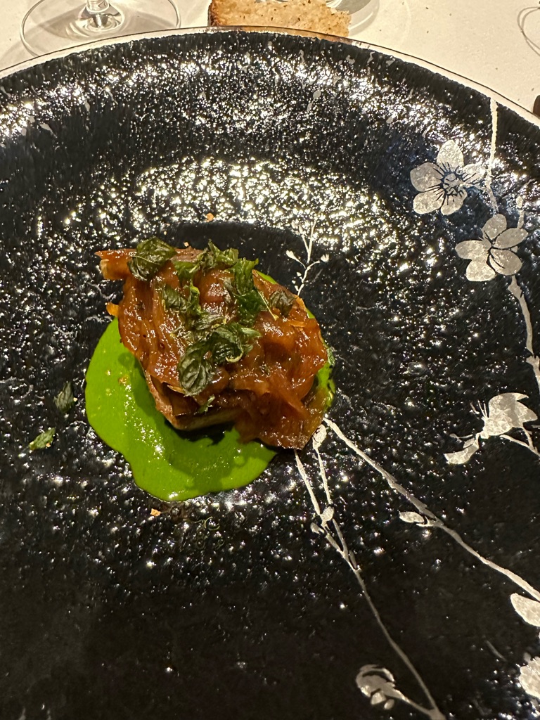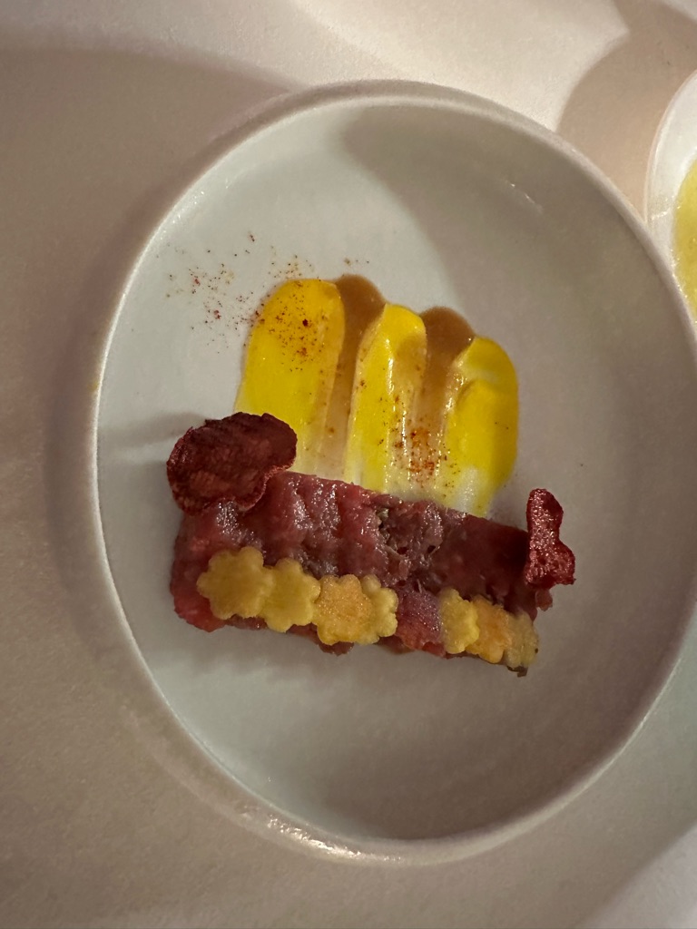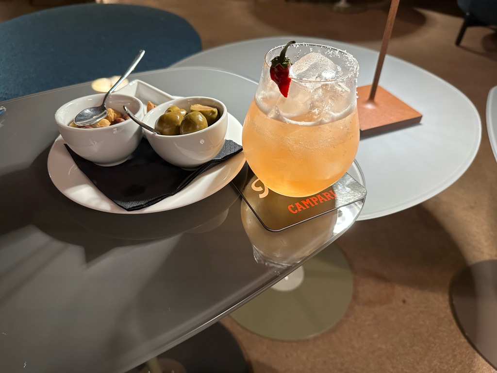 Tonight we bailed on a sit-down dinner…bar food and a delicious spicy drink called Lava. 5 cherry tomatoes muddled with chili pepper, pinch of salt to muddle 5 Ck tequila, 3 Ck lemon juice, 1.5 cl agave syrup